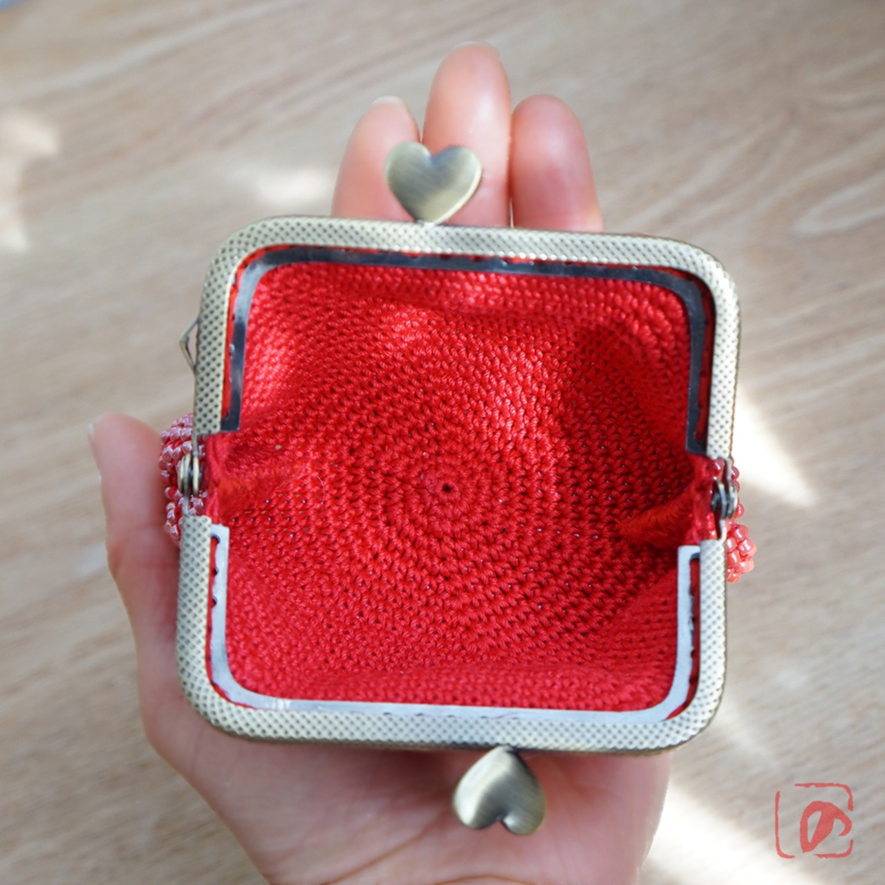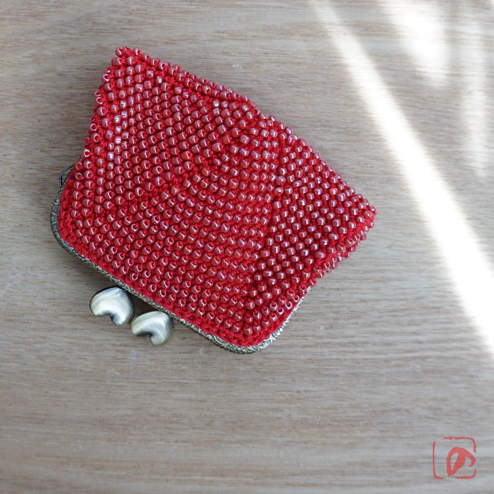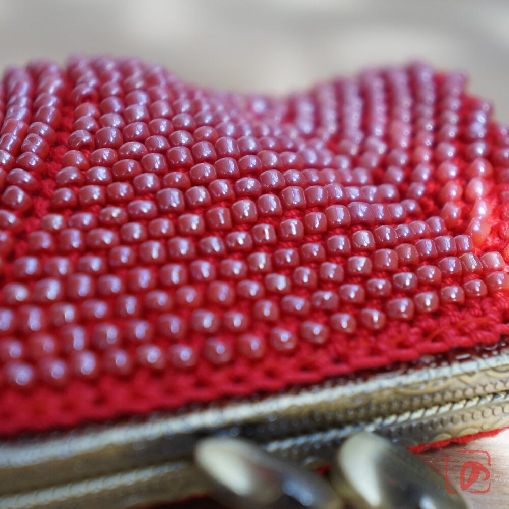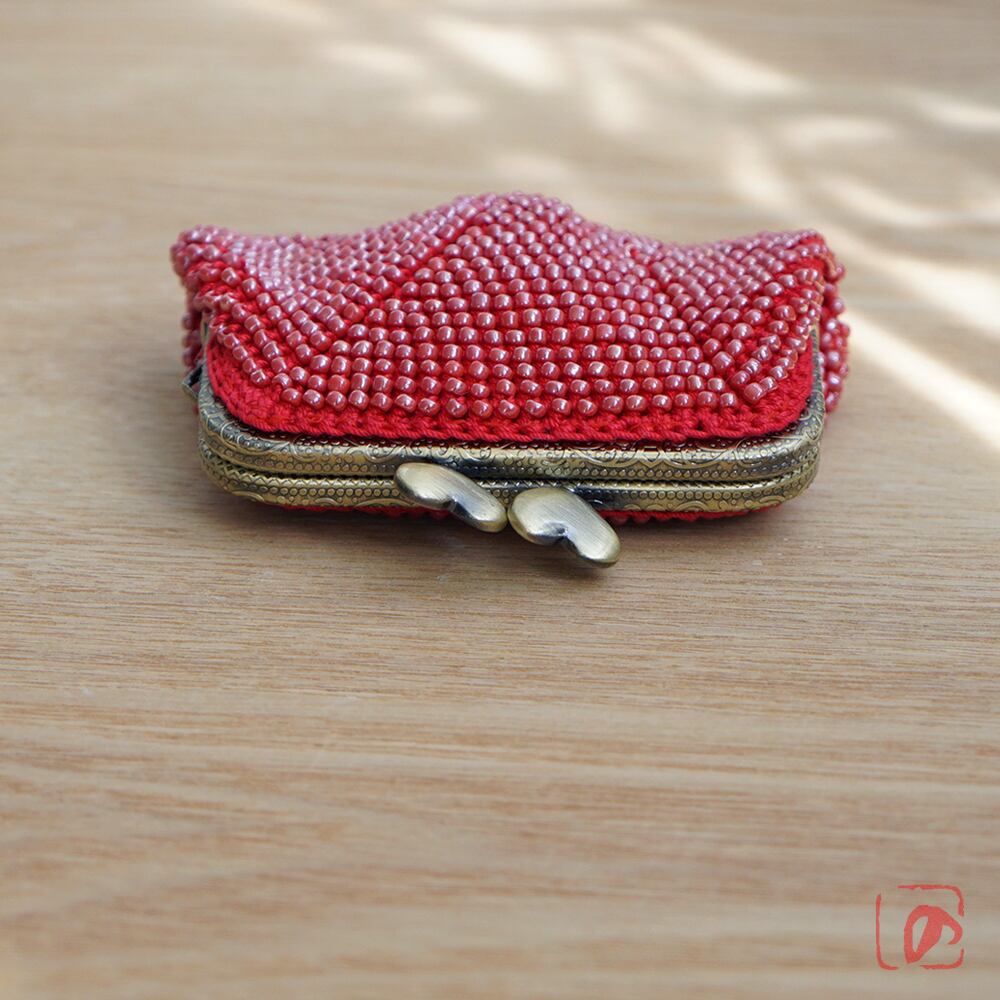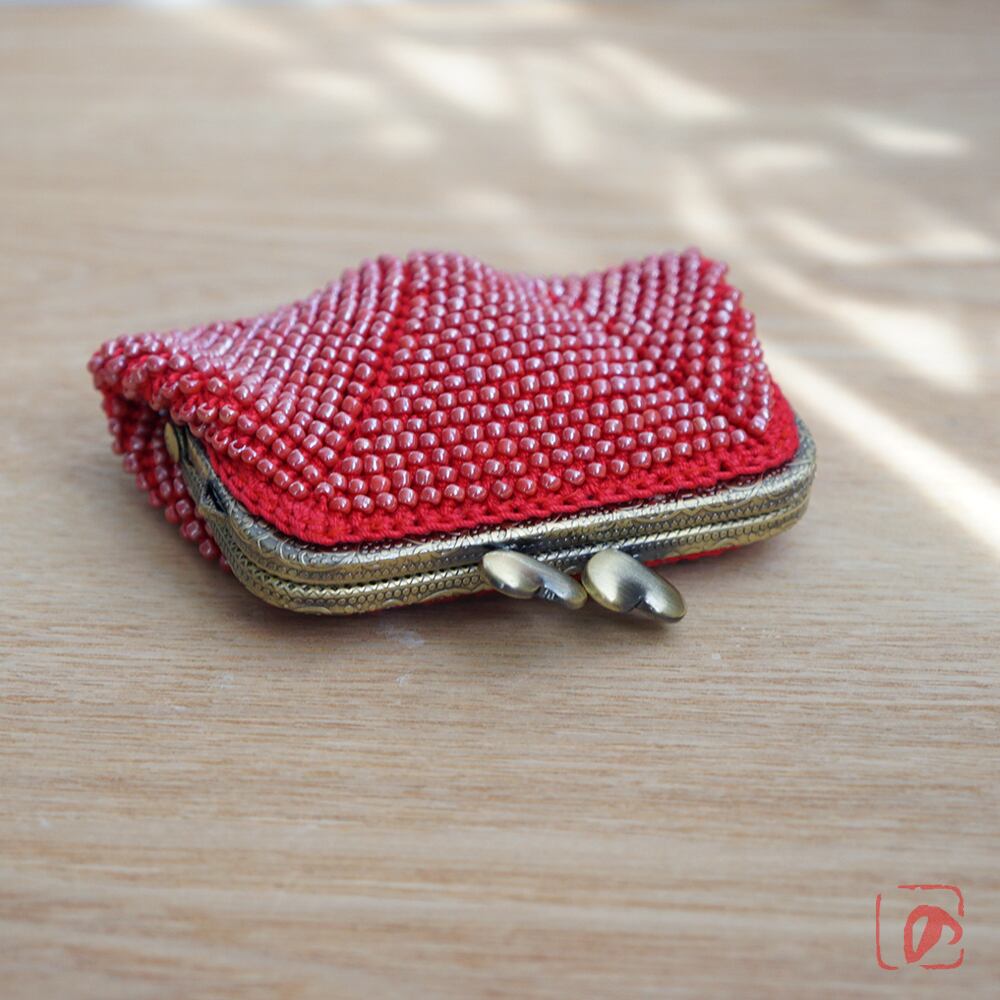 ばあば作♡♡総ガラスビーズのスクエアがま口(赤紅・1631)