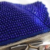 ネイビーブルーの糸にブルーのビーズを組み合わせて、落ち着いた雰囲気の編み地に仕上げました。