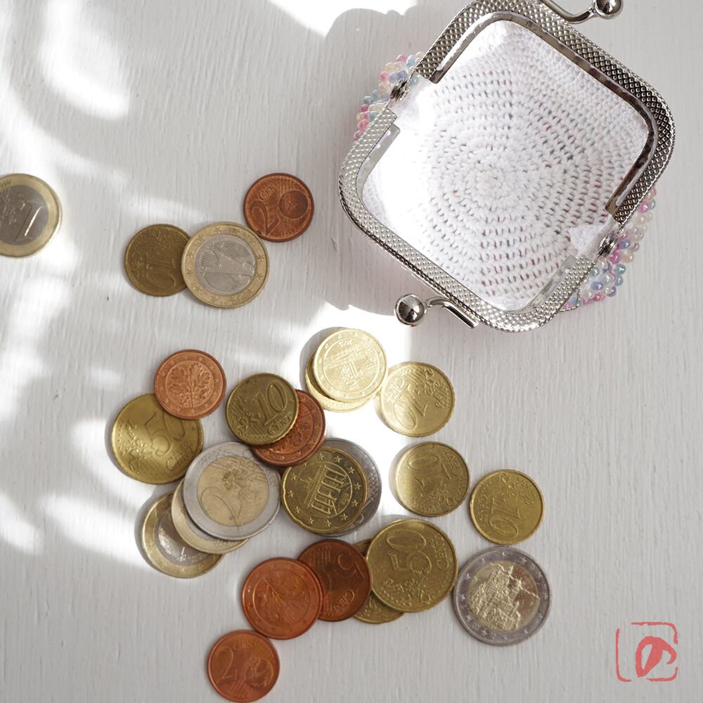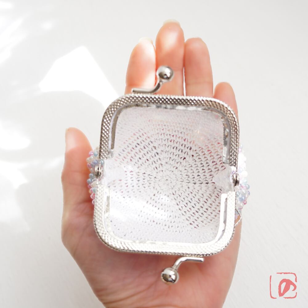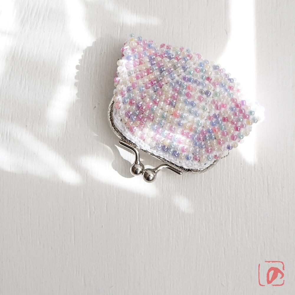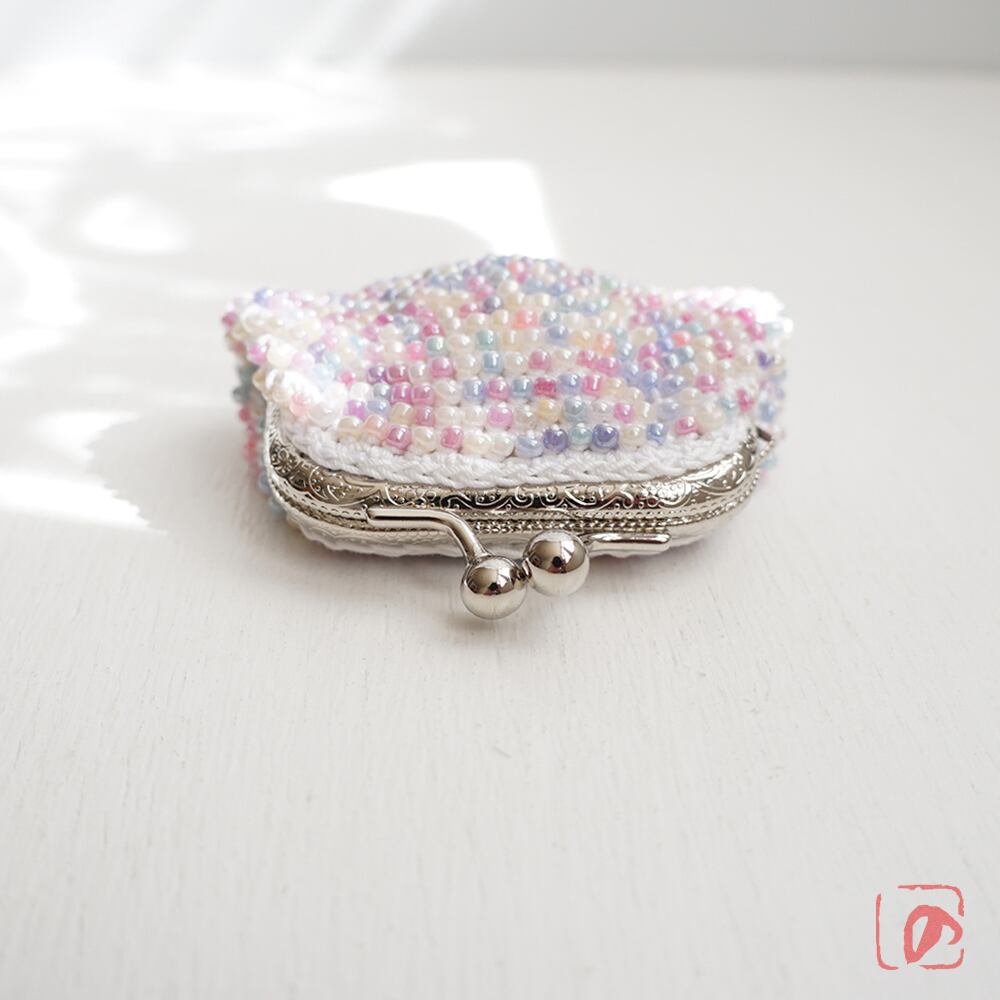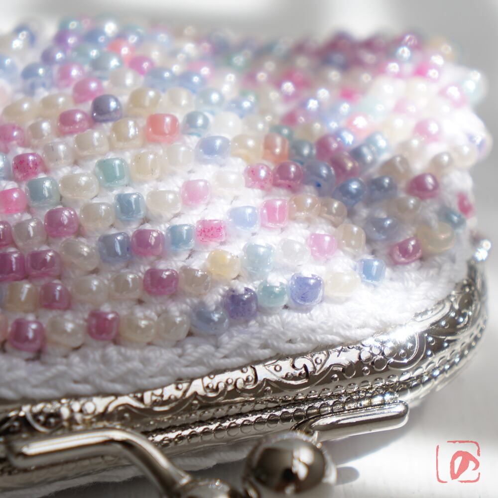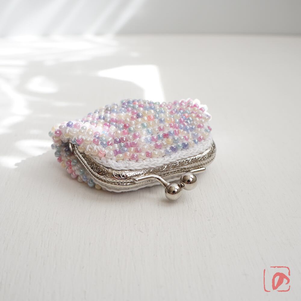 3mmのガラスビーズをひとつぶづつ編み込んだがま口です。