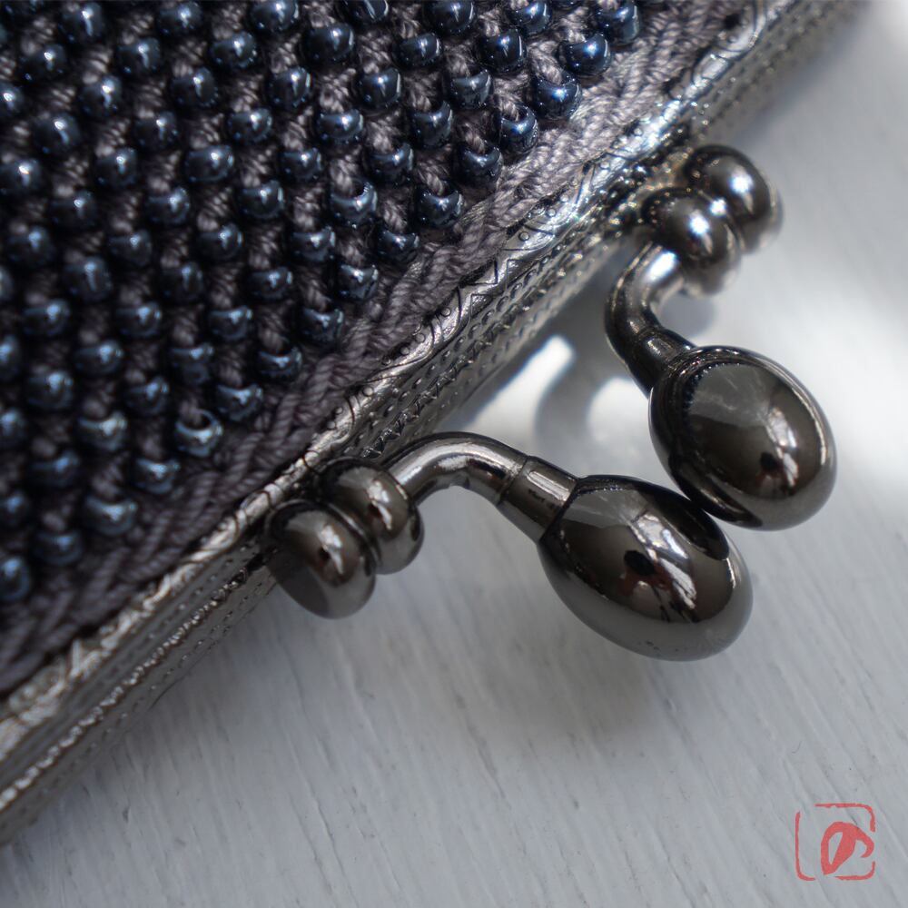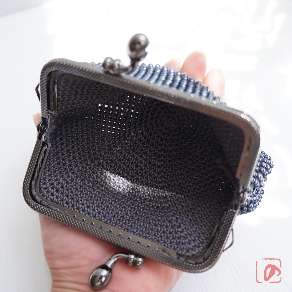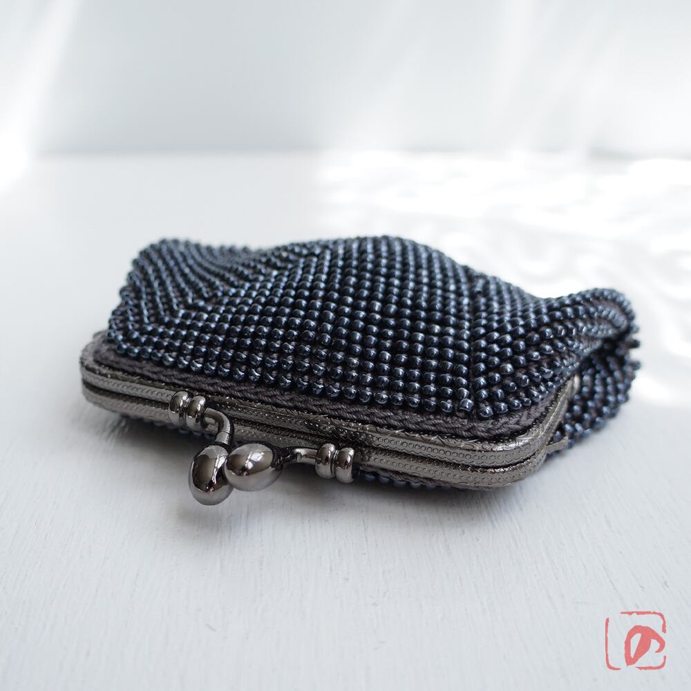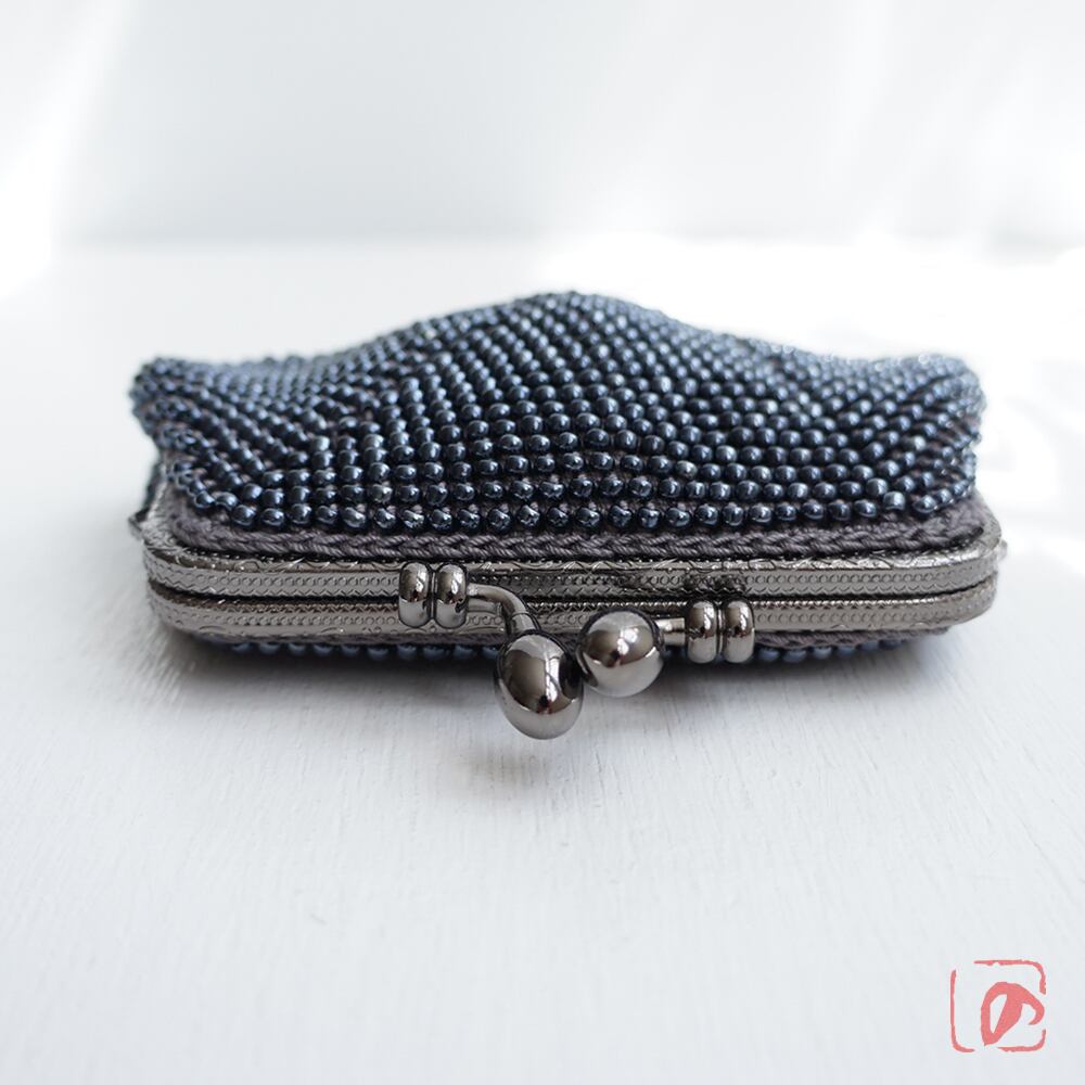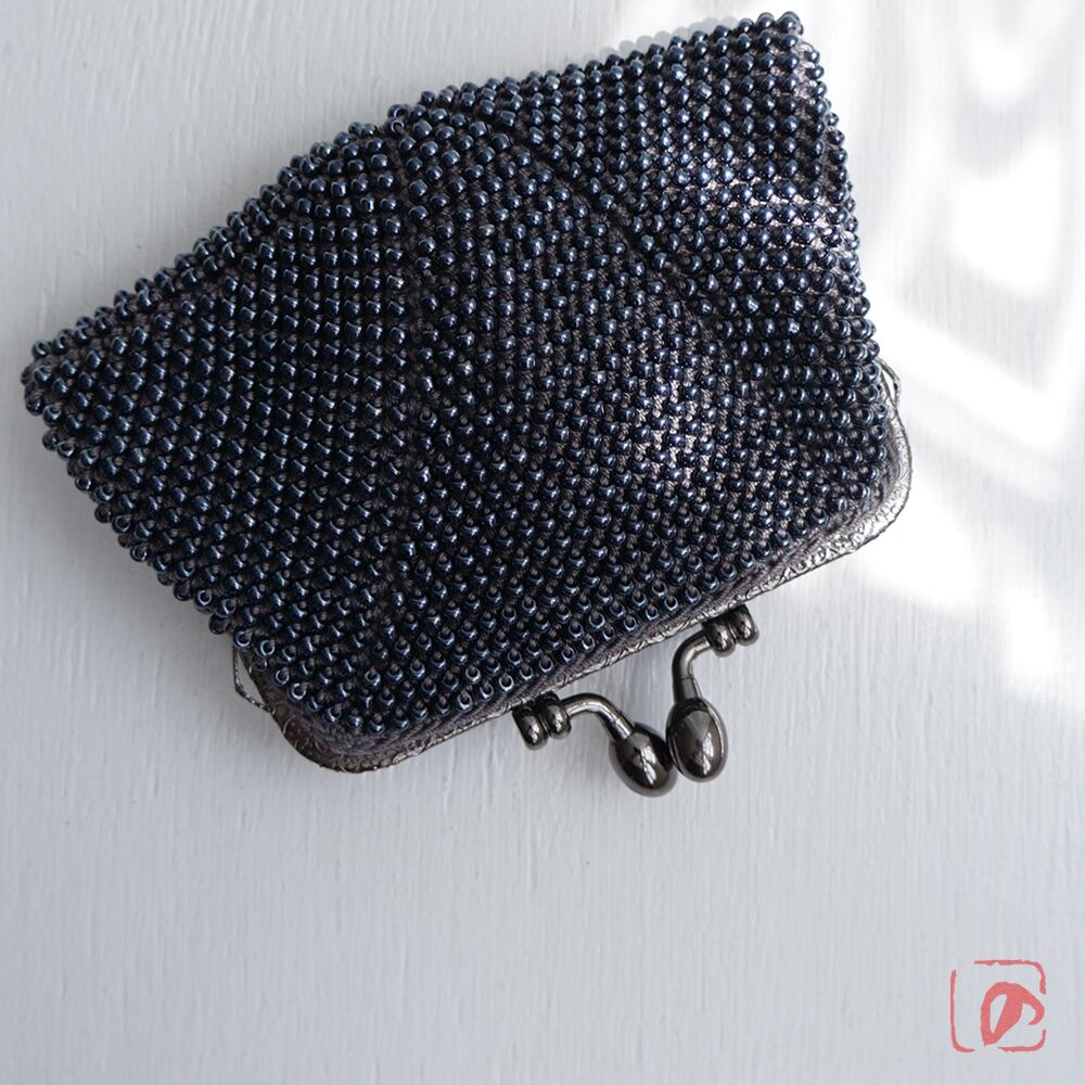 ばあば作☆大きめ・総ガラスビーズのスクエアがま口(métallique・1700)
