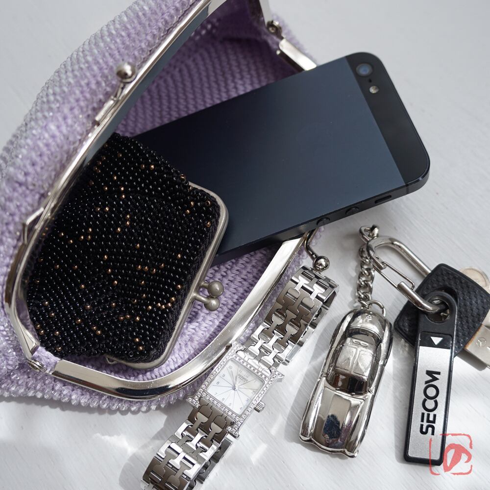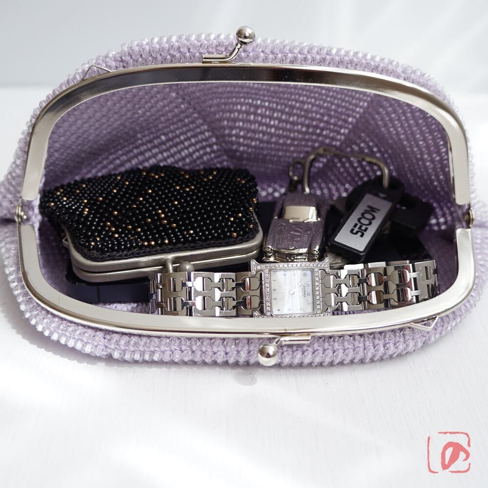 ばあば作☆キラキラ☆アクリルビーズのちっちゃなバッグ(lavande・1662)