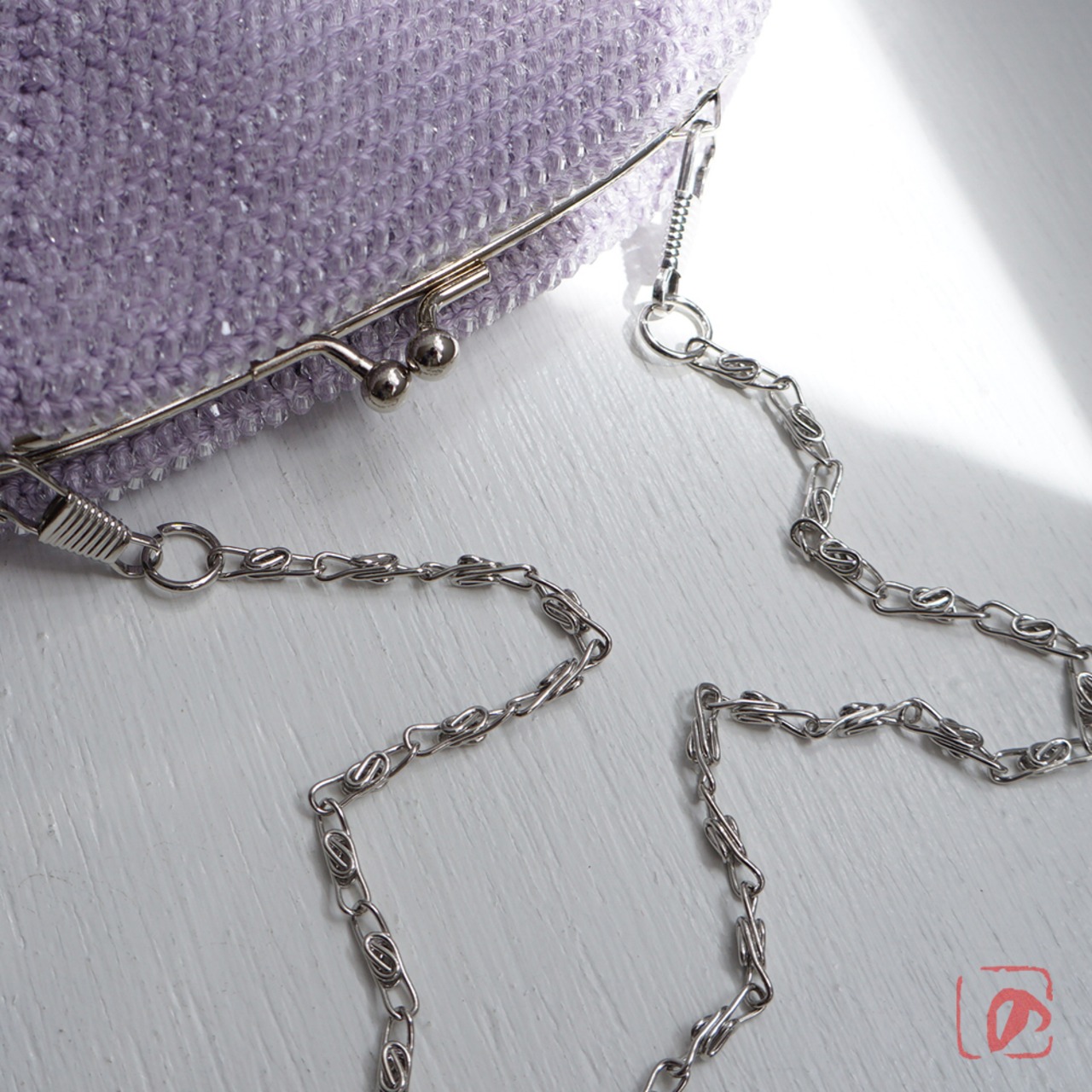 幅15cmくし型の口金を使用、ポーチとして、またオプションのチェーン等で