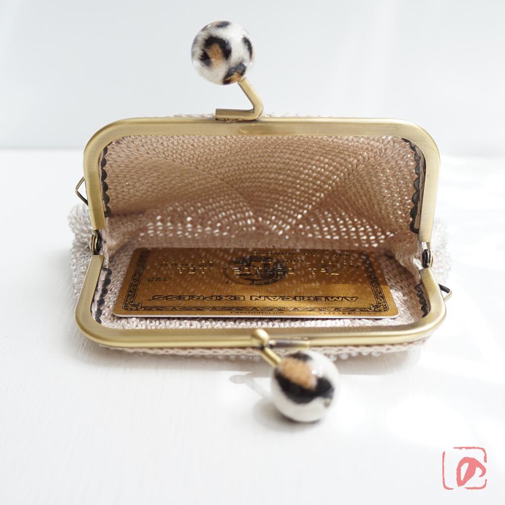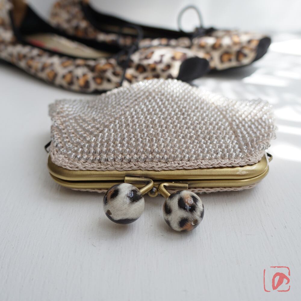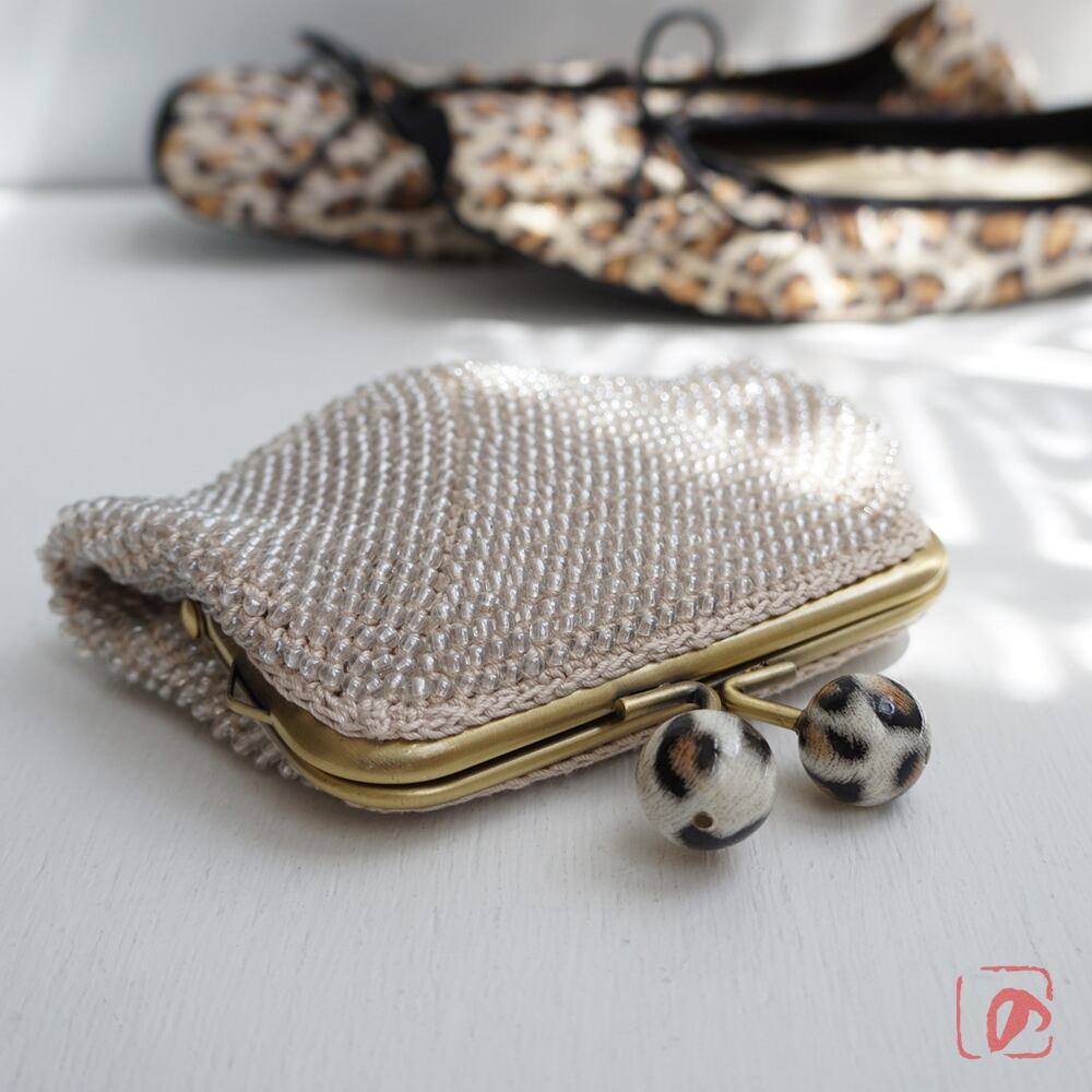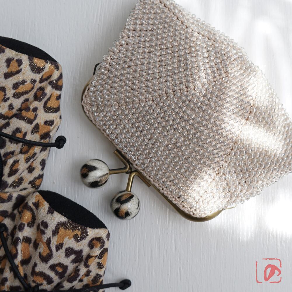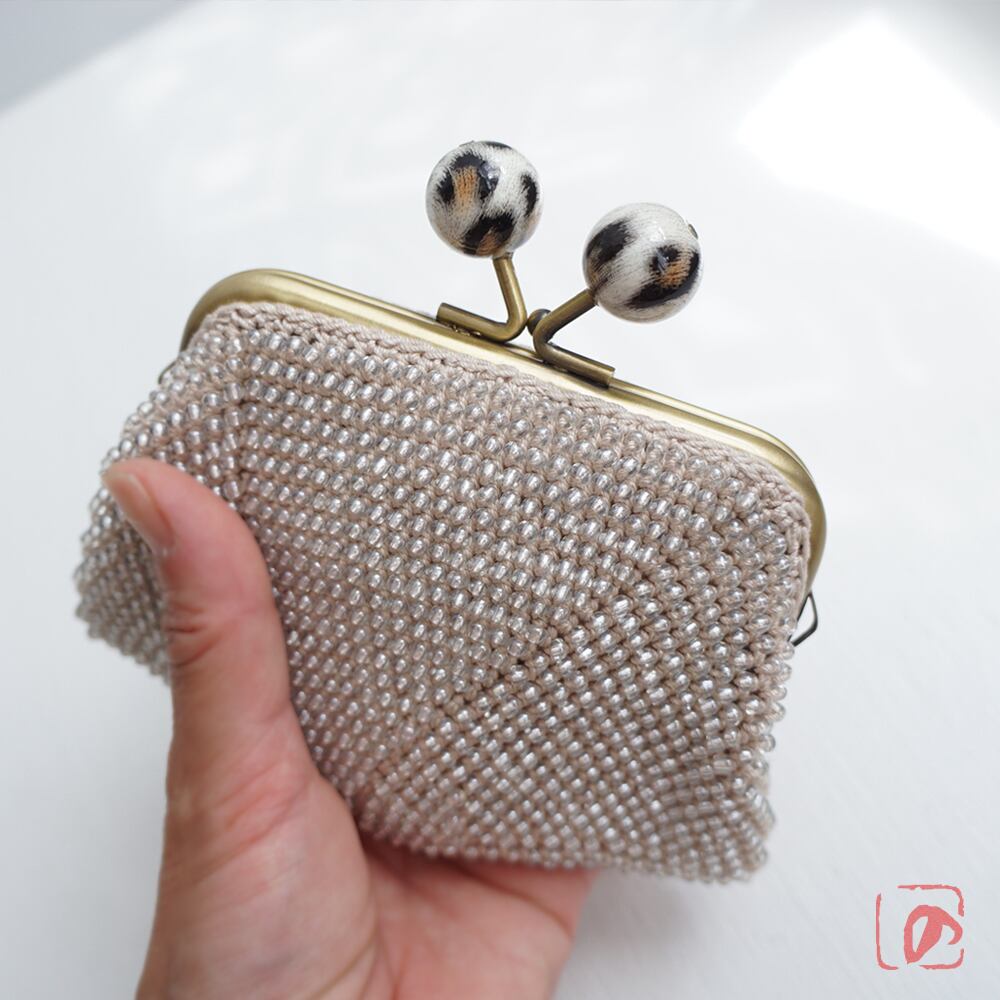 ばあば作、大きめ・総ガラスビーズのスクエアがま口(pantera・1712)