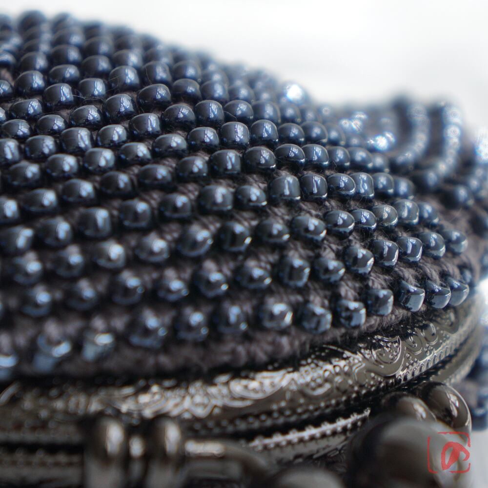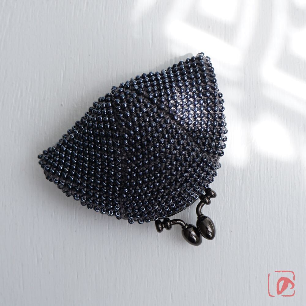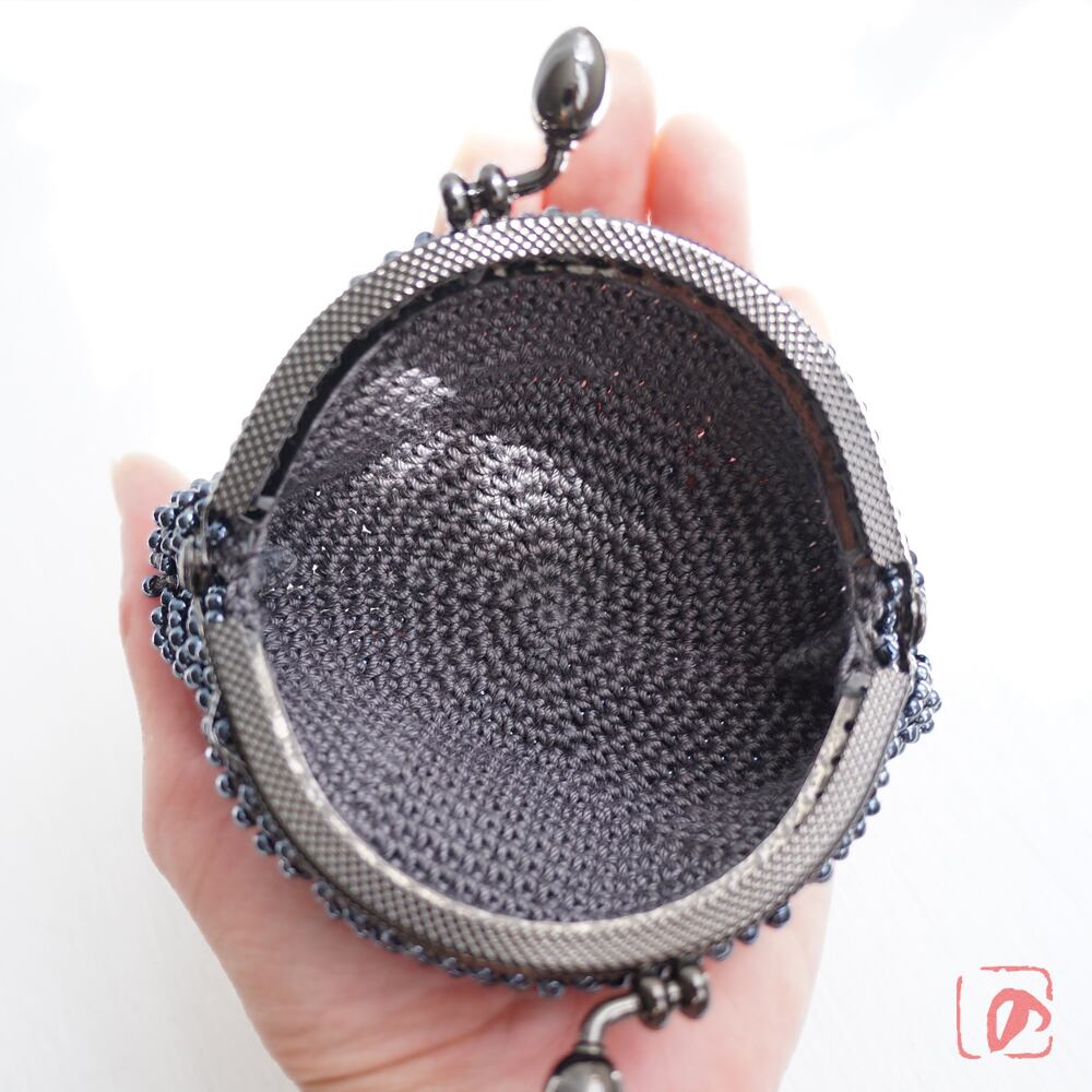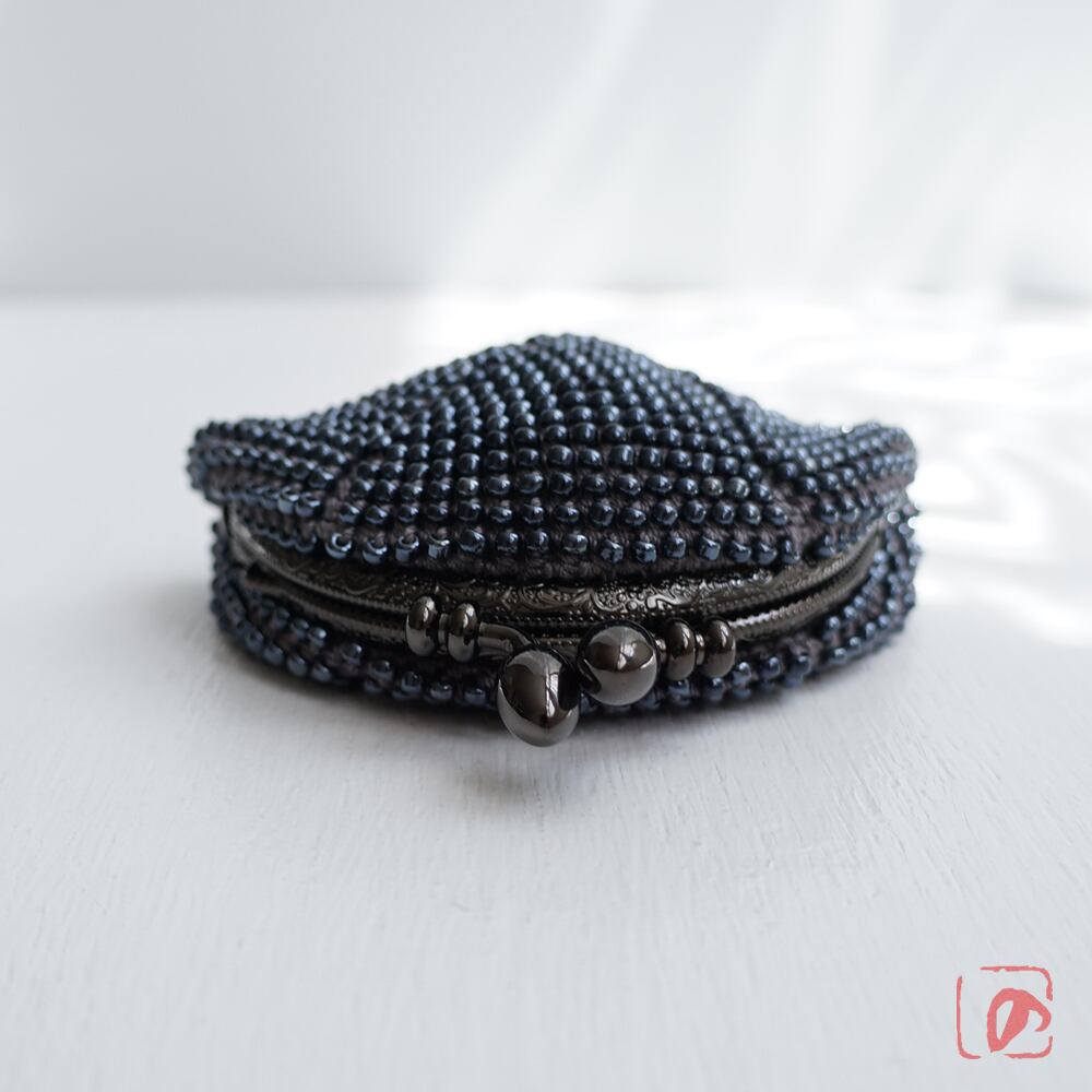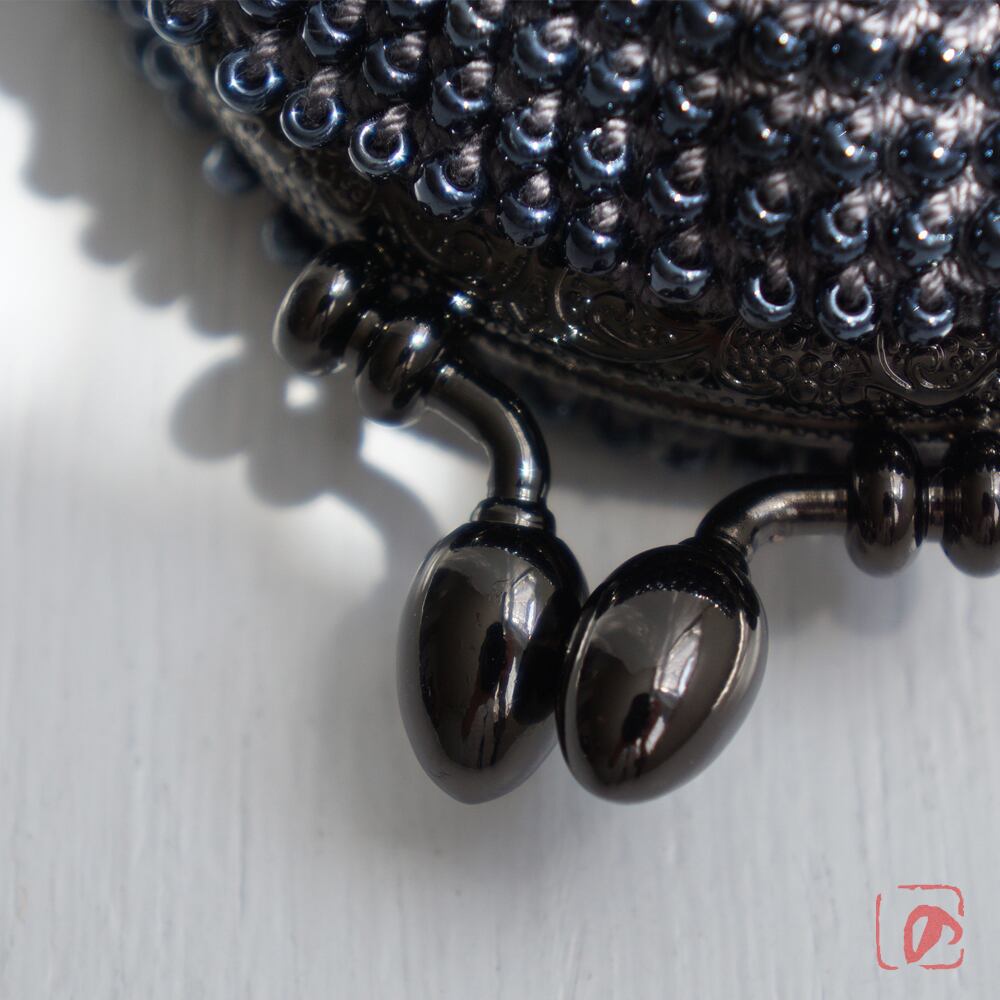 ばあば作☆☆総ガラスビーズのがま口(hematite・1699)