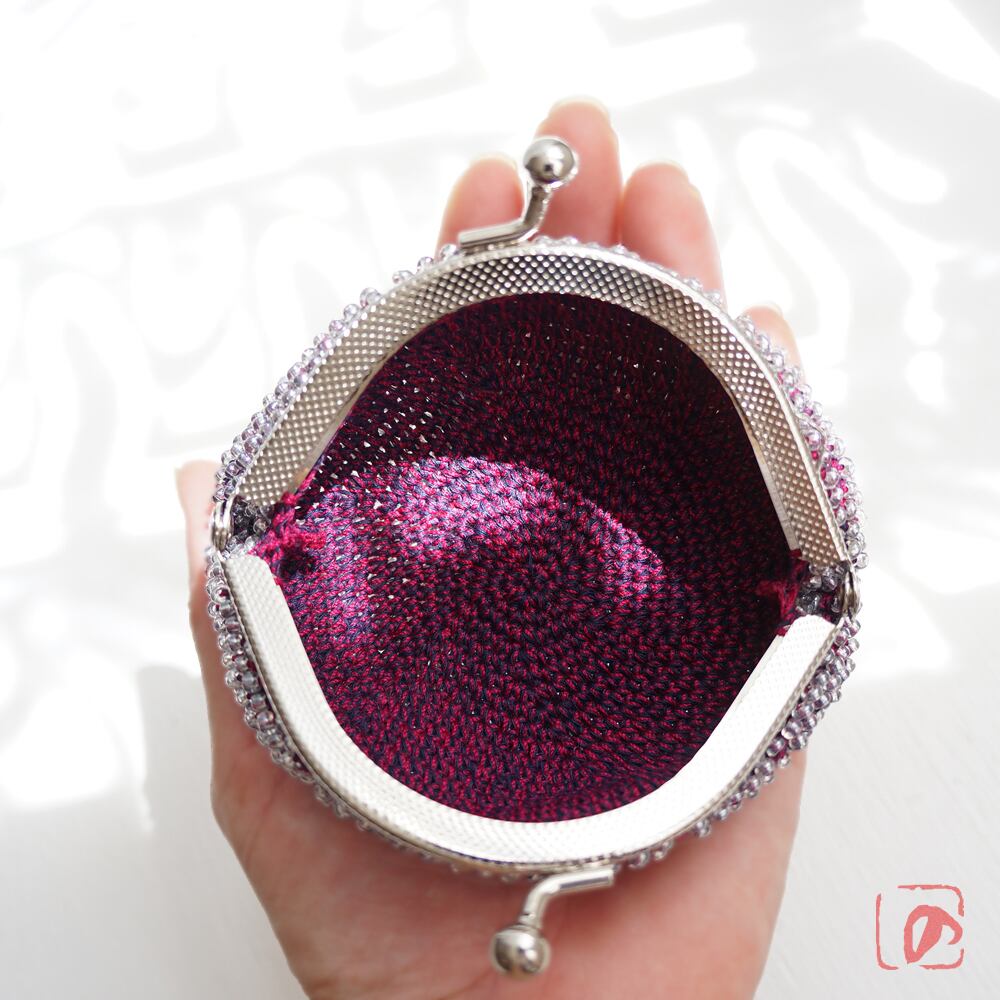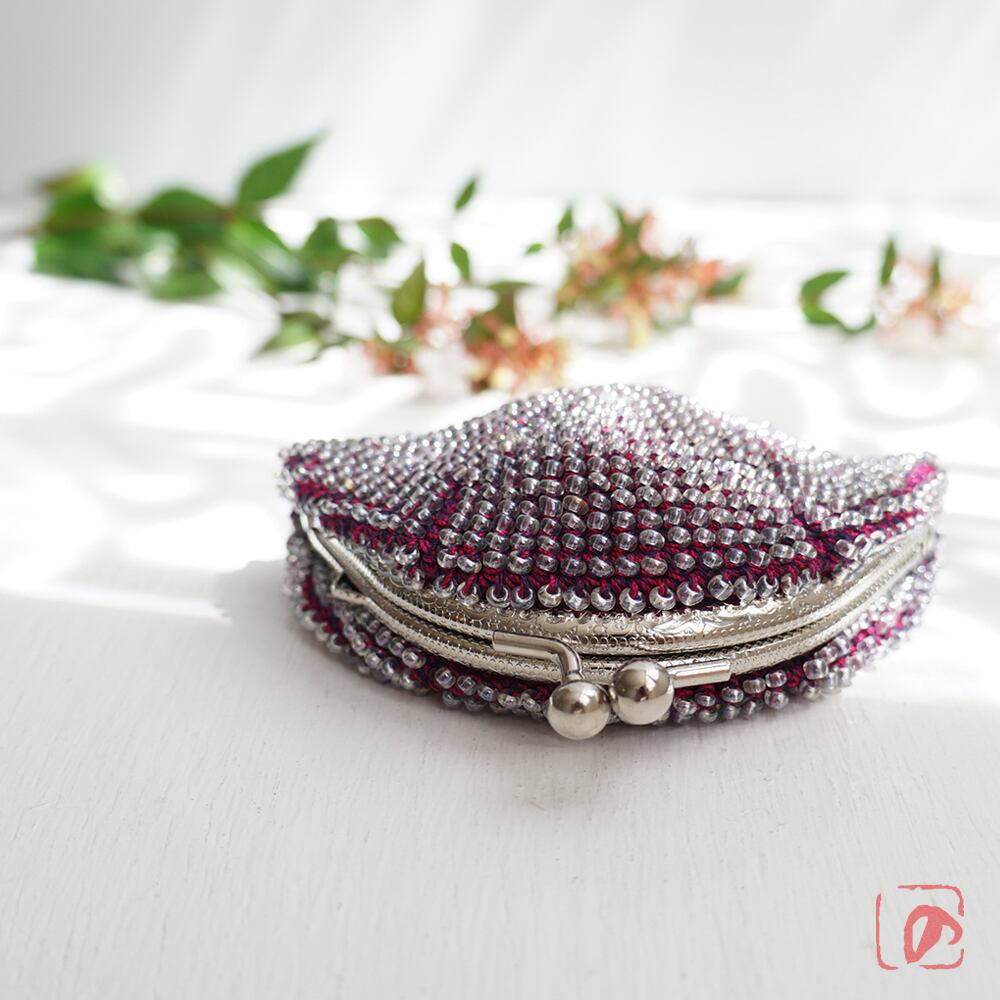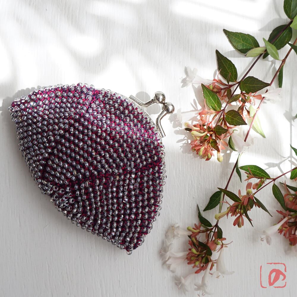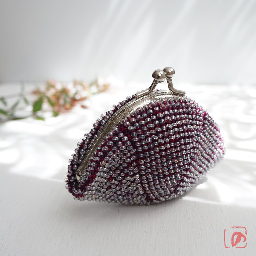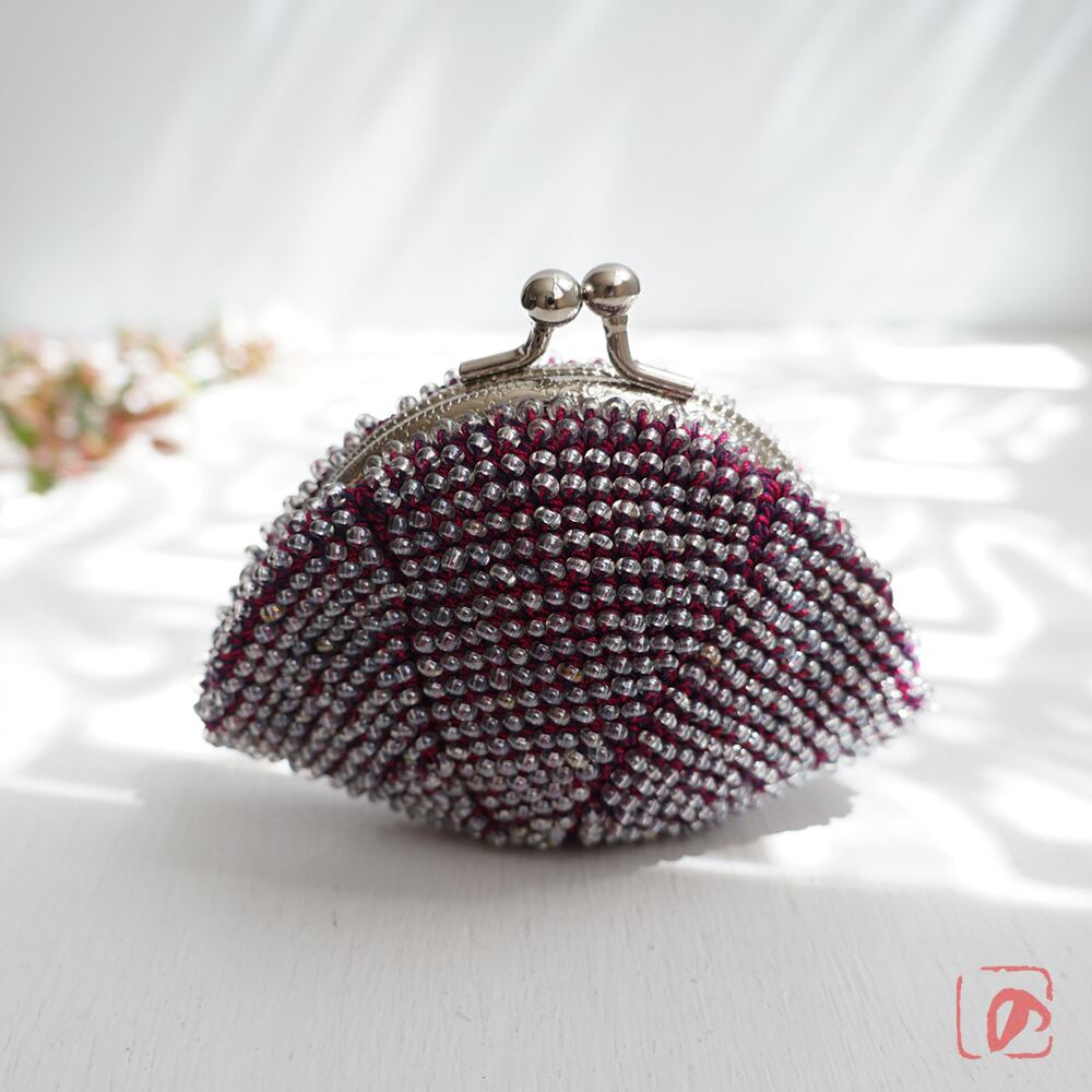 ばあば作、総ガラスビーズのがま口(ぶどう・1720)