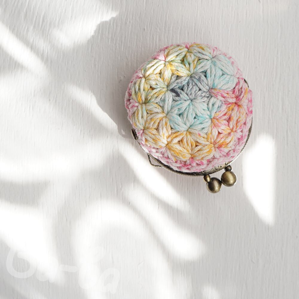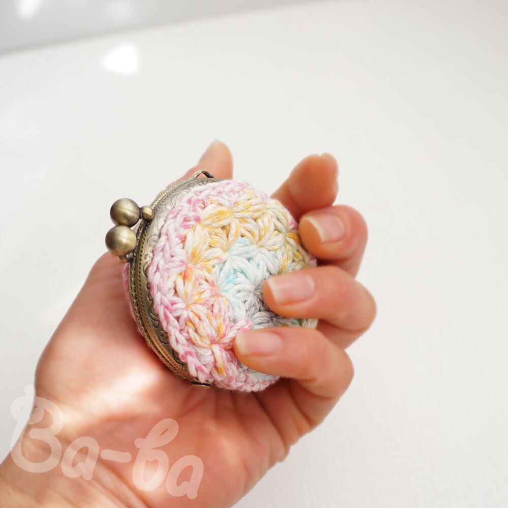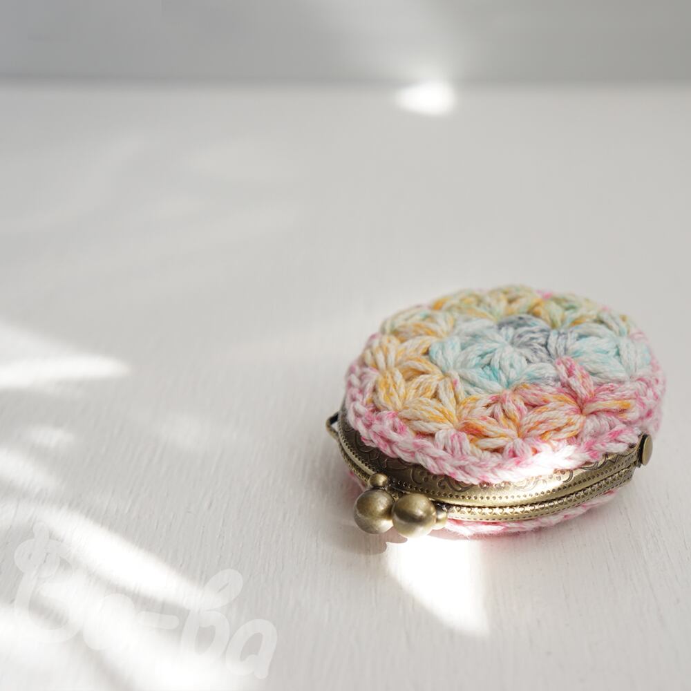 ばあば作♪リフ編みのminiまるがま口(summer pastel・C1565)