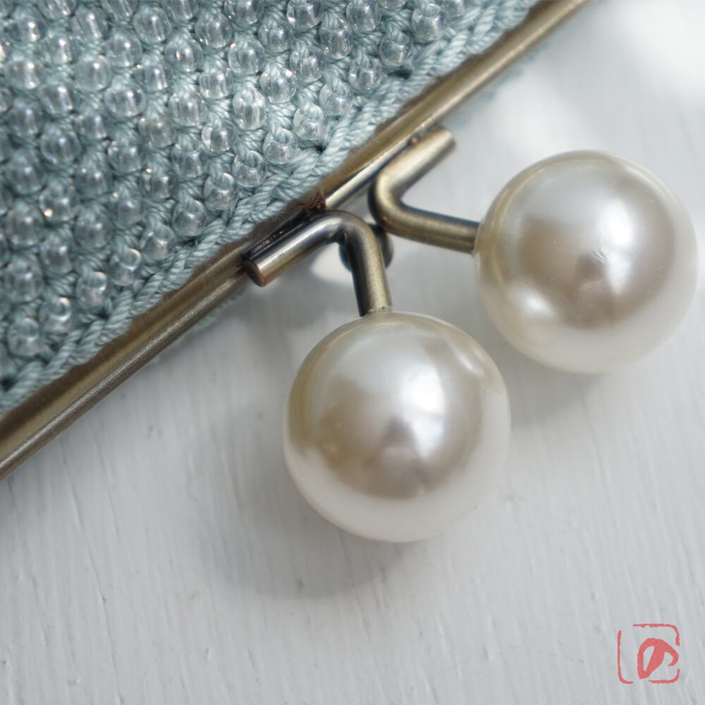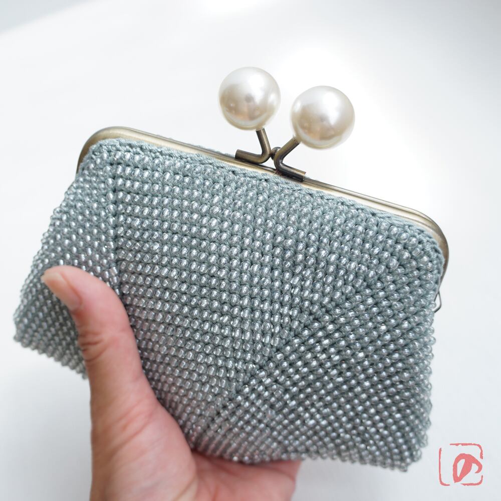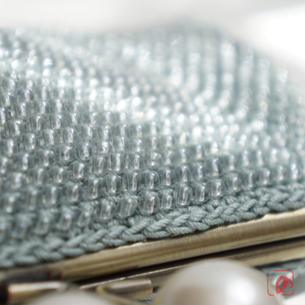キラキラ輝く3mmのクリアビーズをひとつぶづつ、全面に編み込みました。