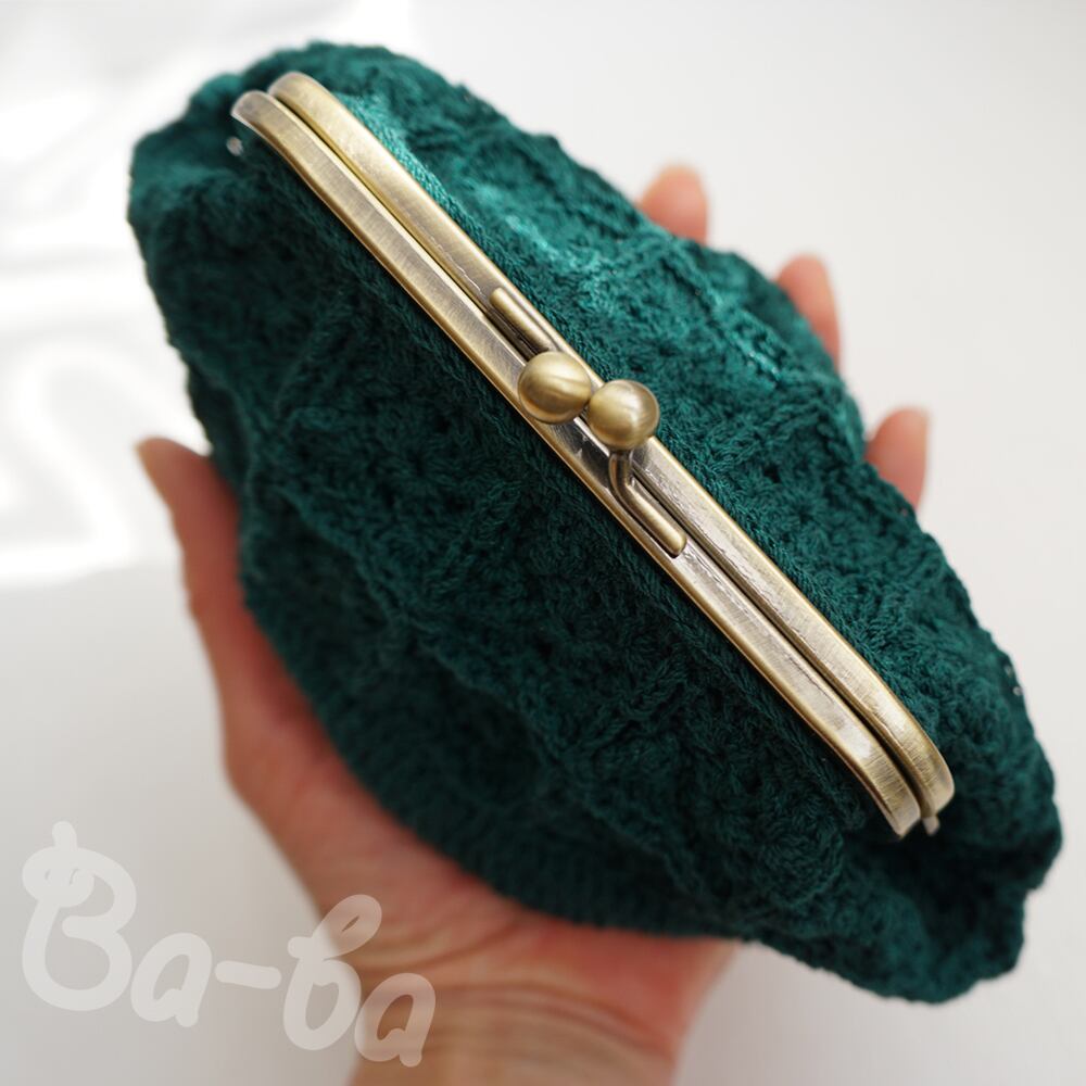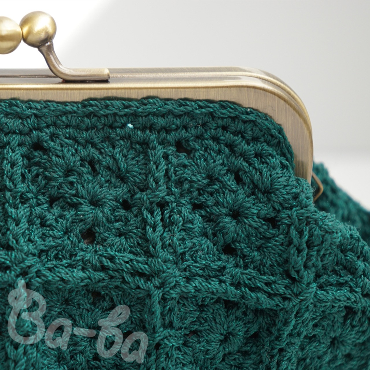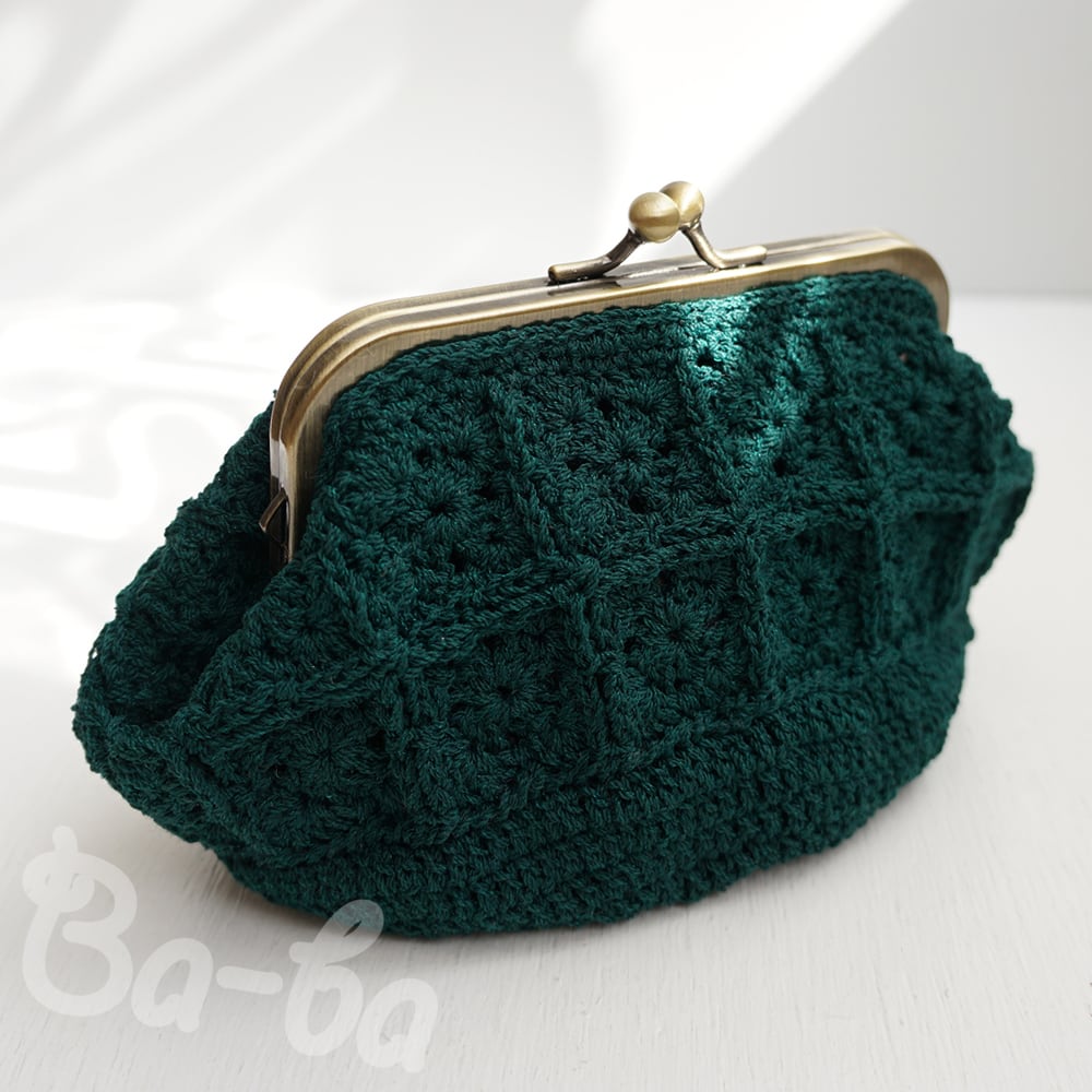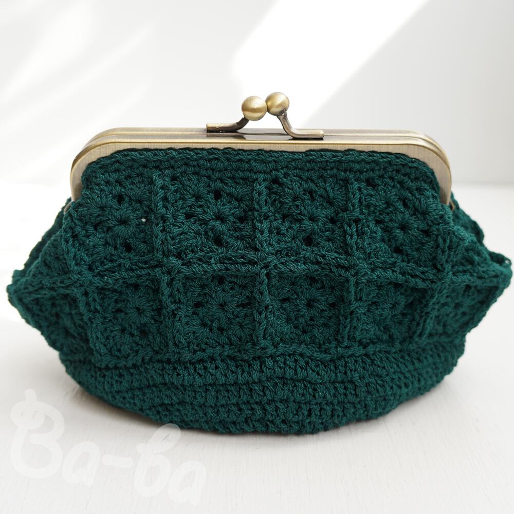ばあば作、さらに大きめ・モチーフつなぎのたっぷりがま口(ivy green・C1588)