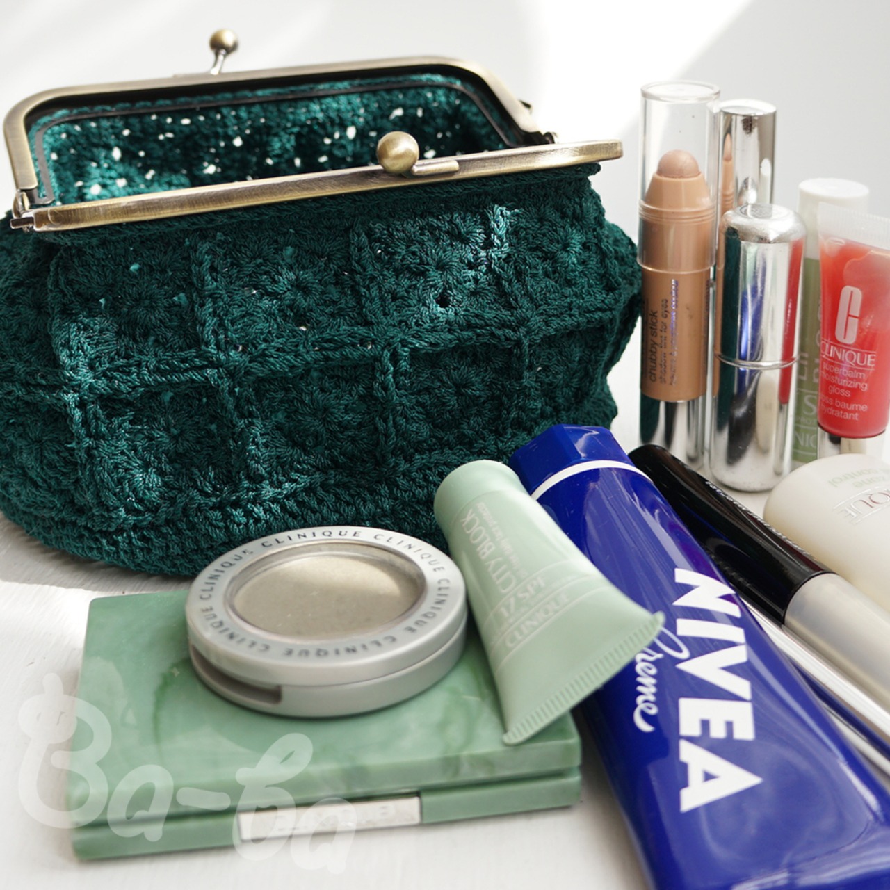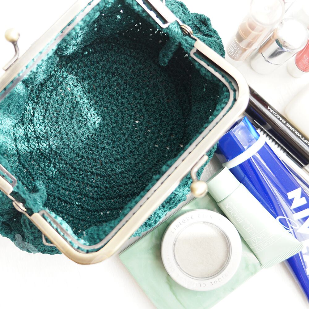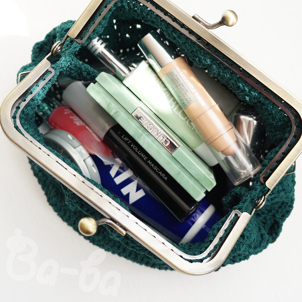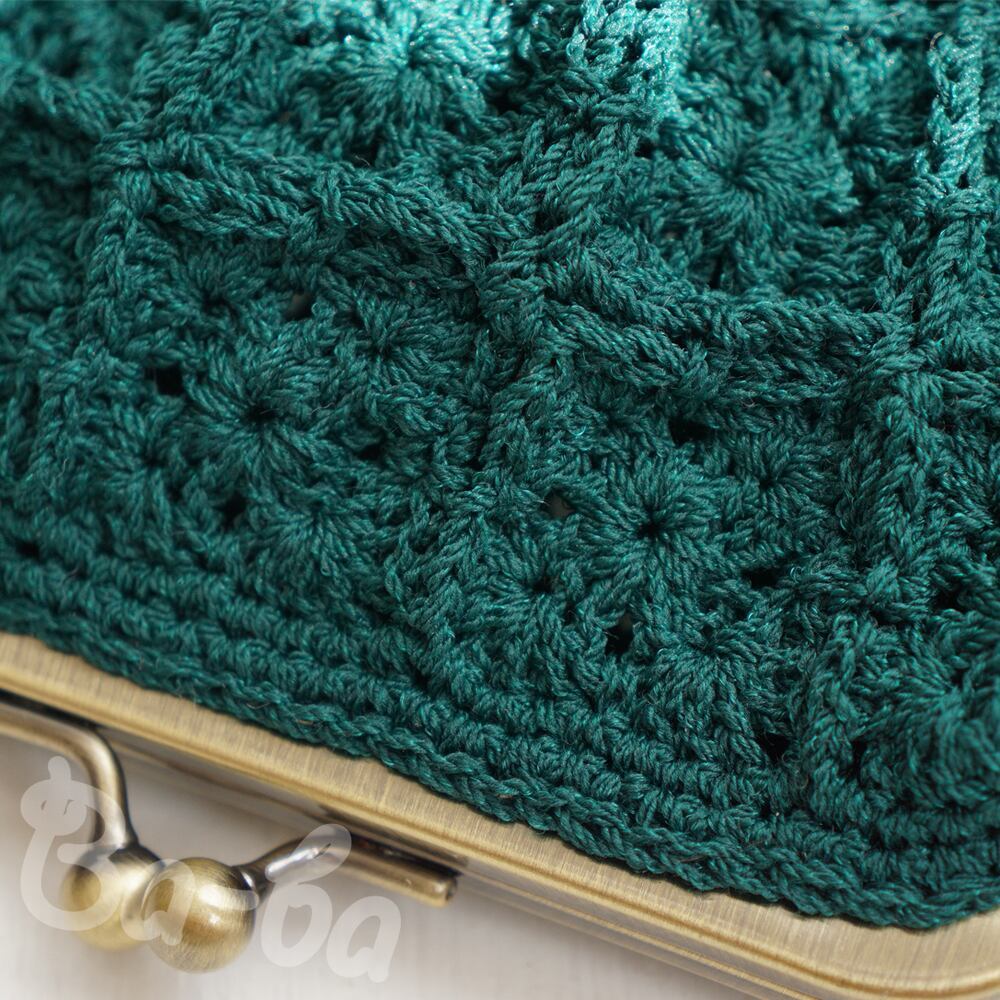 ばあば作、さらに大きめ・モチーフつなぎのたっぷりがま口(ivy green・C1588)