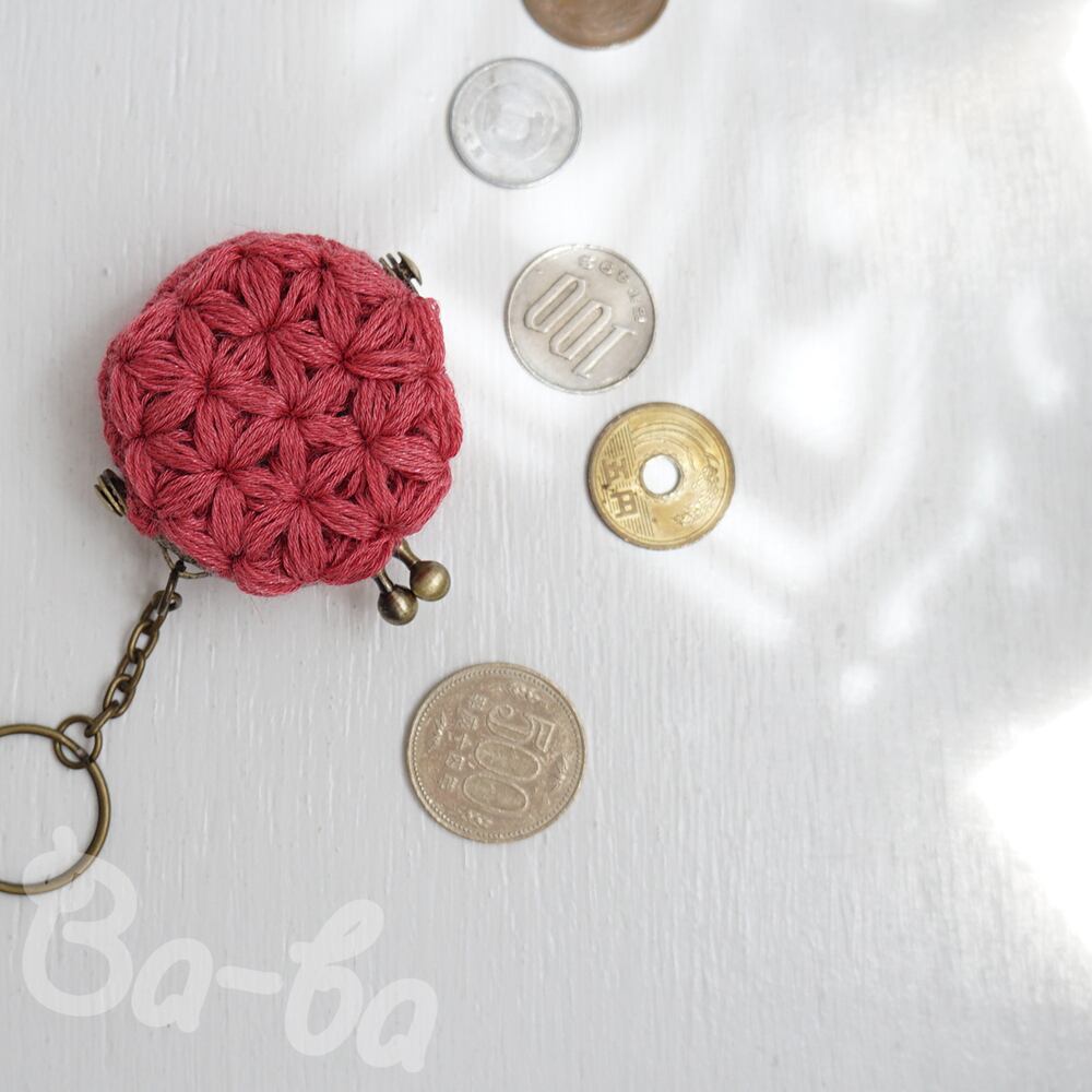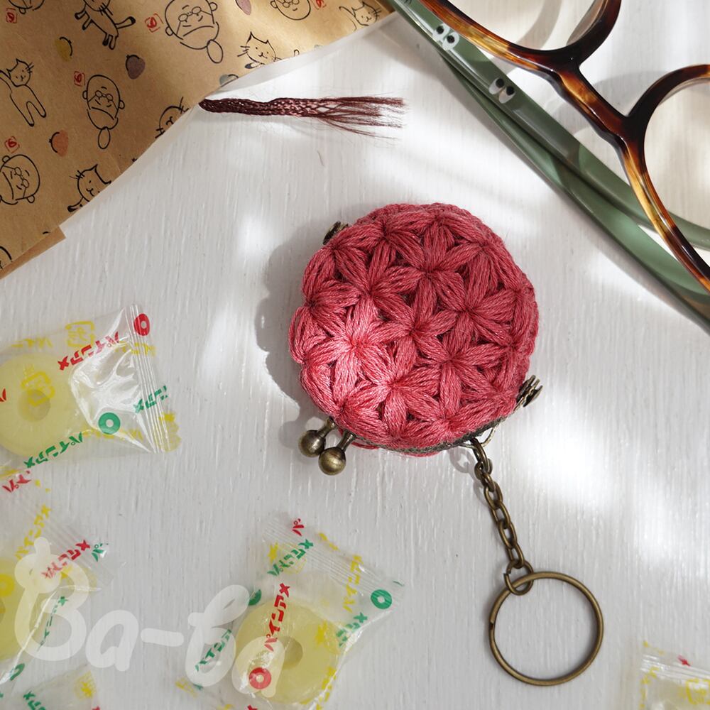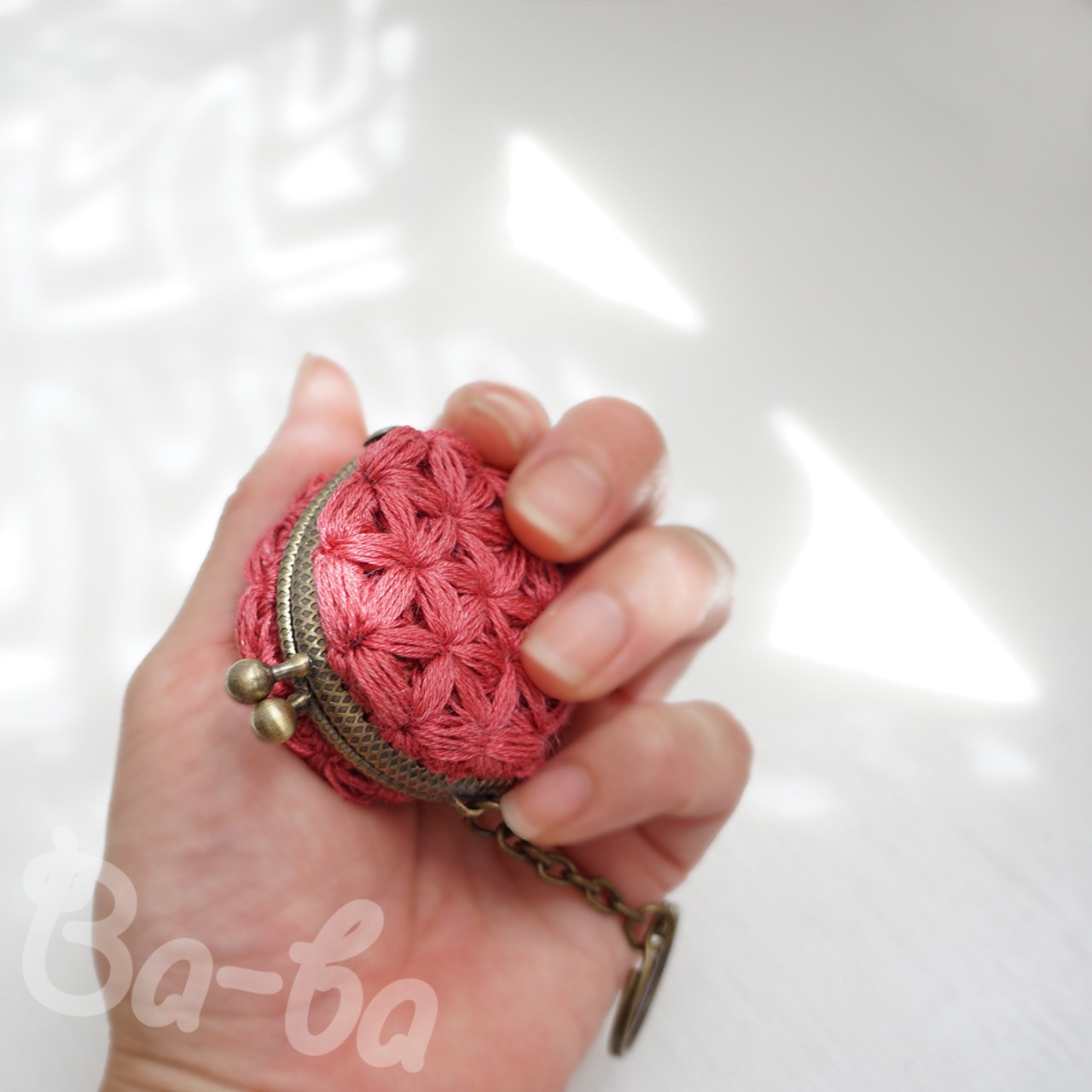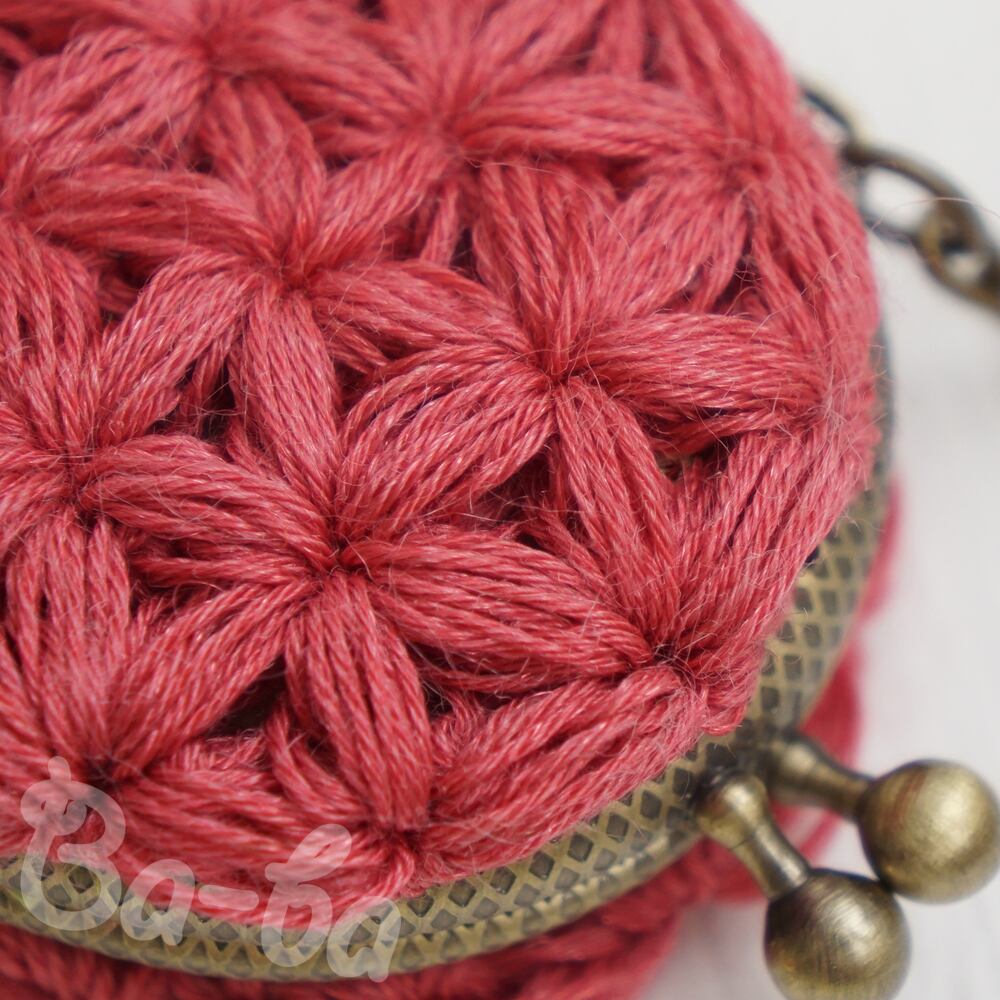 ばあば作♪リフ編みのミニミニがま口(rosepink・C1604)