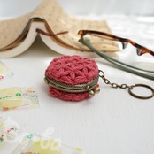 やさしいローズピンクのサマーヤーンで、ふんわりリフ編みのがま口を作りました。