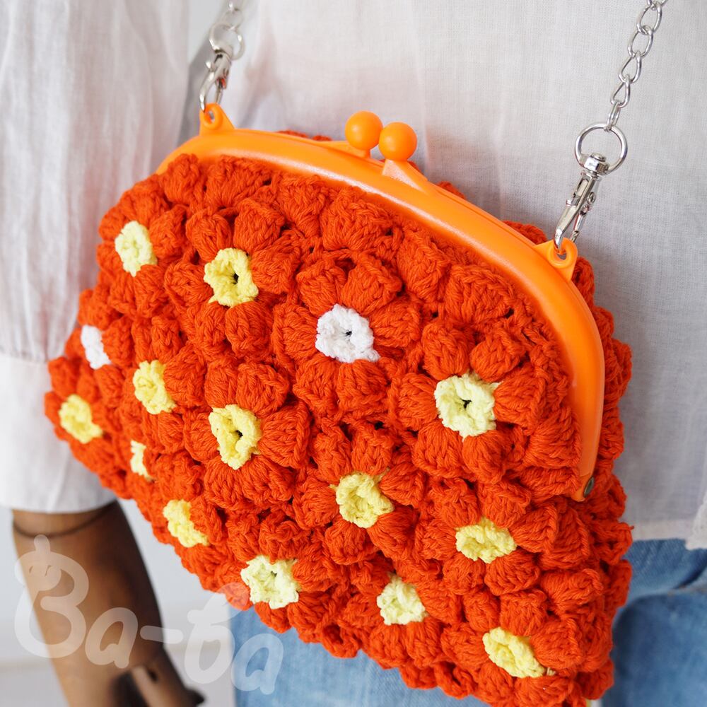 ばあば作、ポピーパフ編みプチバッグ(poppy・C1601)