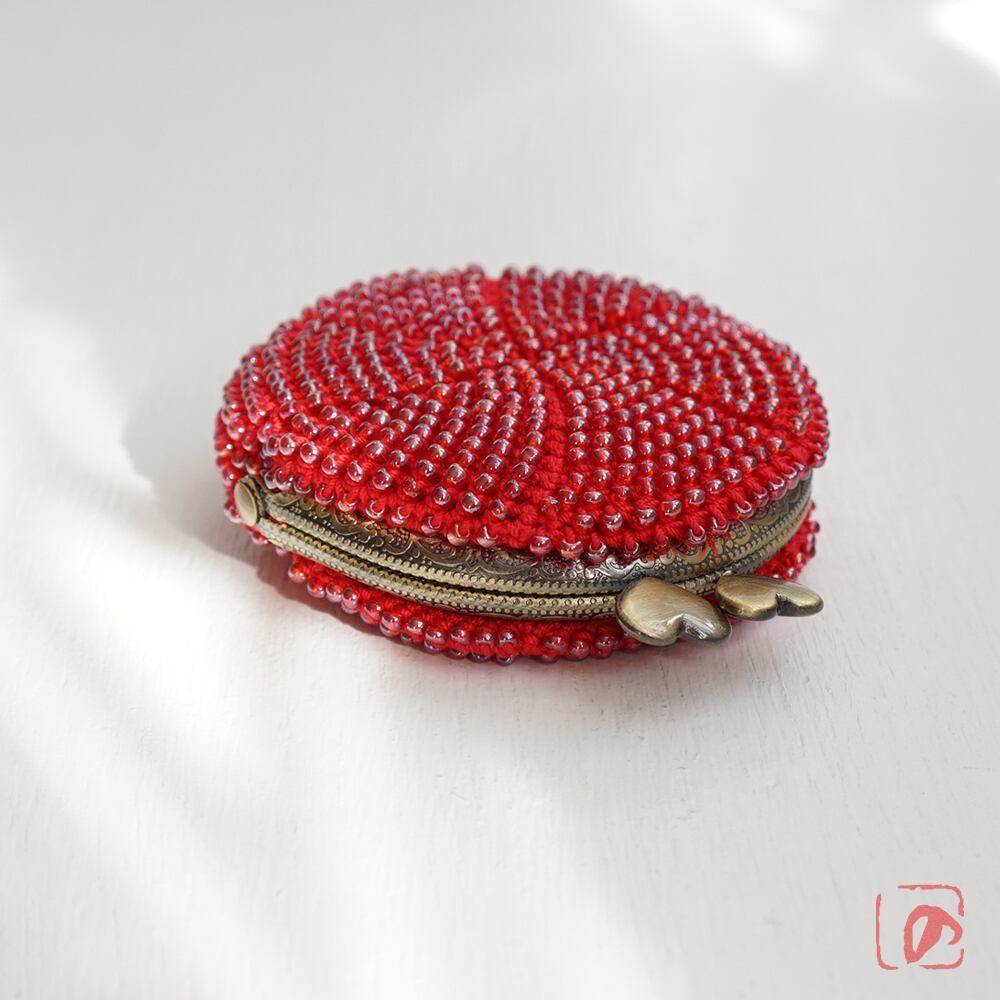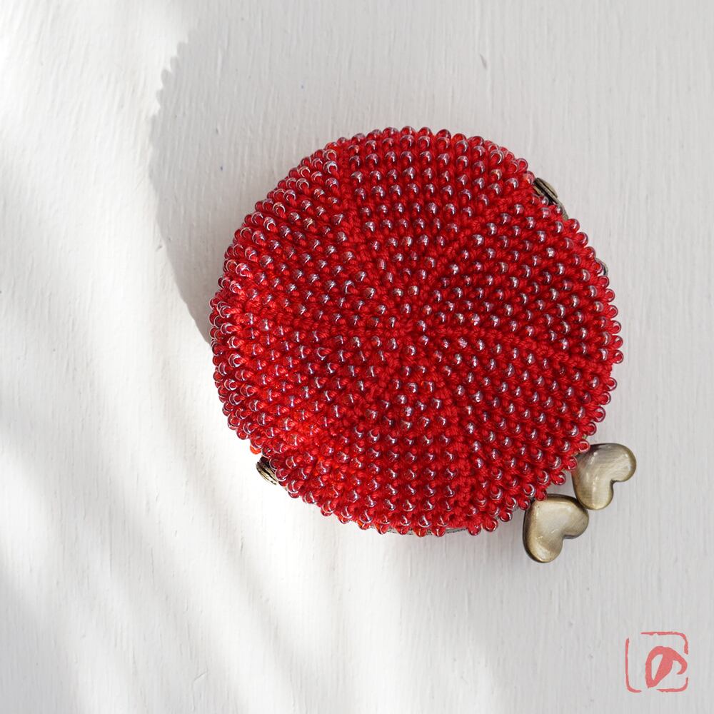 ばあば作 ♡ ガラスビーズのまんまるがま口(ichigo・1601)