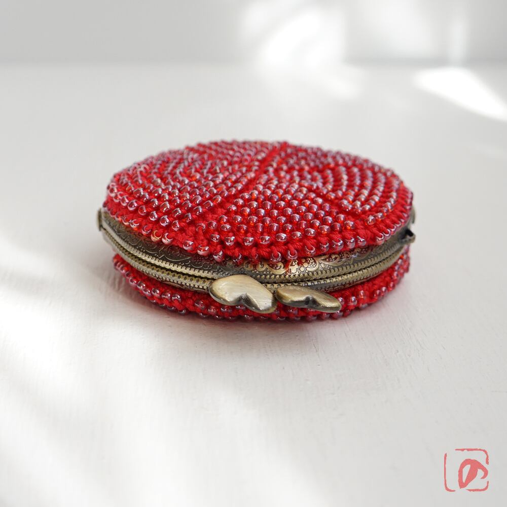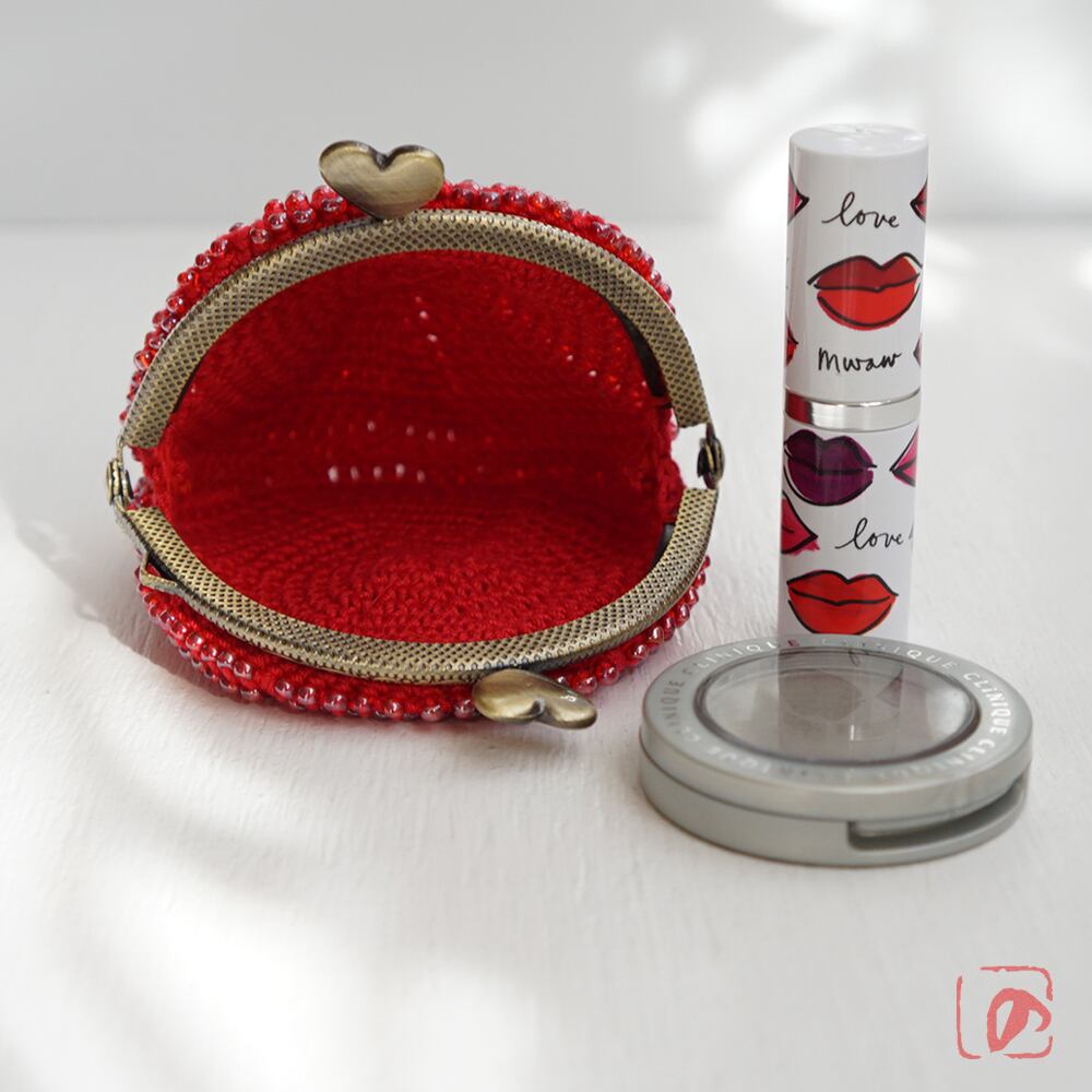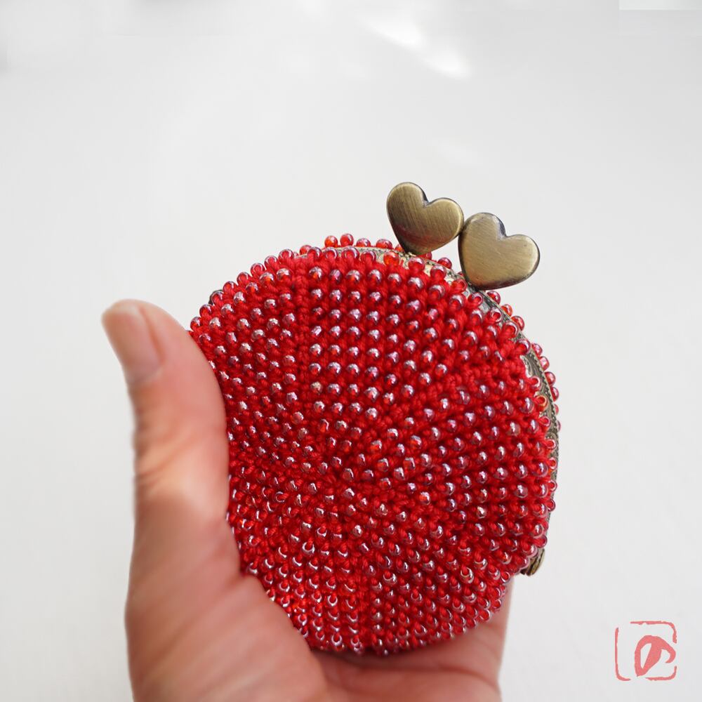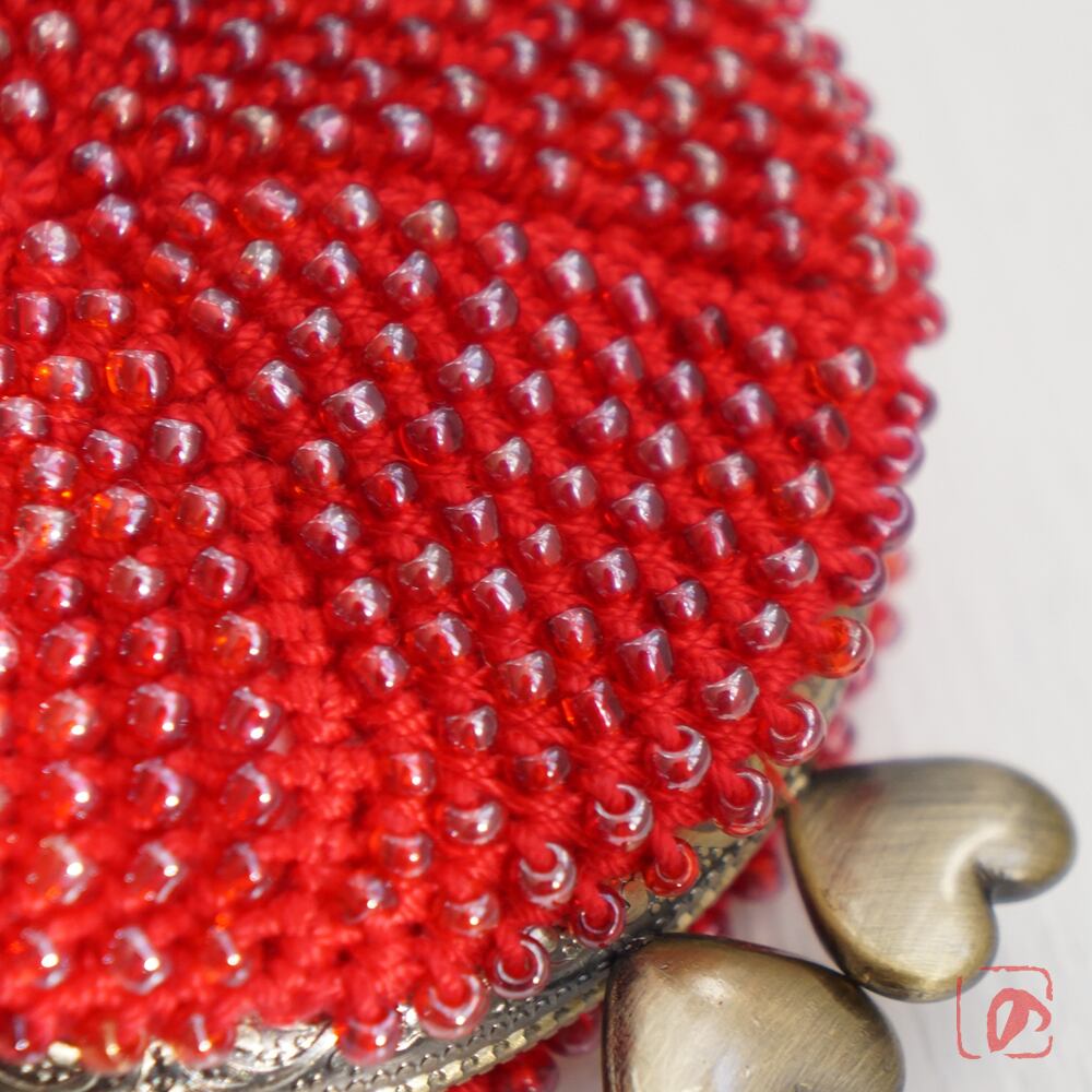 糸とビーズを赤で揃えて、可愛らしく仕上げました。