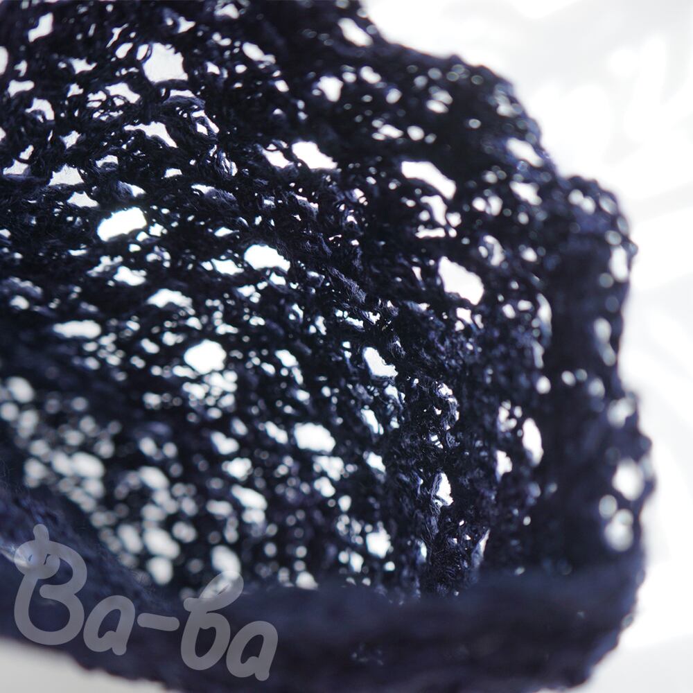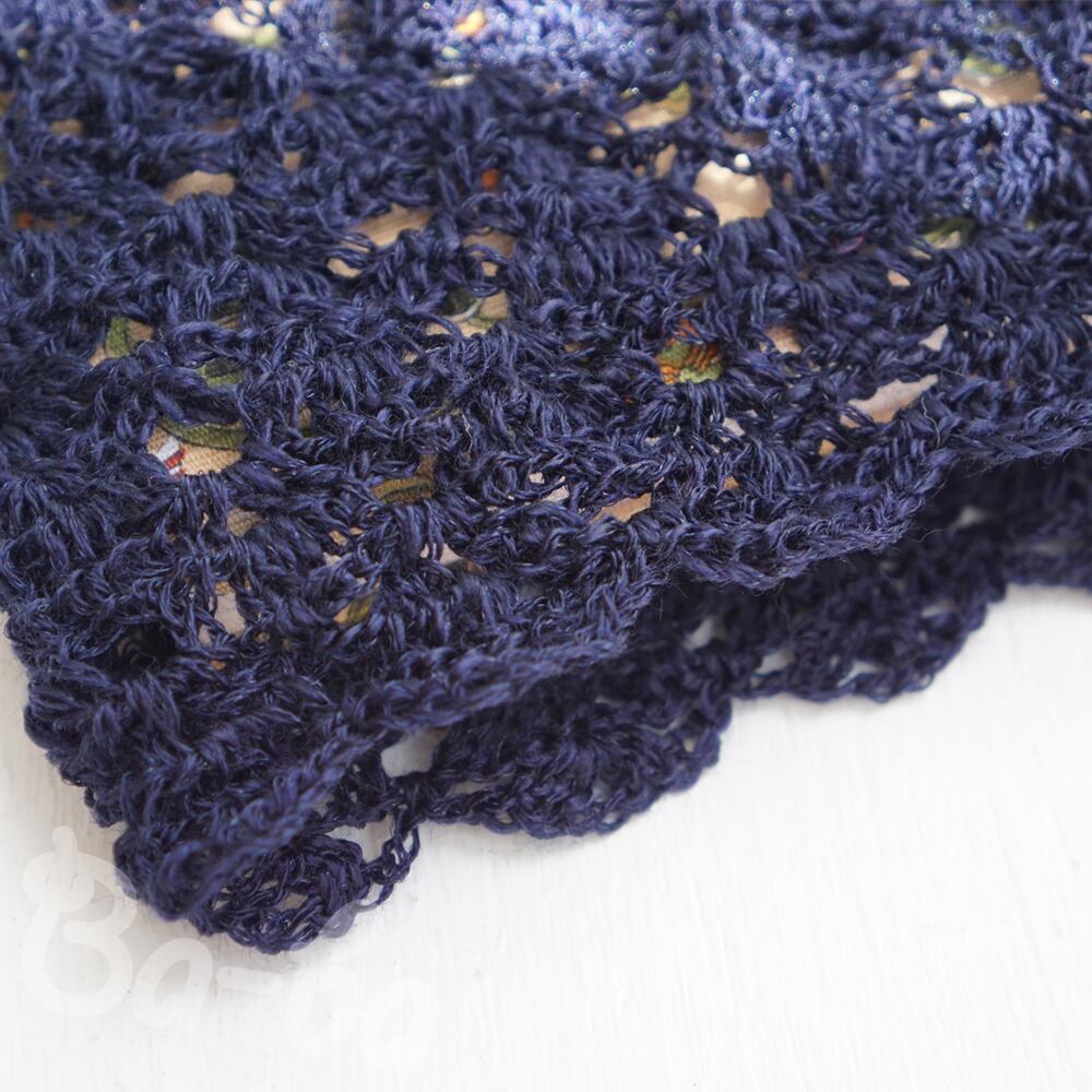 ネイビーの混紡サマーヤーンを、波模様のような透かし編みにしました。