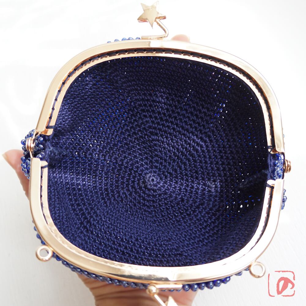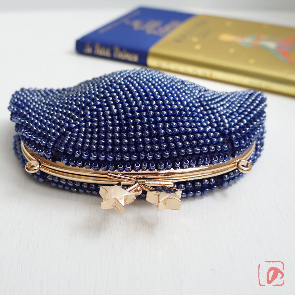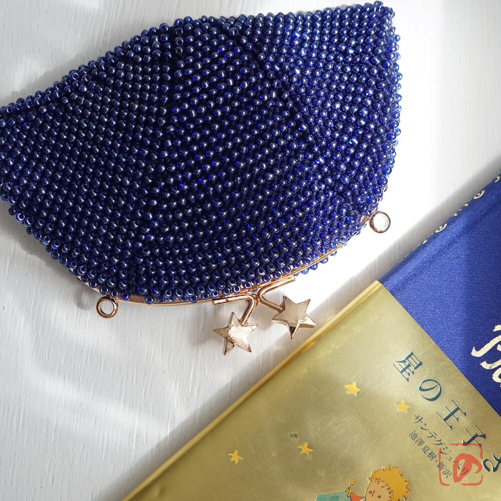 ネイビーブルーの糸とクリアブルーのビーズで、深い青を表現しました。