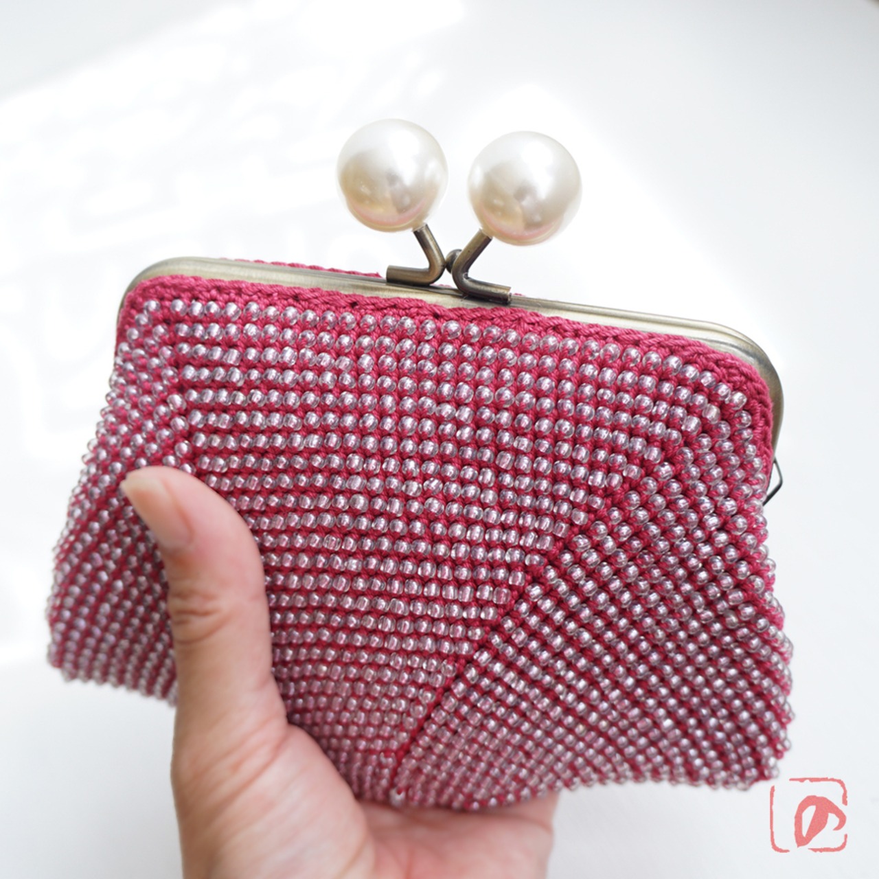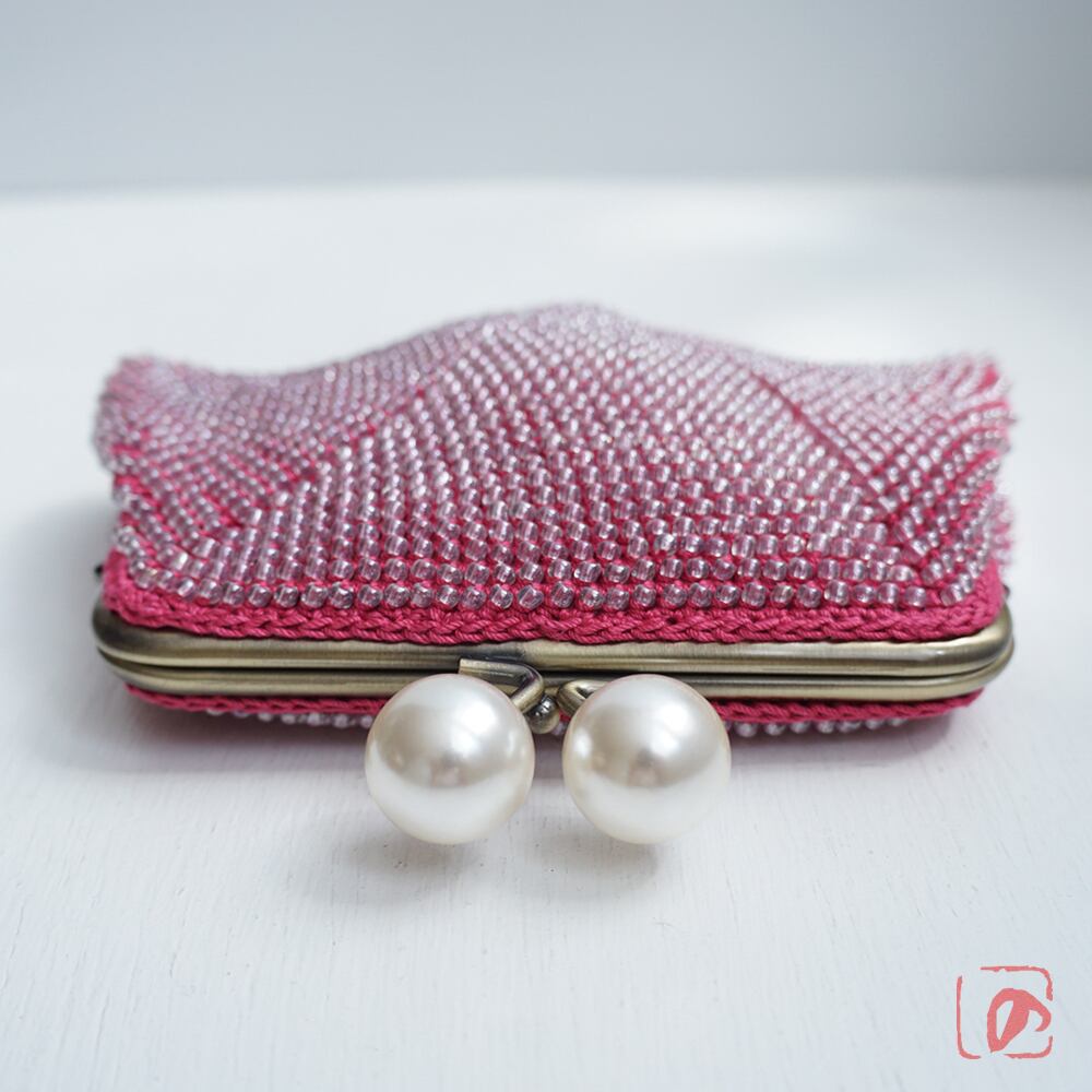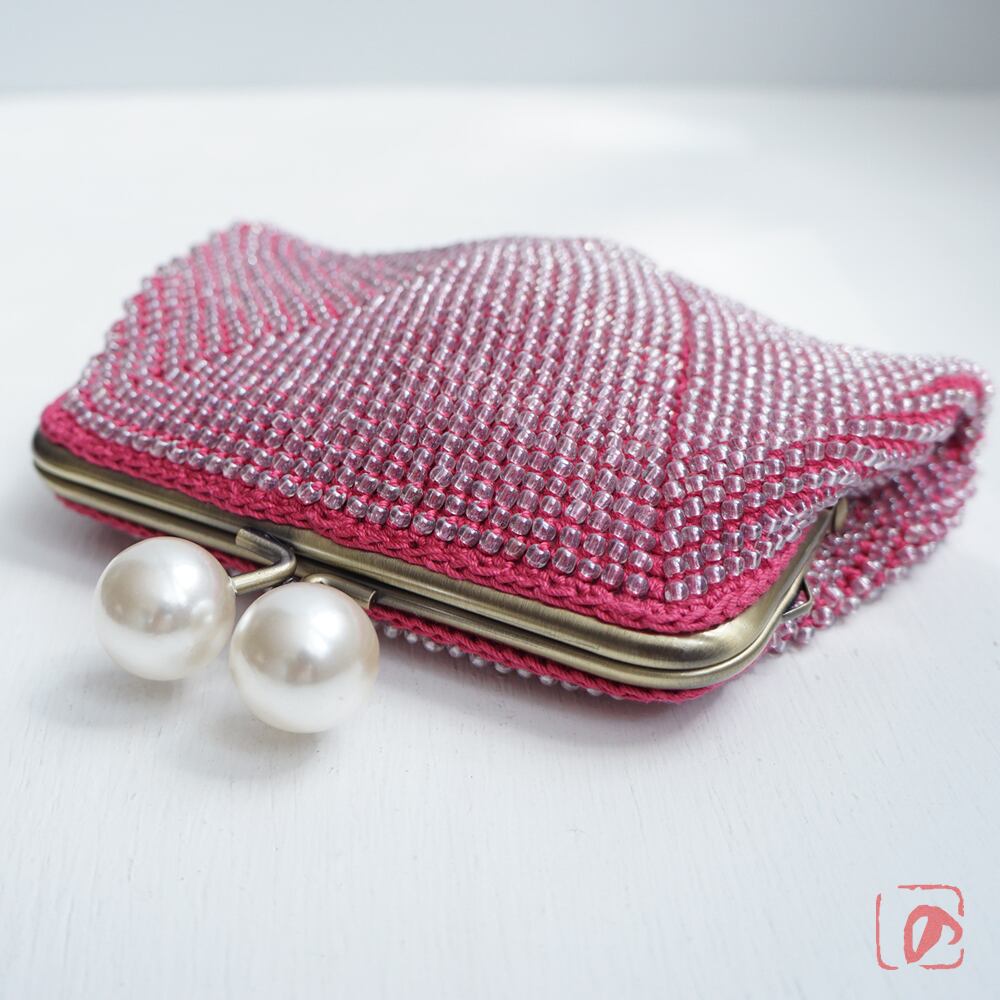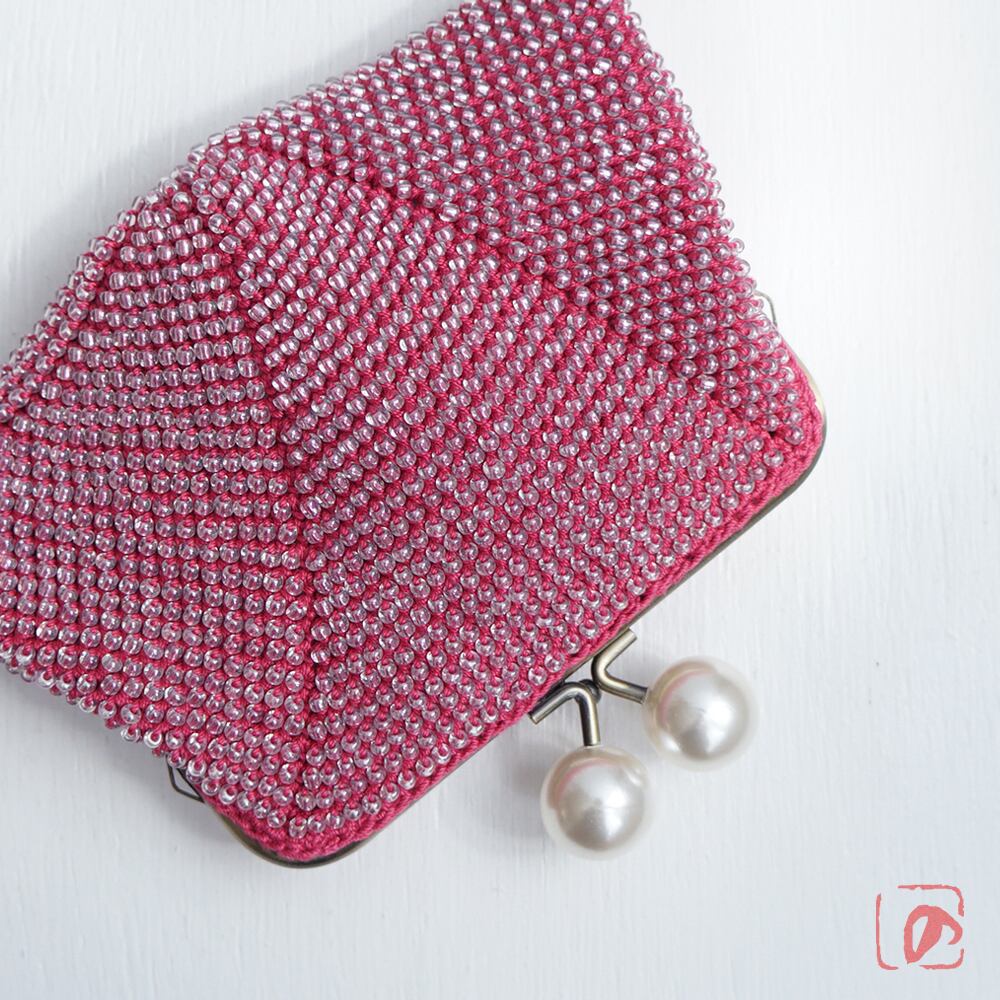 ばあば作☆☆さらに大きめ☆ガラスビーズのスクエアがま口(framboise・1724)