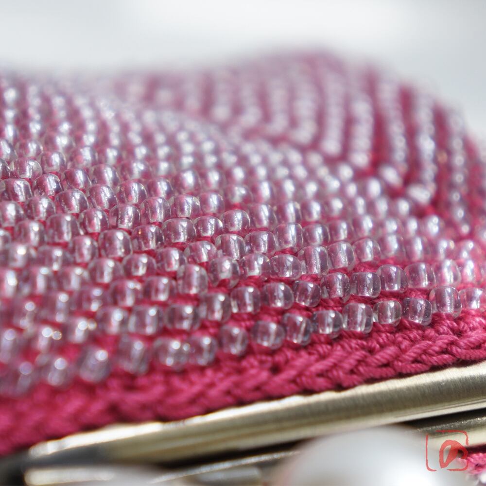キラキラ輝く3mmのクリアビーズをひとつぶづつ、全面に編み込みました。