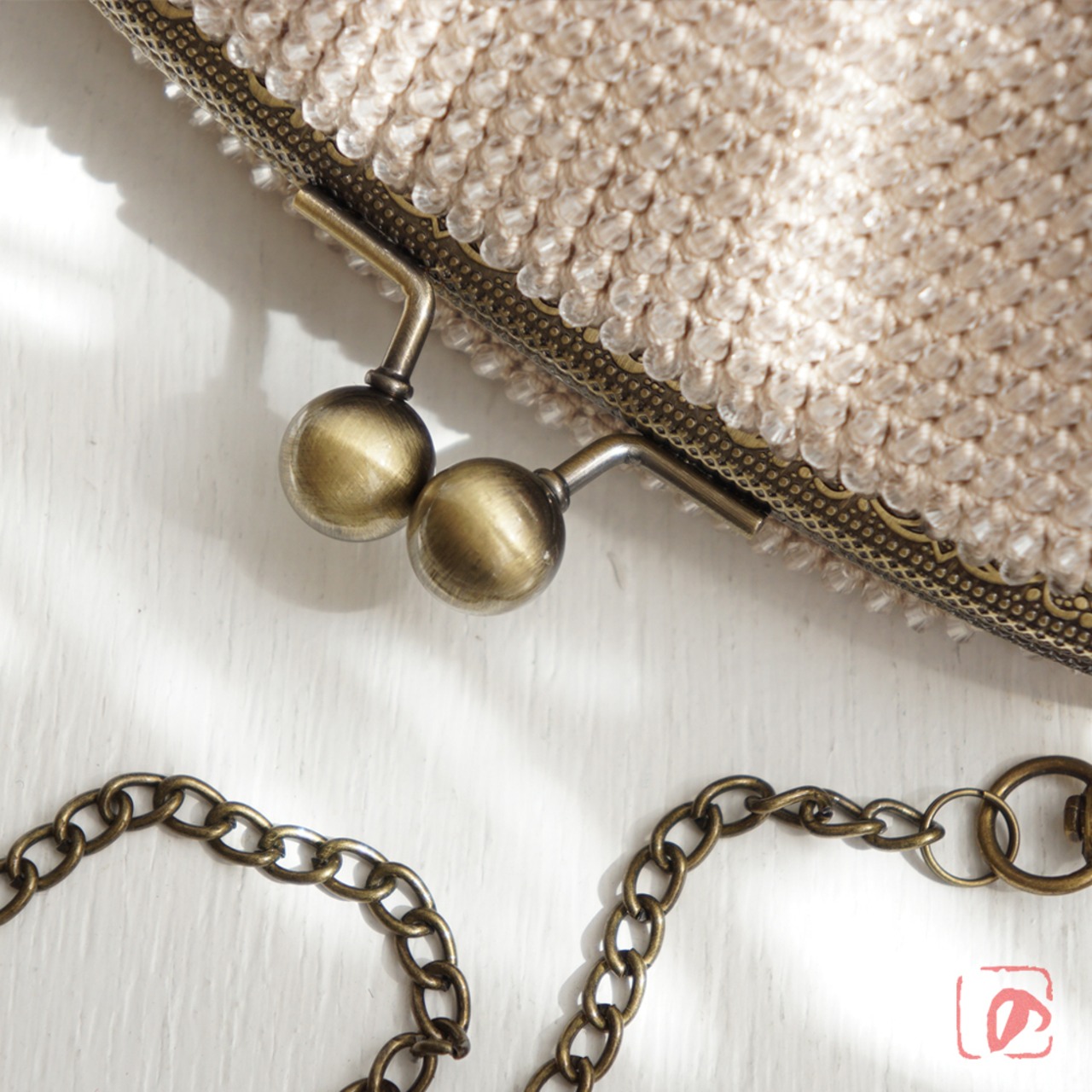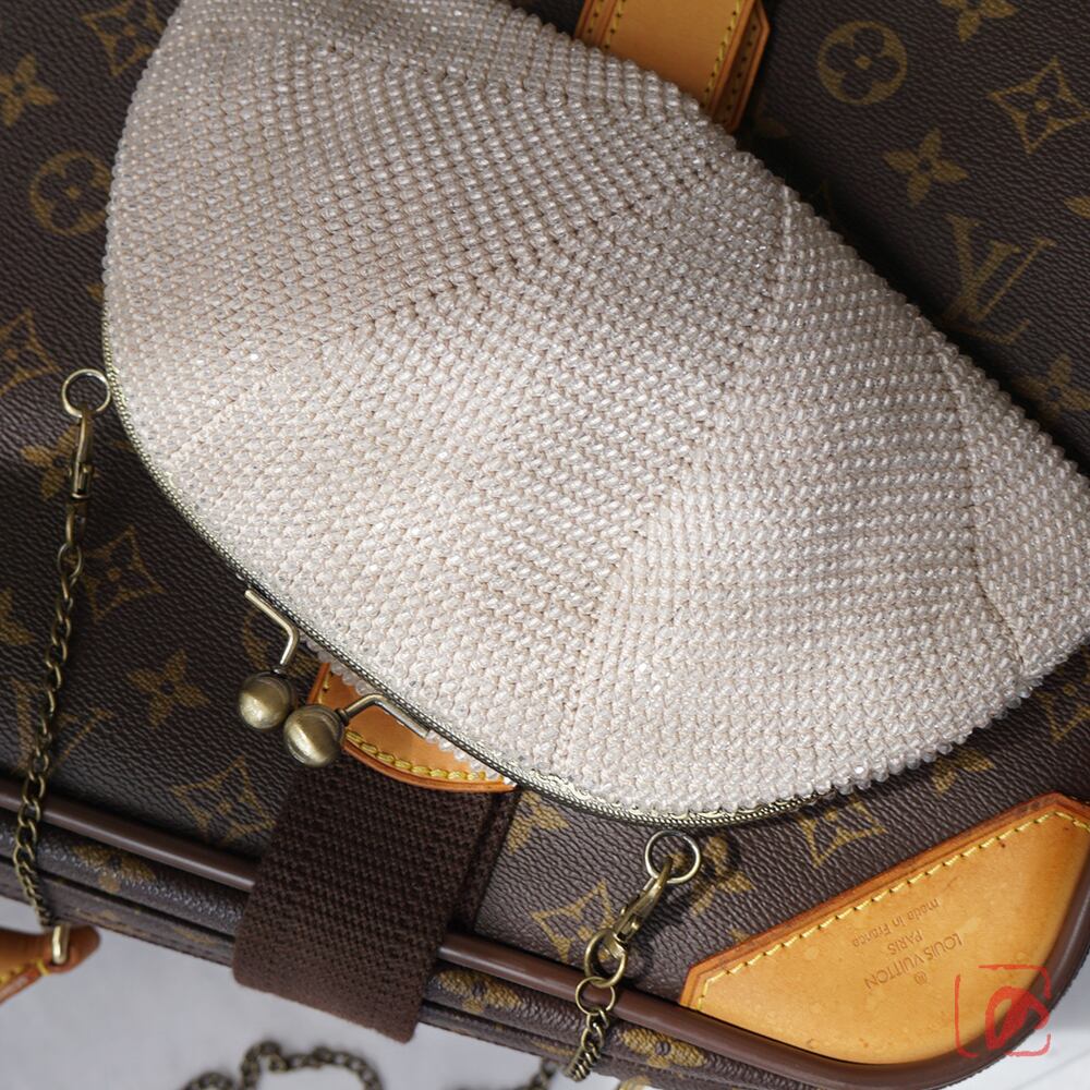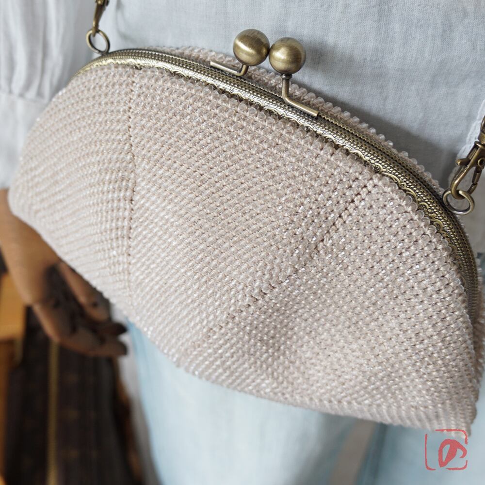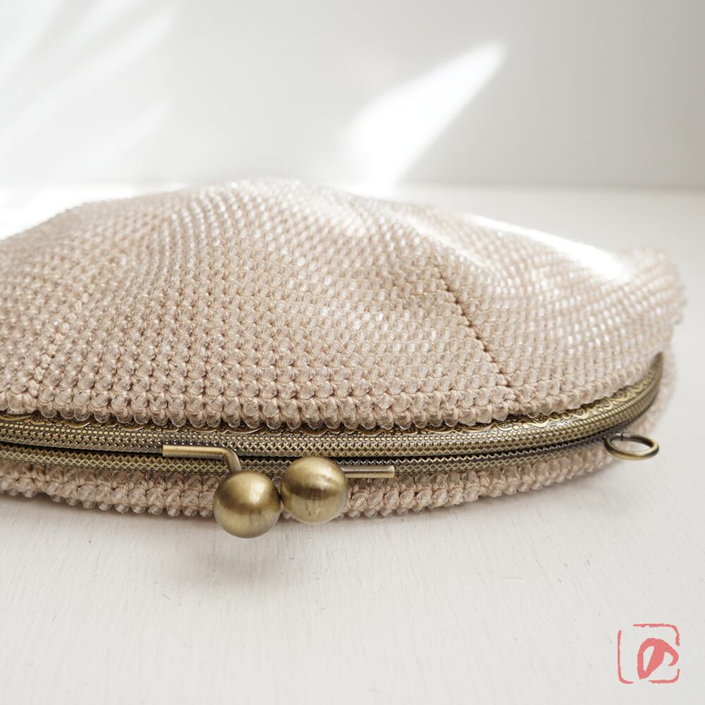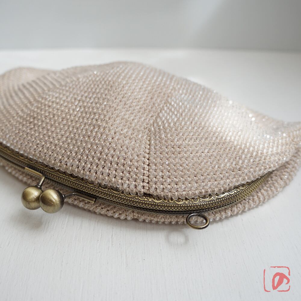 ばあば作☆キラキラ☆アクリルビーズのビーズバッグ(Écru・1755)