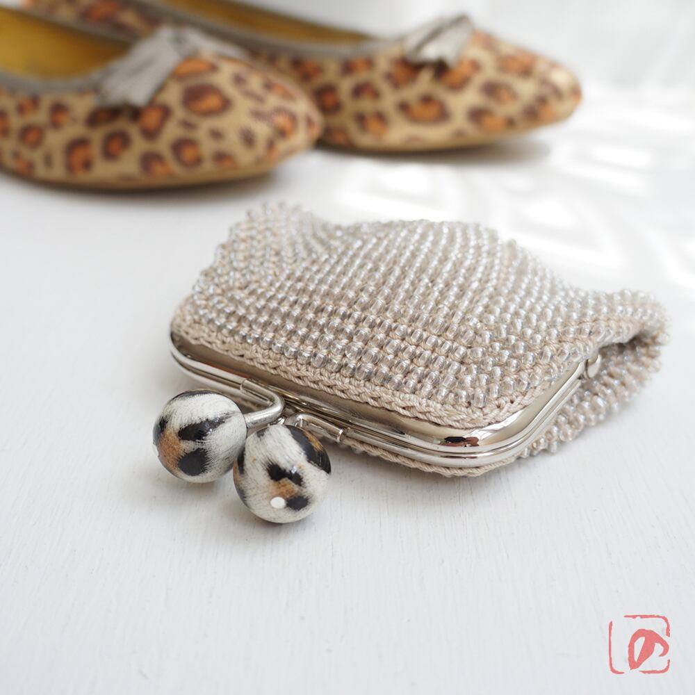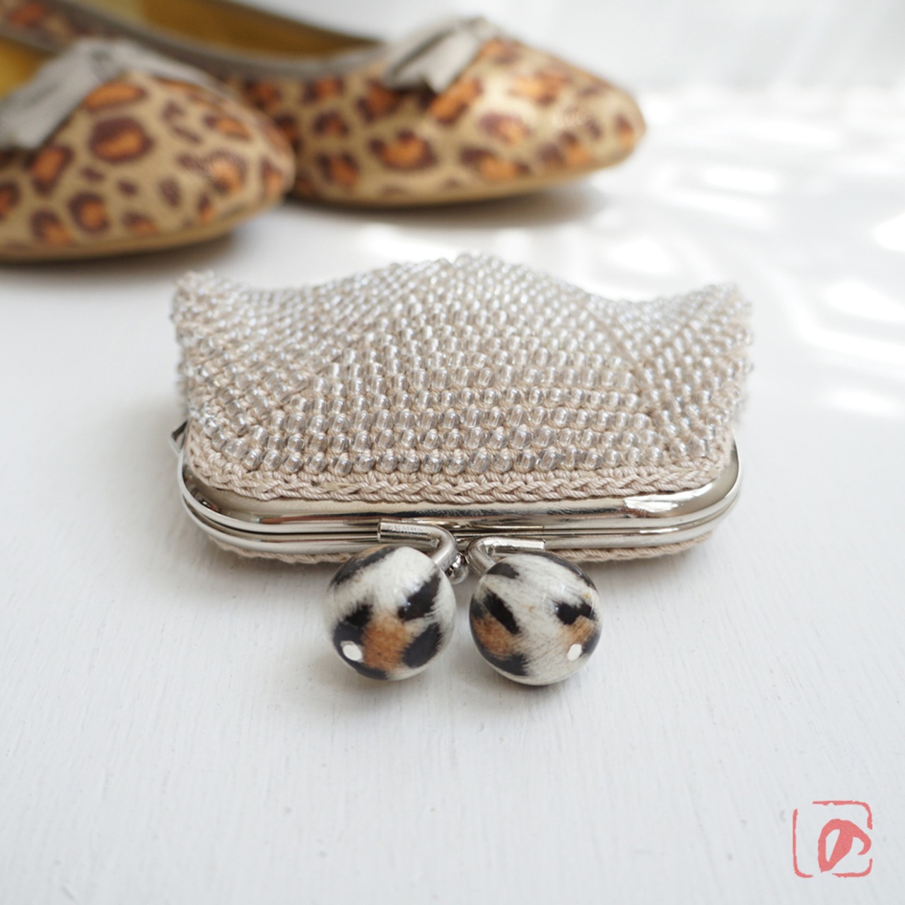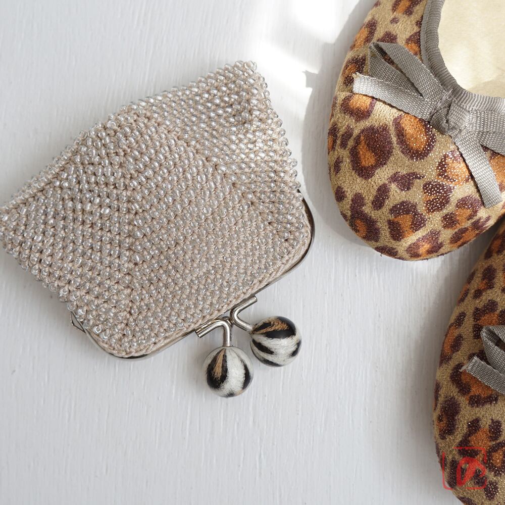 ばあば作☆☆総ガラスビーズのがま口(leopardi・1735)