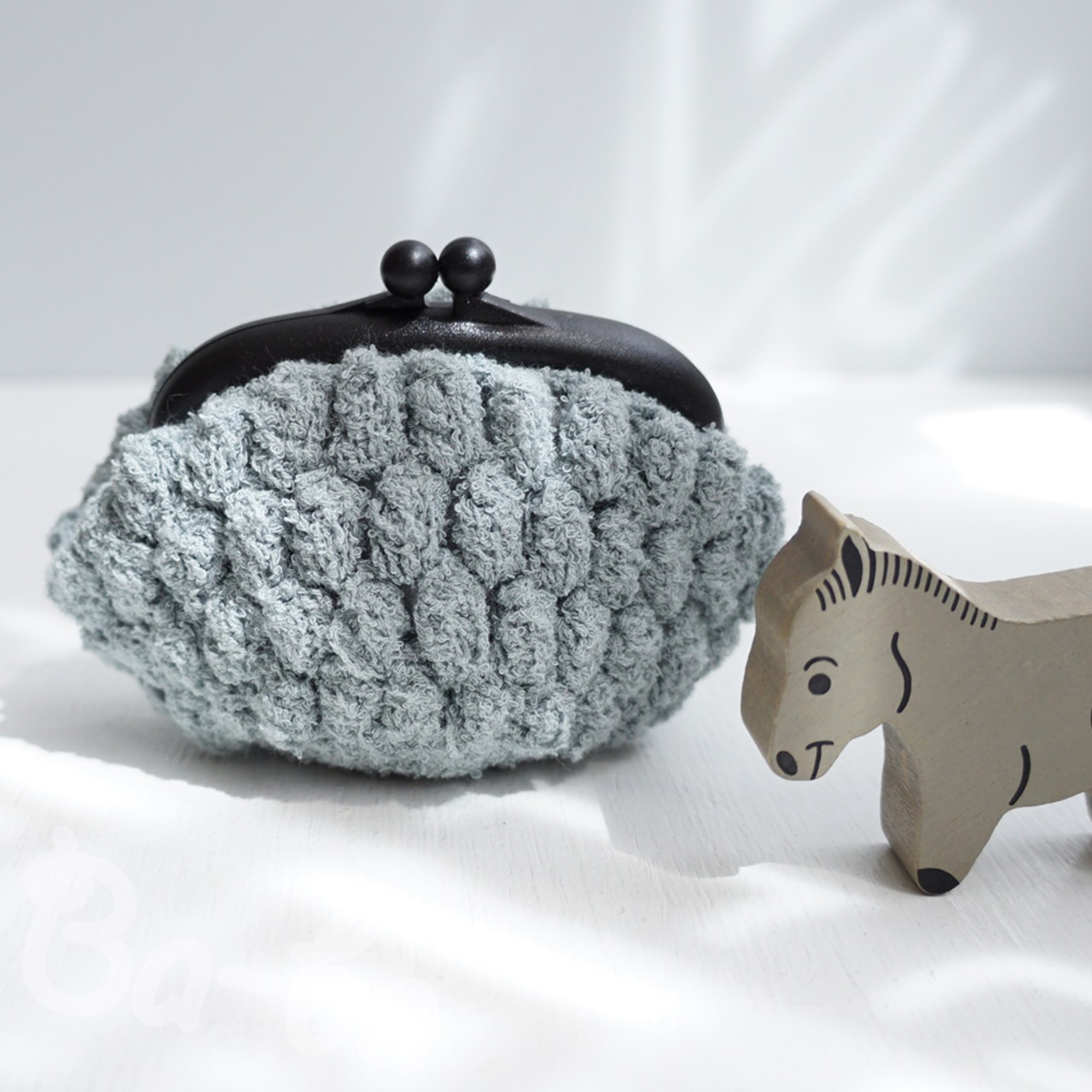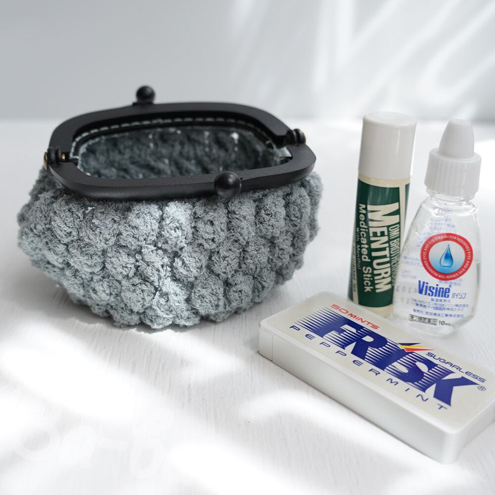 ばあば作、パプコーン編みのプラがま(gris nuage・C1583)