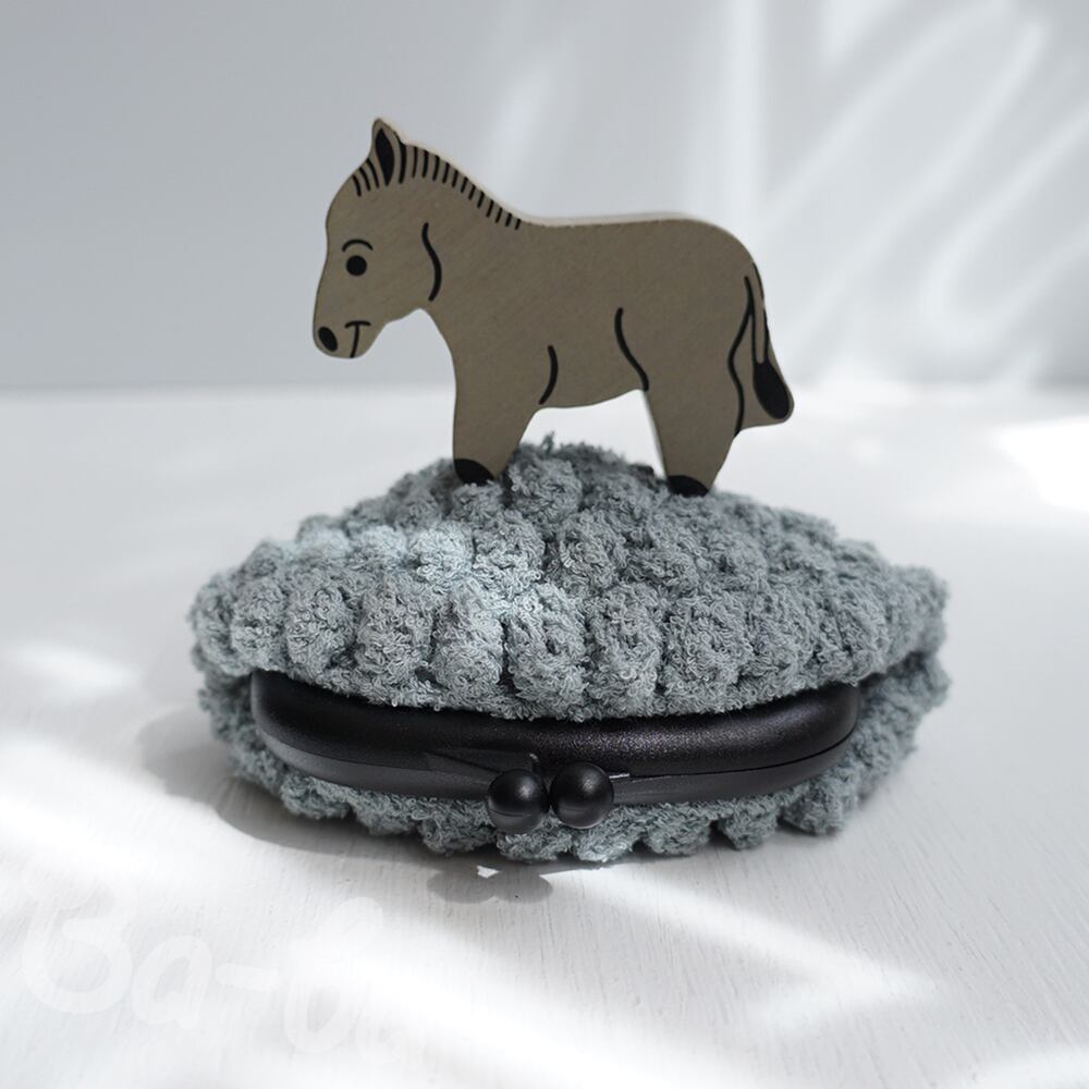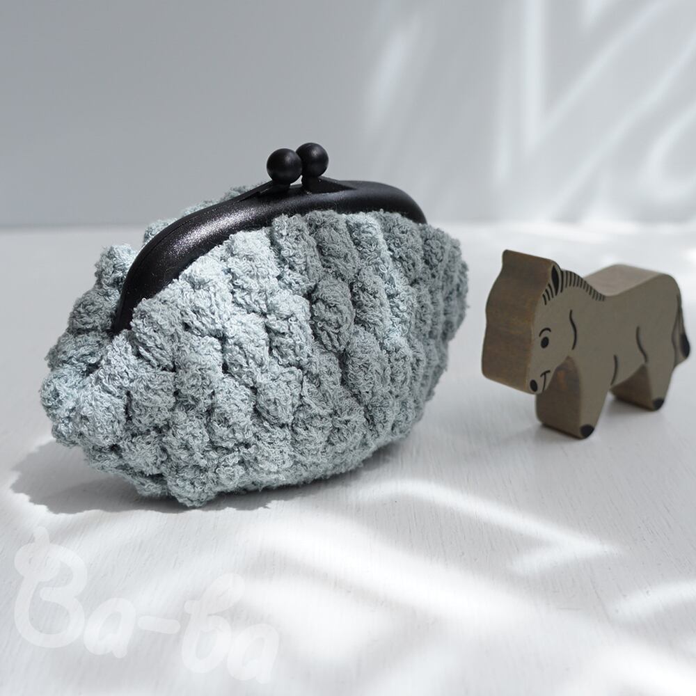 「パプコーン編み」の編み地をがま口に仕上げました。