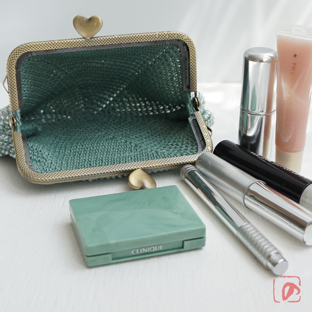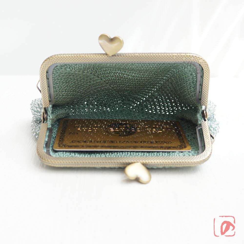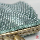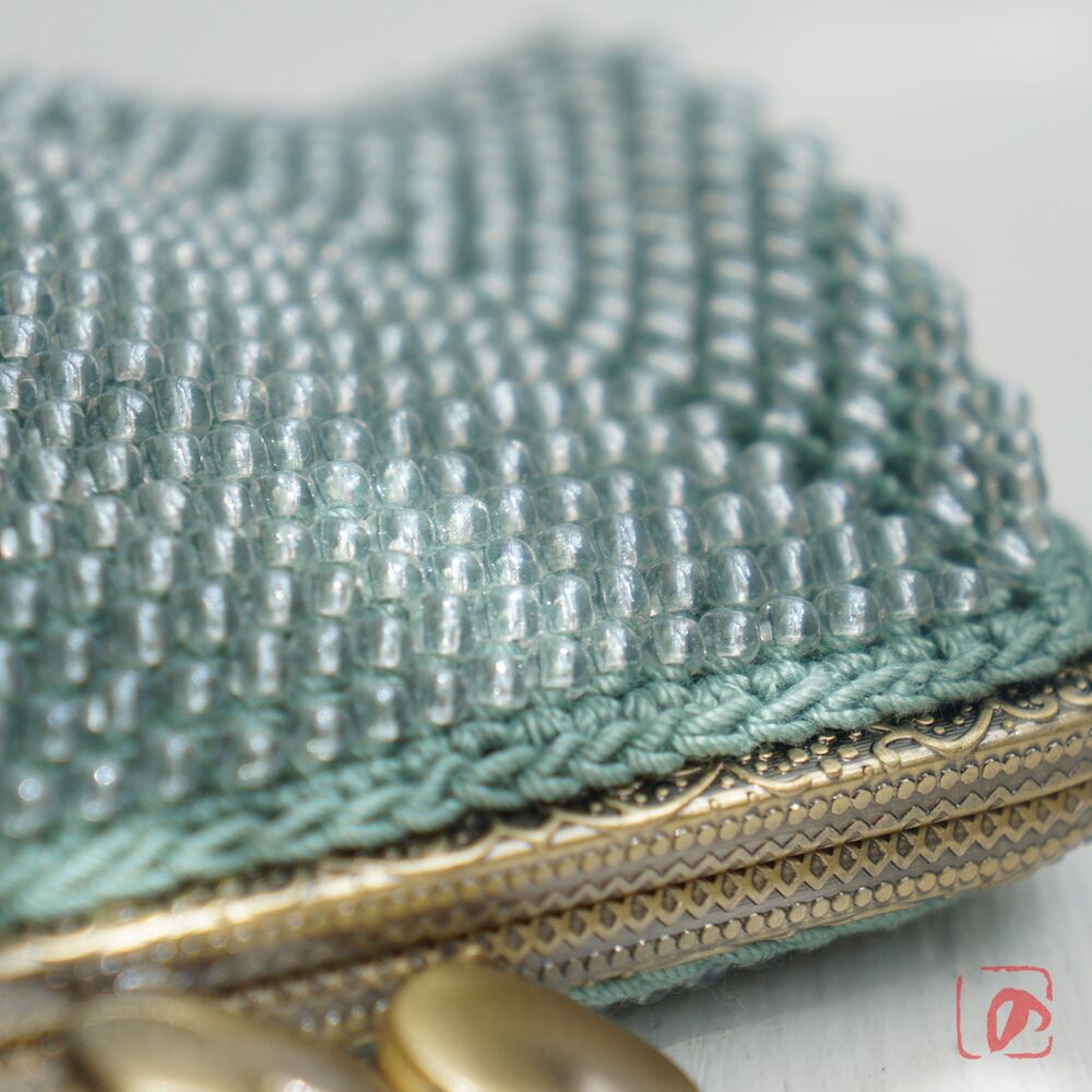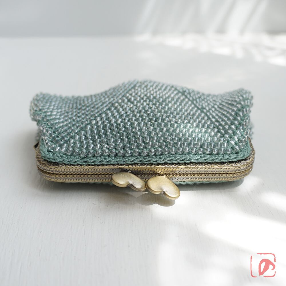 ばあば作☆大きめ・総ガラスビーズのスクエアがま口(Eucalyptus・1753)