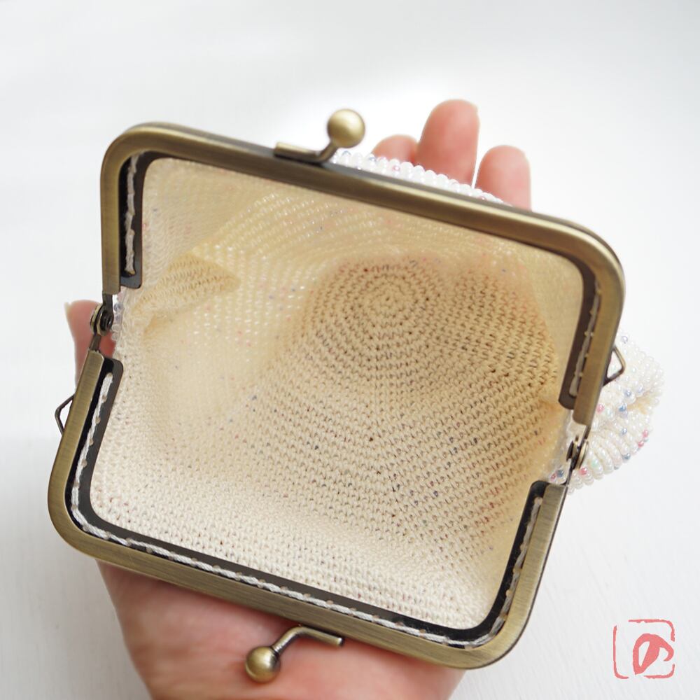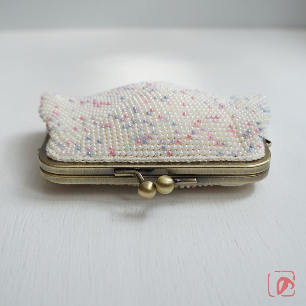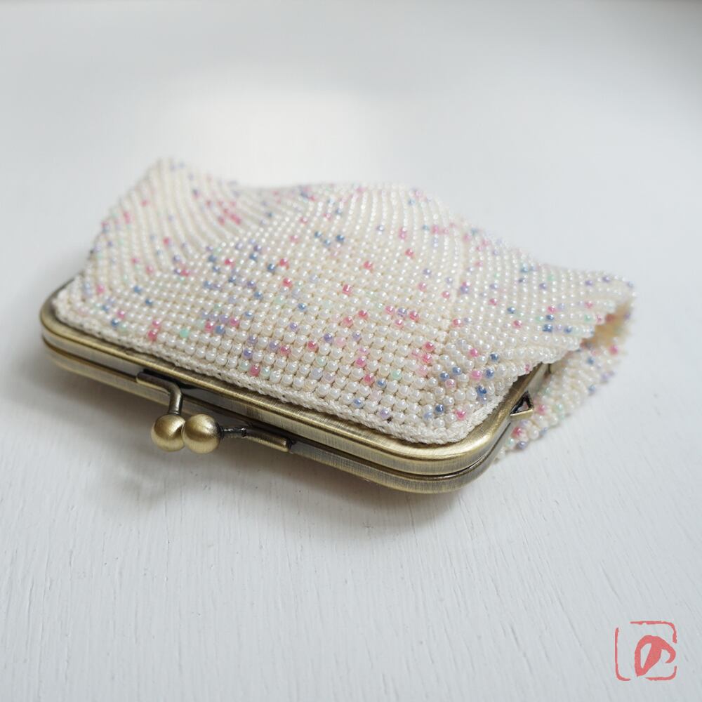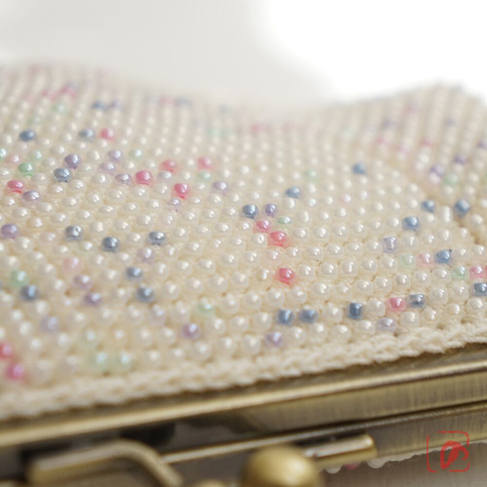 2mmのシードビーズをひとつぶづつ全面に編み込んだ、上質ながま口です。