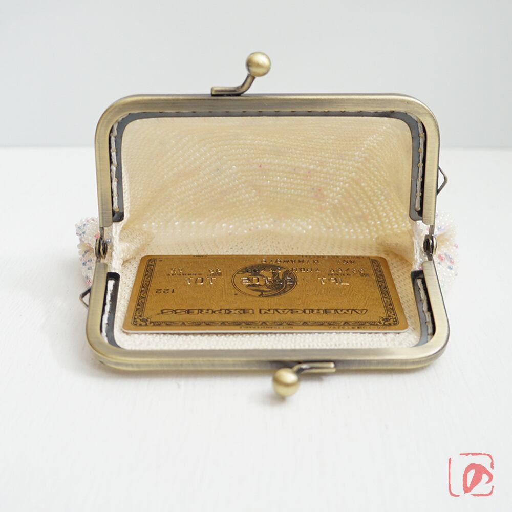 スクエアタイプは四角い小物の収納に適しており、10.5cm口金はカード入れにピッタリです。