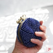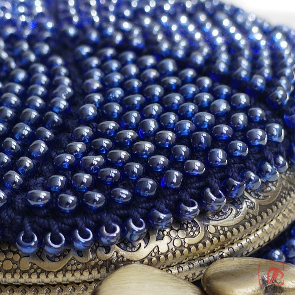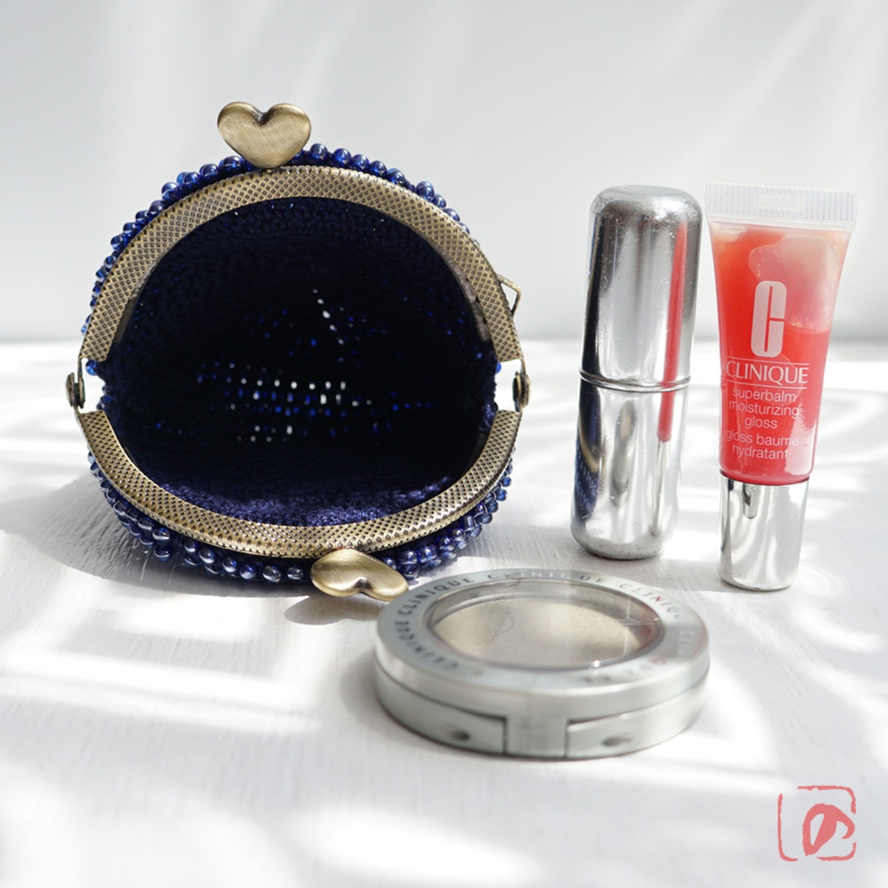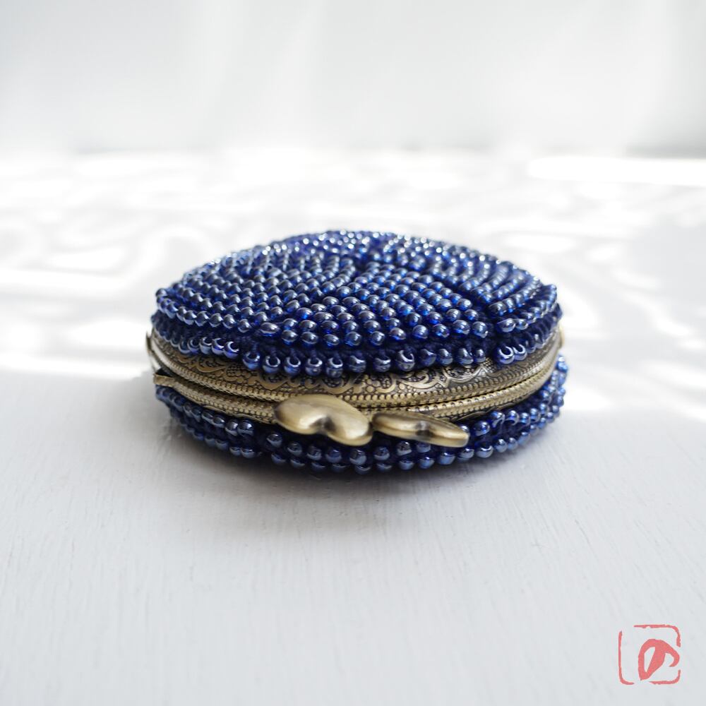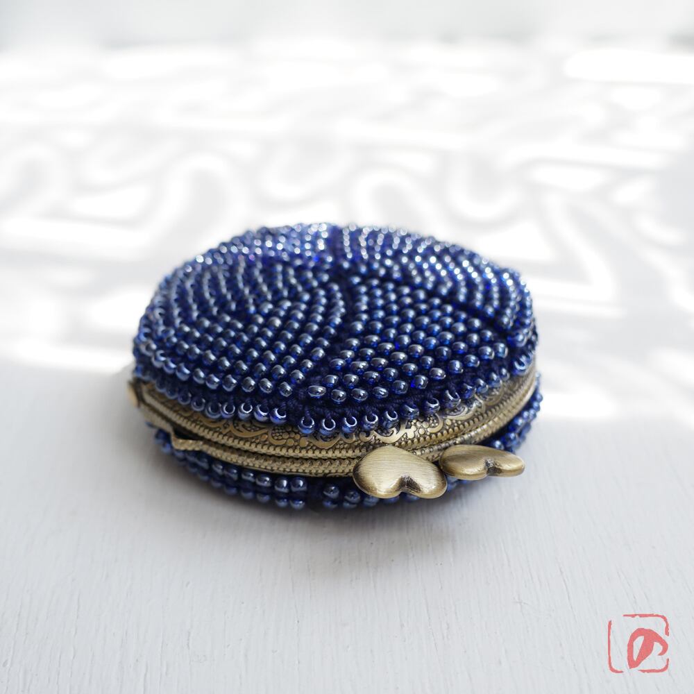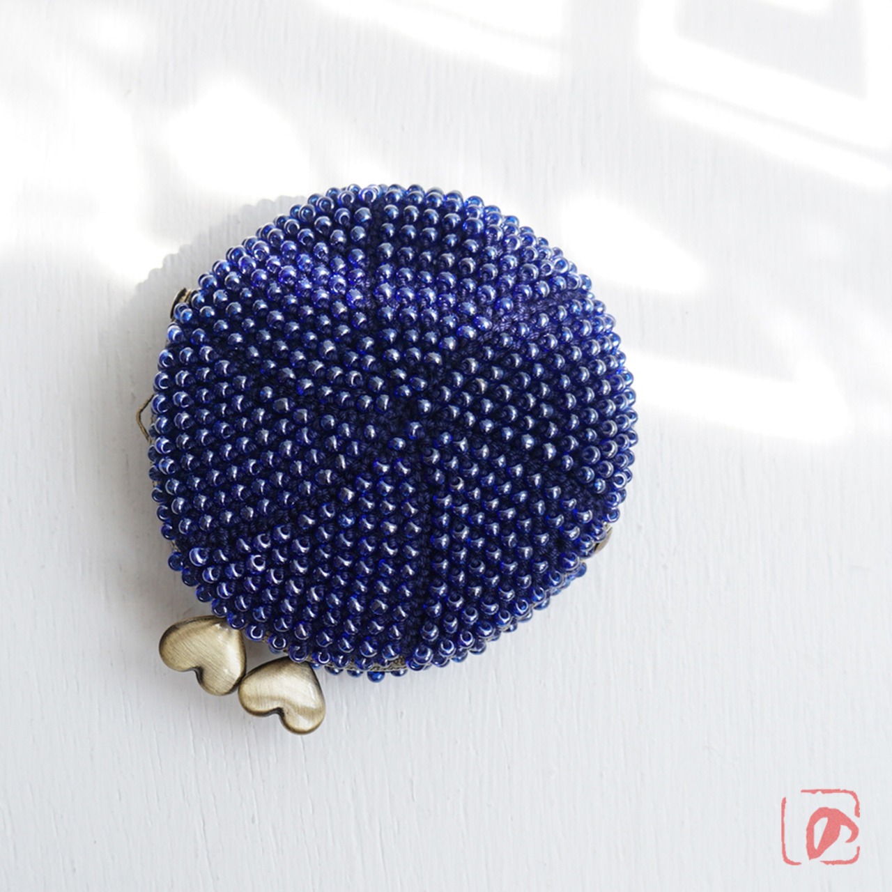 ばあば作 ♡ ガラスビーズのまんまるがま口(navy heart・1704)