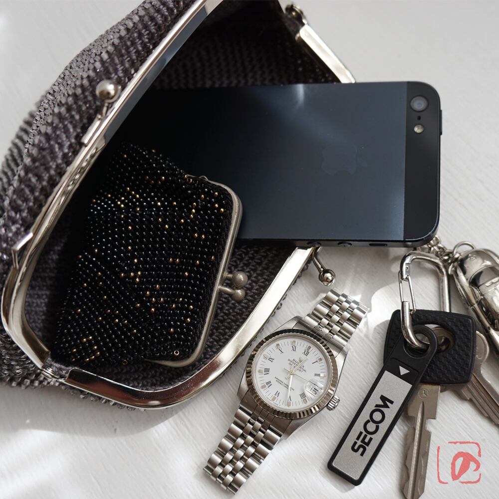 全面にアクリルビーズを編み込んでプチバッグを制作しました。