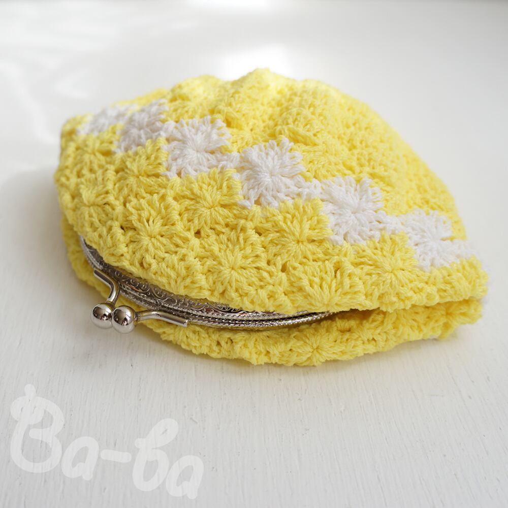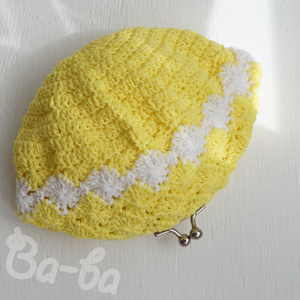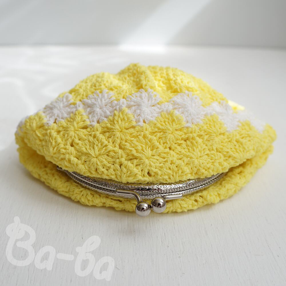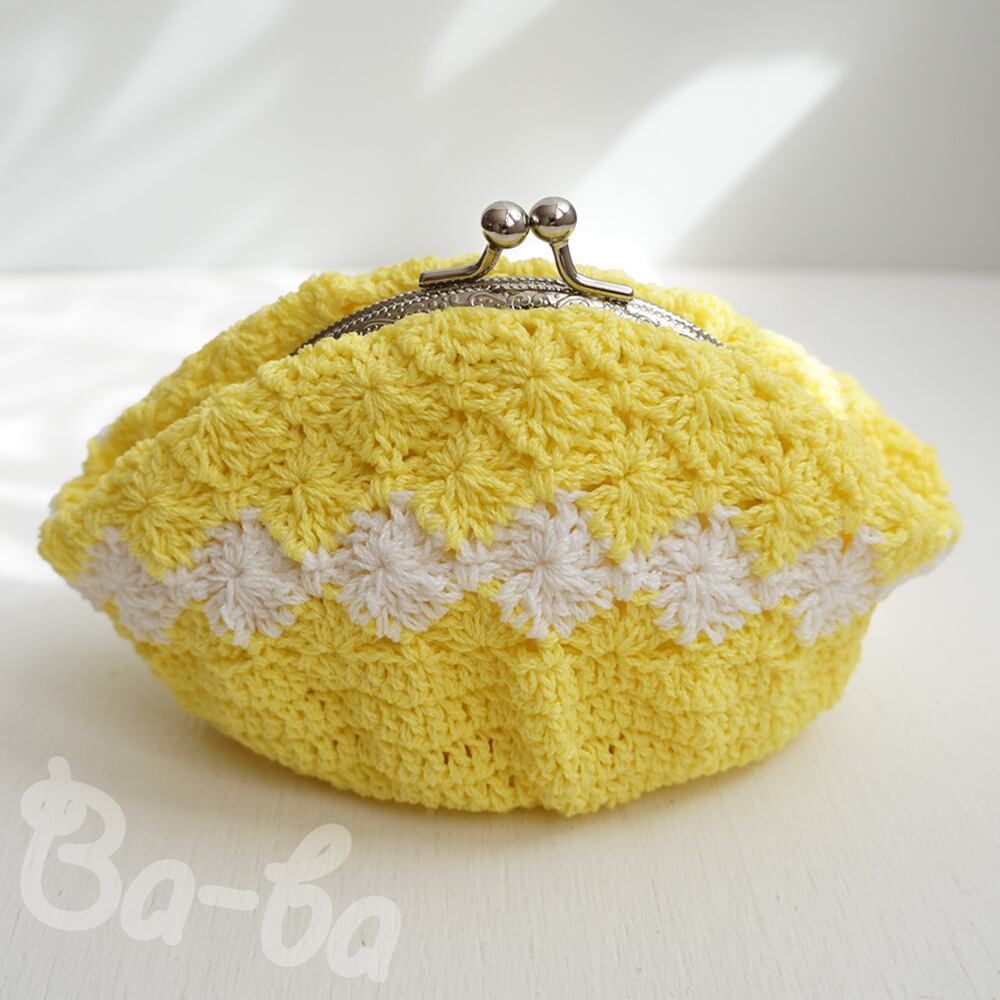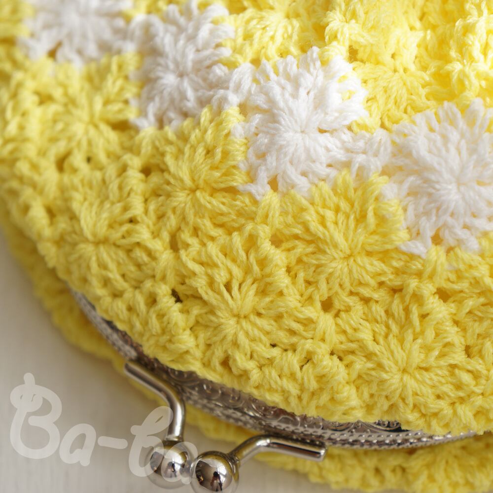 ばあば作、大きめ・模様編みのたっぷりがま口(Eureka・C1612)