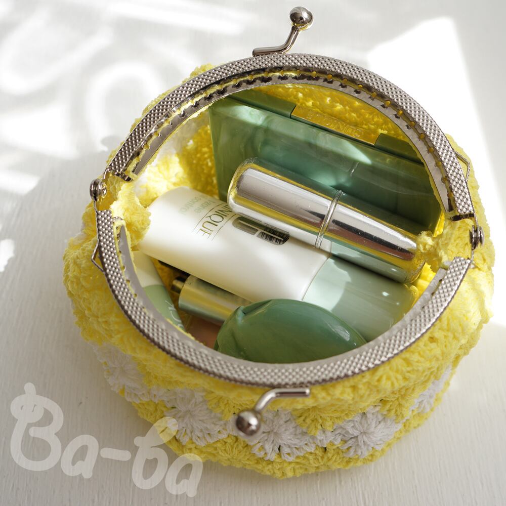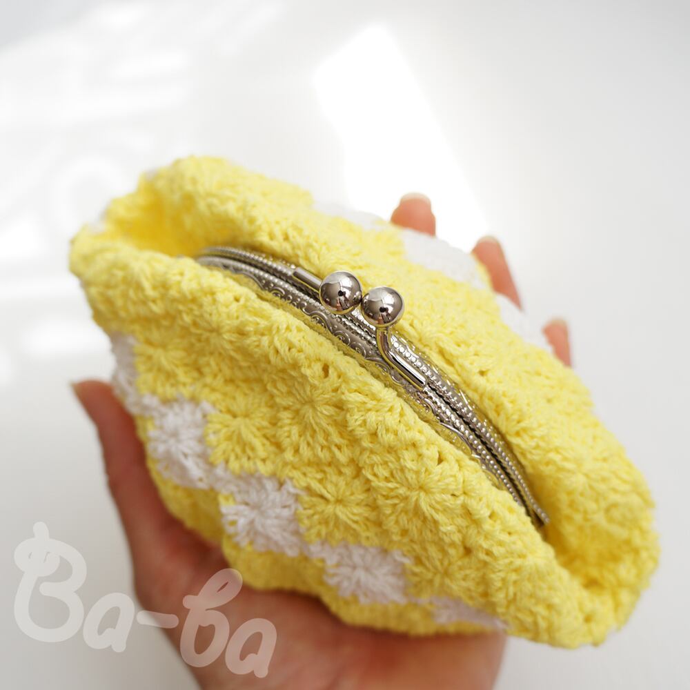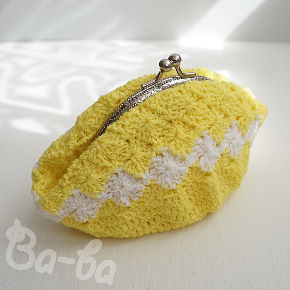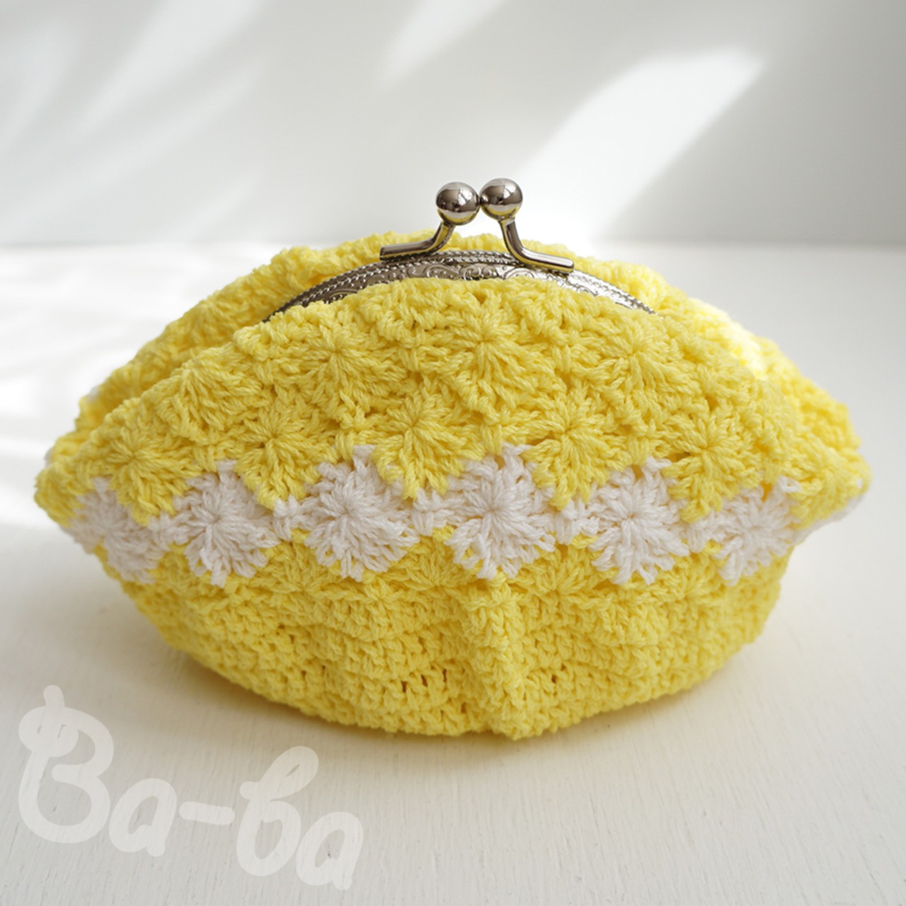 ばあば作、大きめ・模様編みのたっぷりがま口(Eureka・C1612)