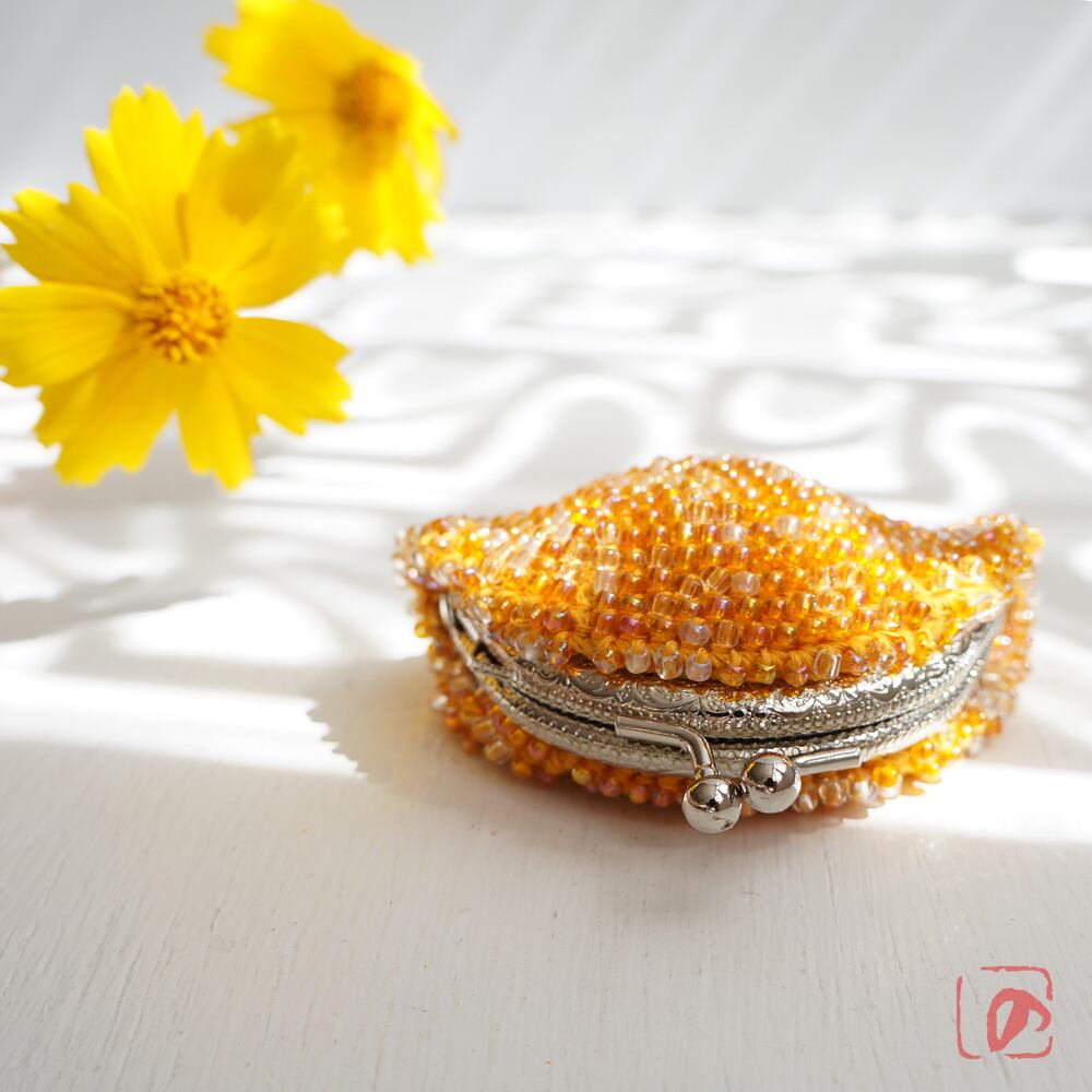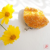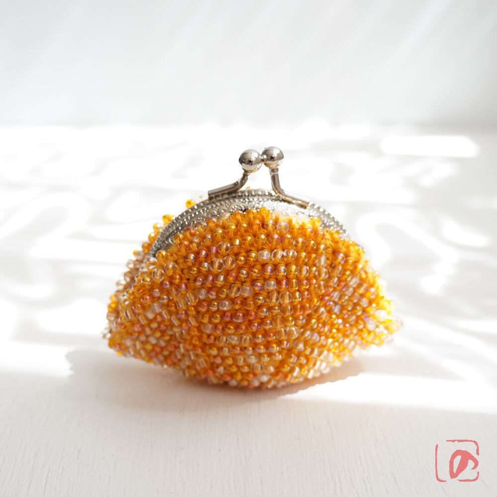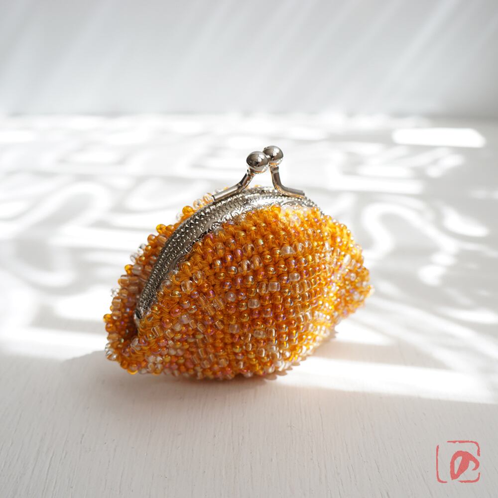 ばあば作、総ガラスビーズのがま口(Fuzzy navel・1716)