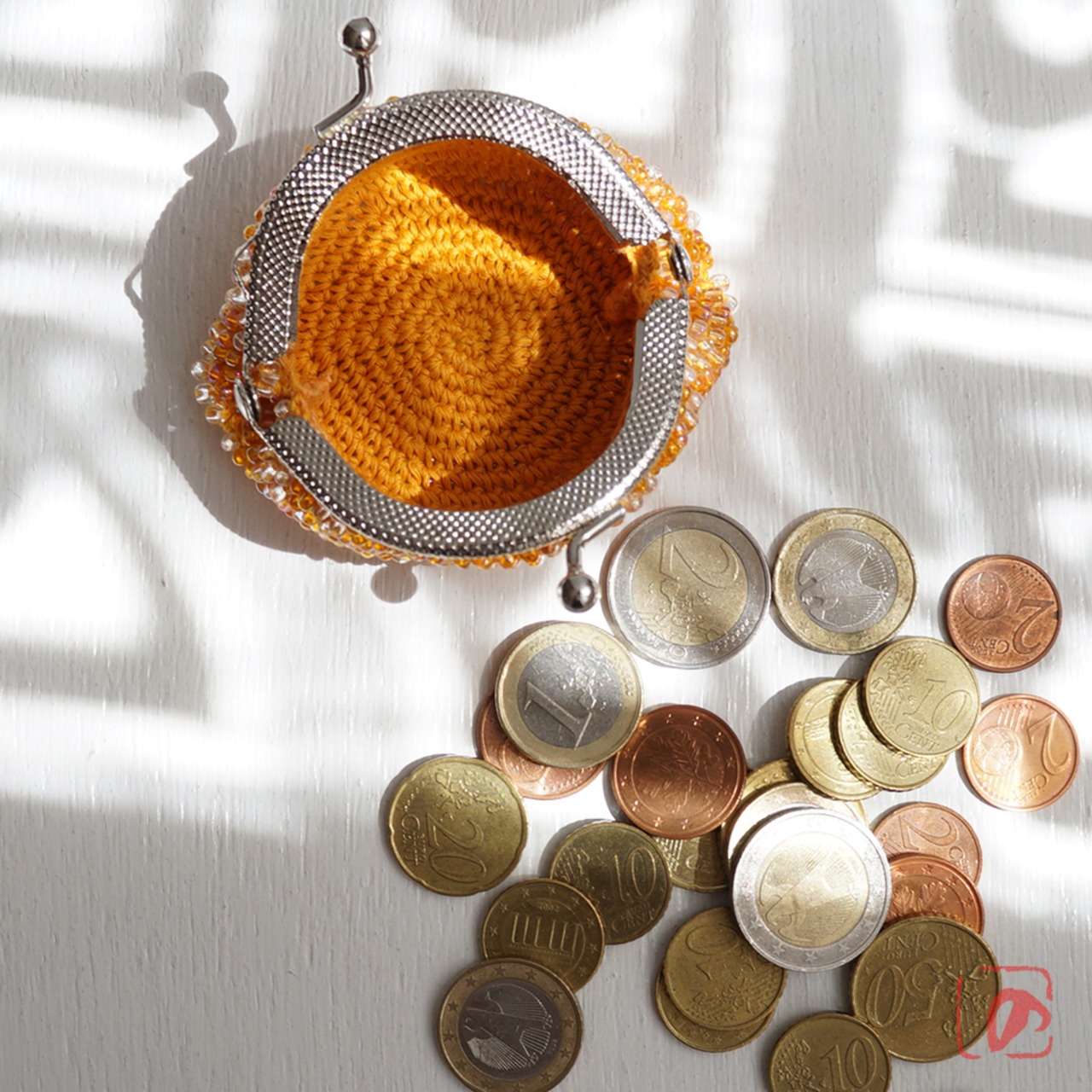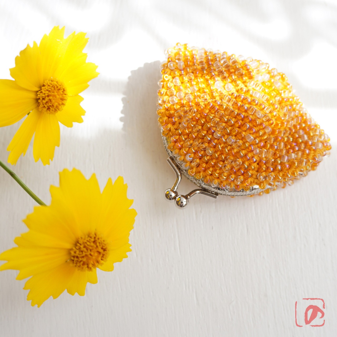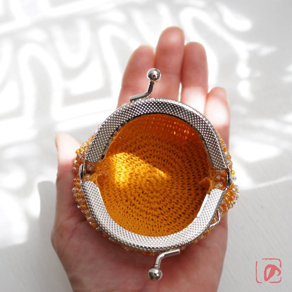 ばあば作、総ガラスビーズのがま口(Fuzzy navel・1716)