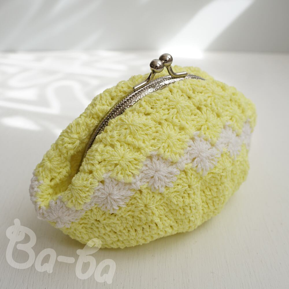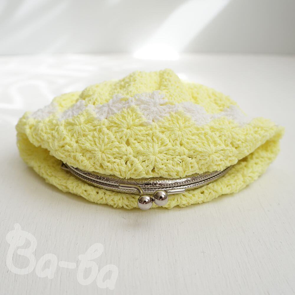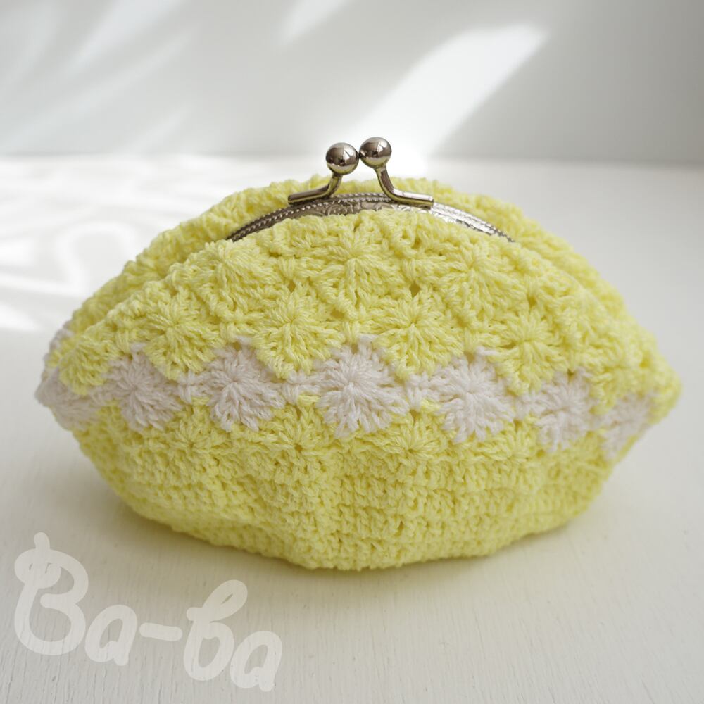 ばあば作、大きめ・模様編みのたっぷりがま口(Lisbon・C1613)