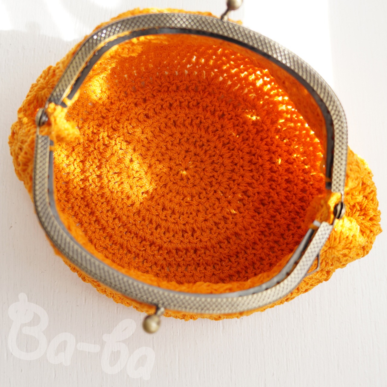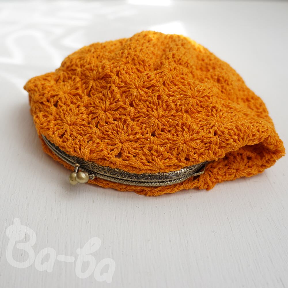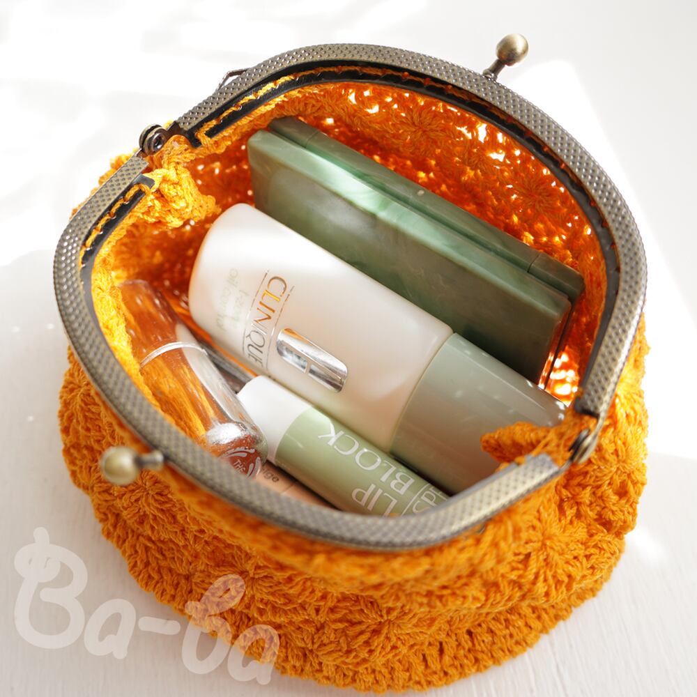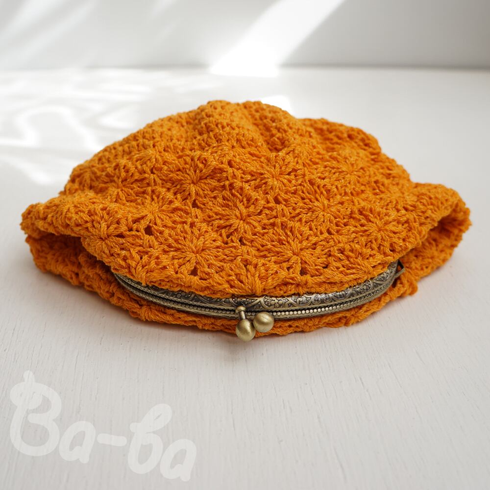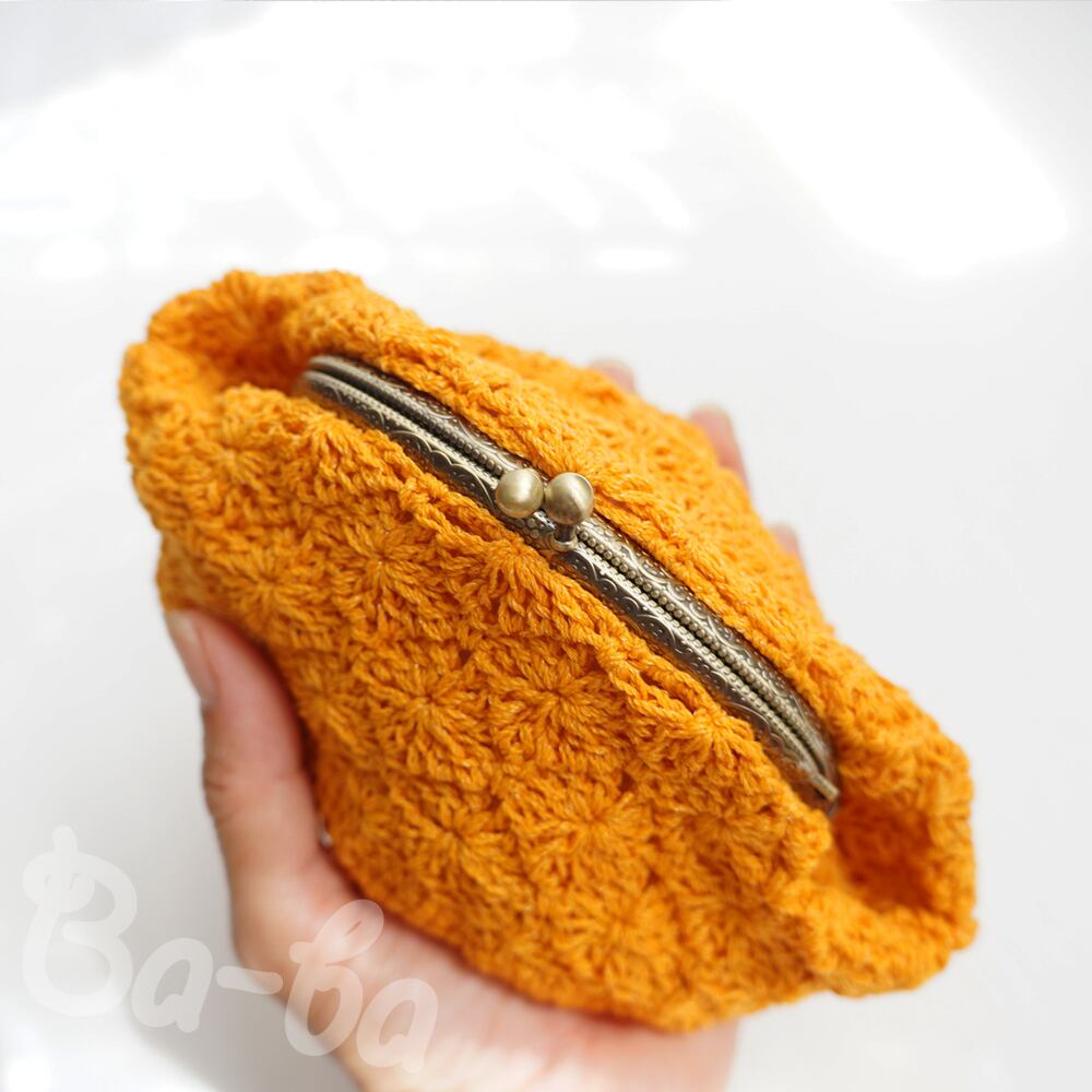ばあば作、大きめ・模様編みのたっぷりがま口(Navel・C1611)