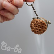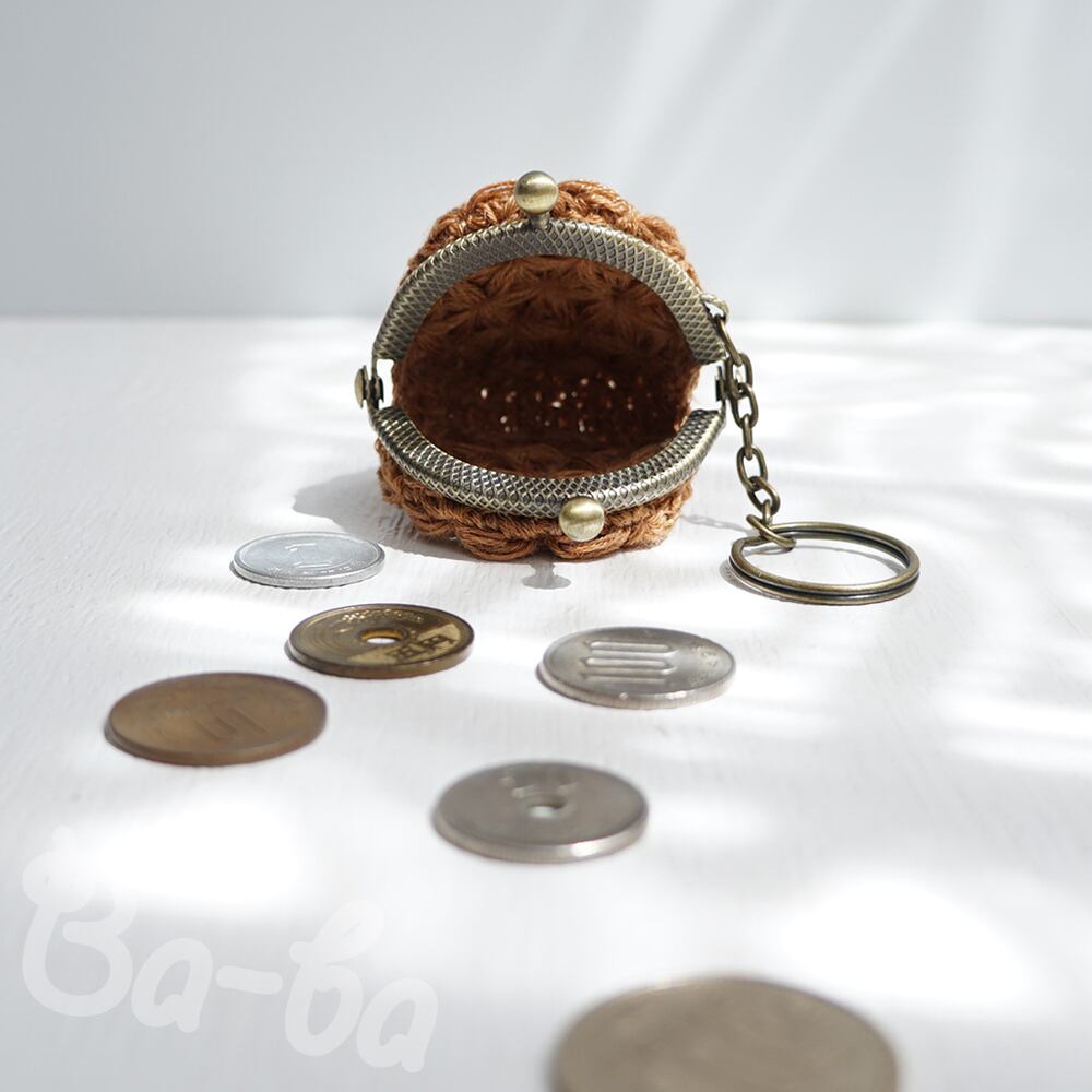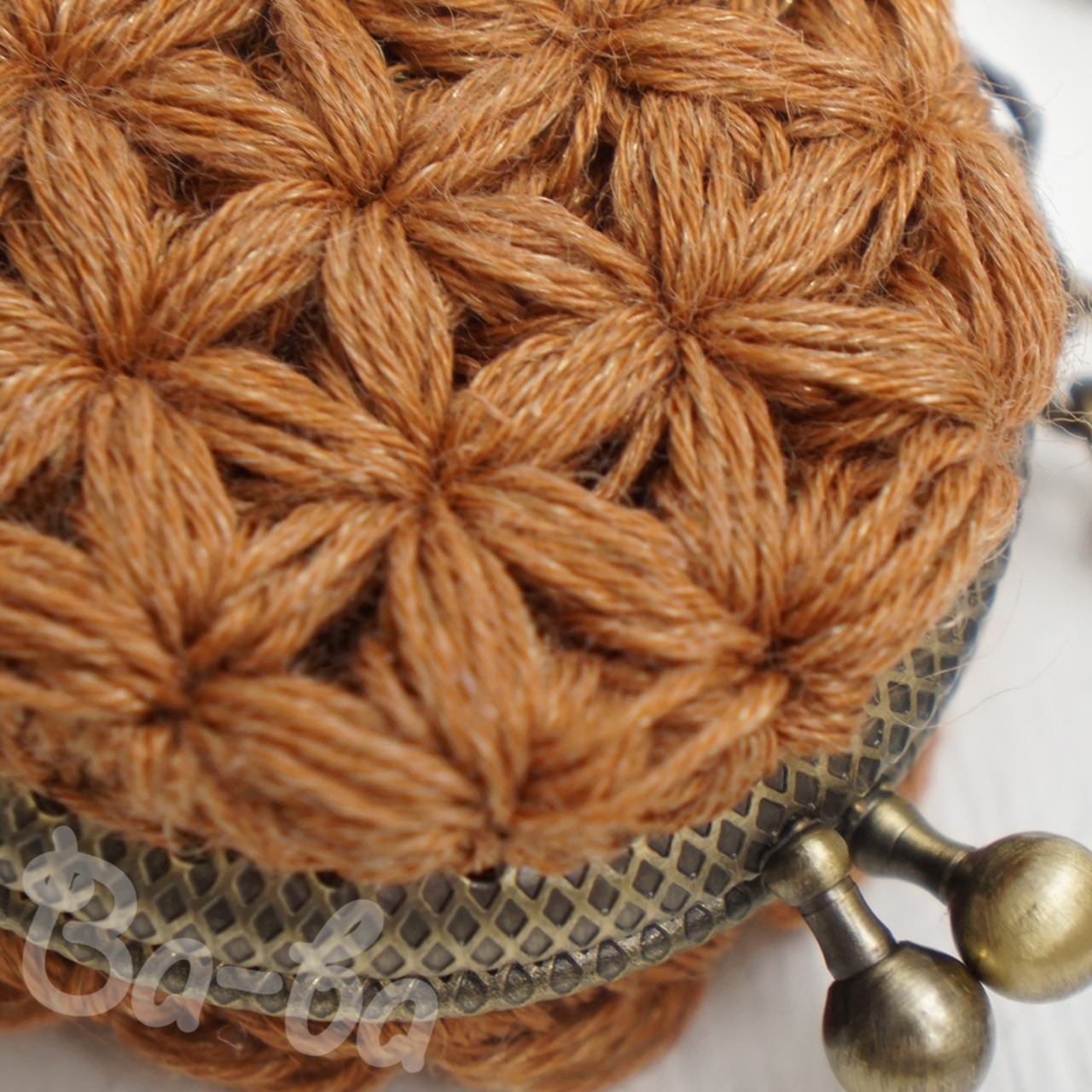 ココア色のサマーヤーンで、ふんわりリフ編みのがま口を作りました。