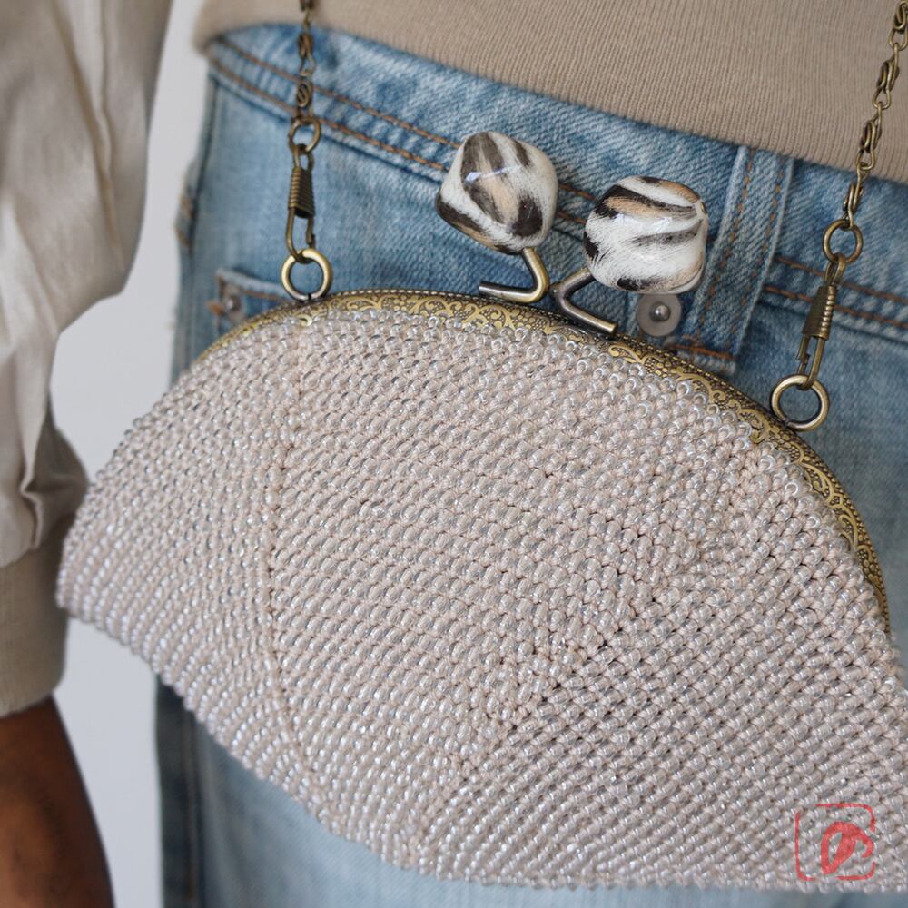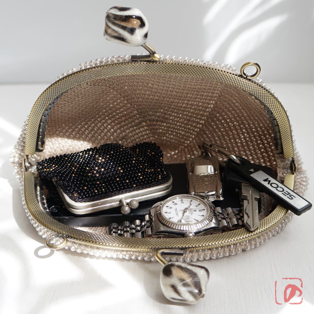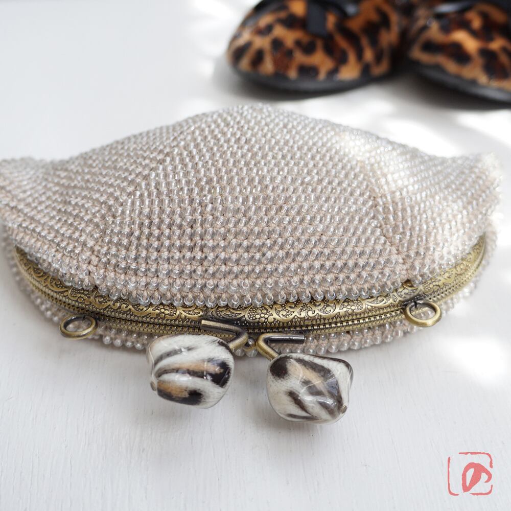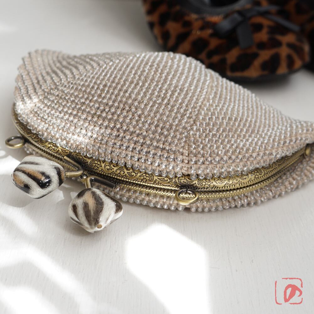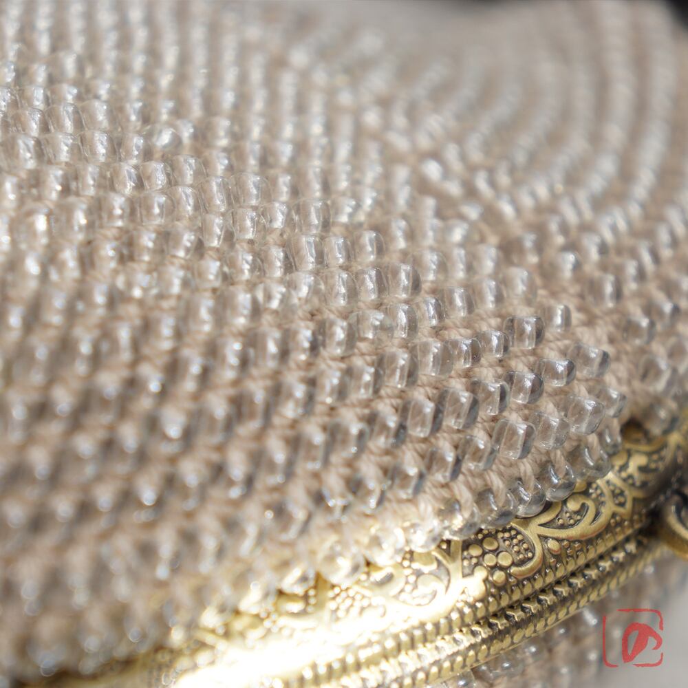 全面に3mmガラスビーズを編み込んでプチバッグを制作しました。
