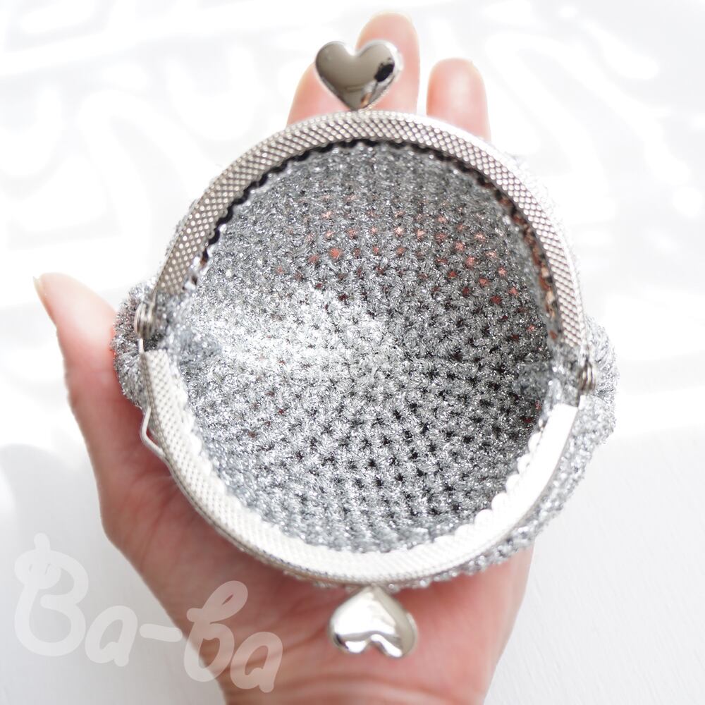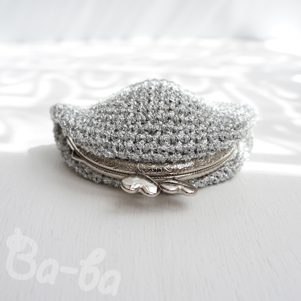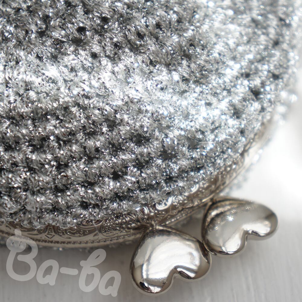 シルバーのフランス製糸の編み地に同じくシルバーの口金合わせた、キラキラのがま口です。
