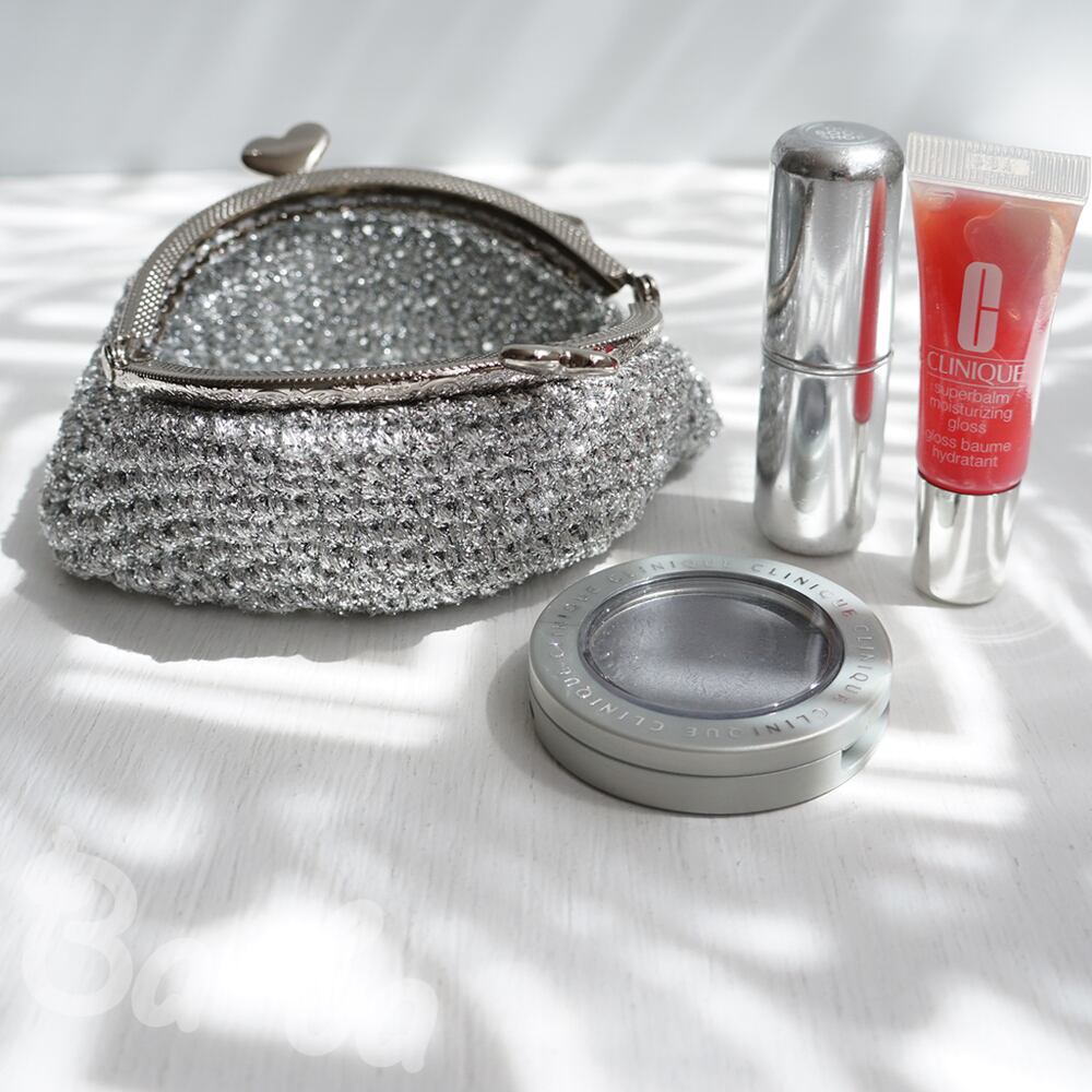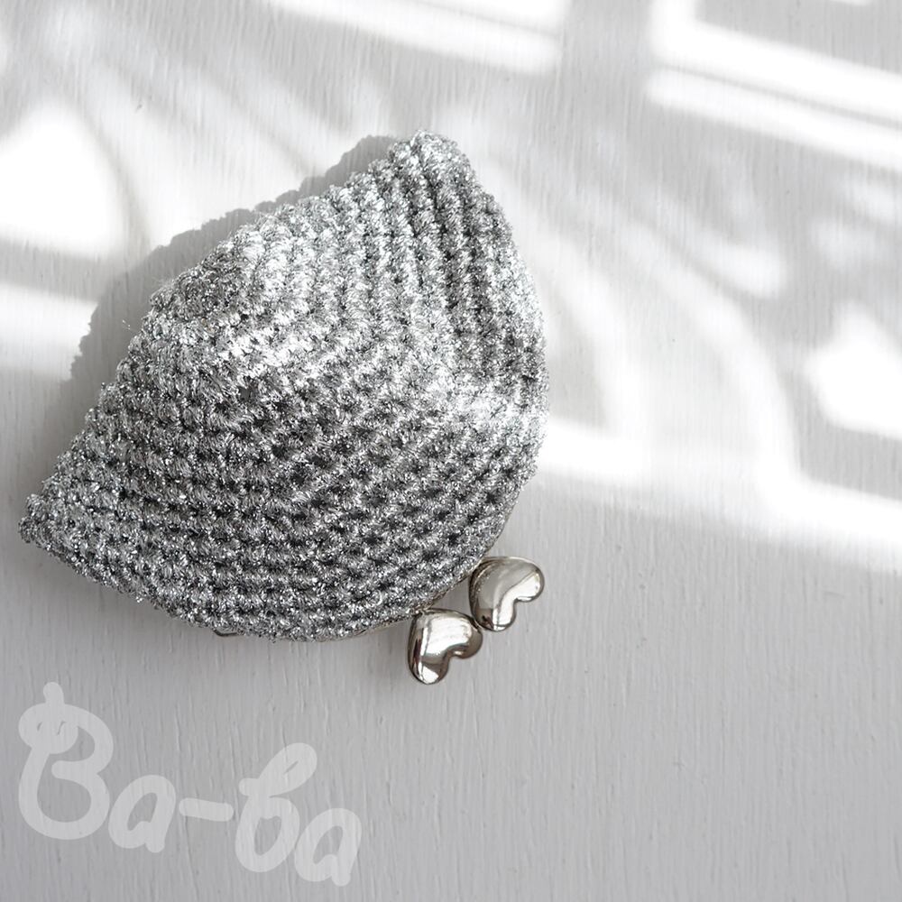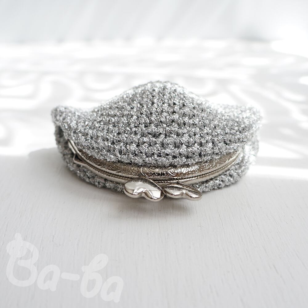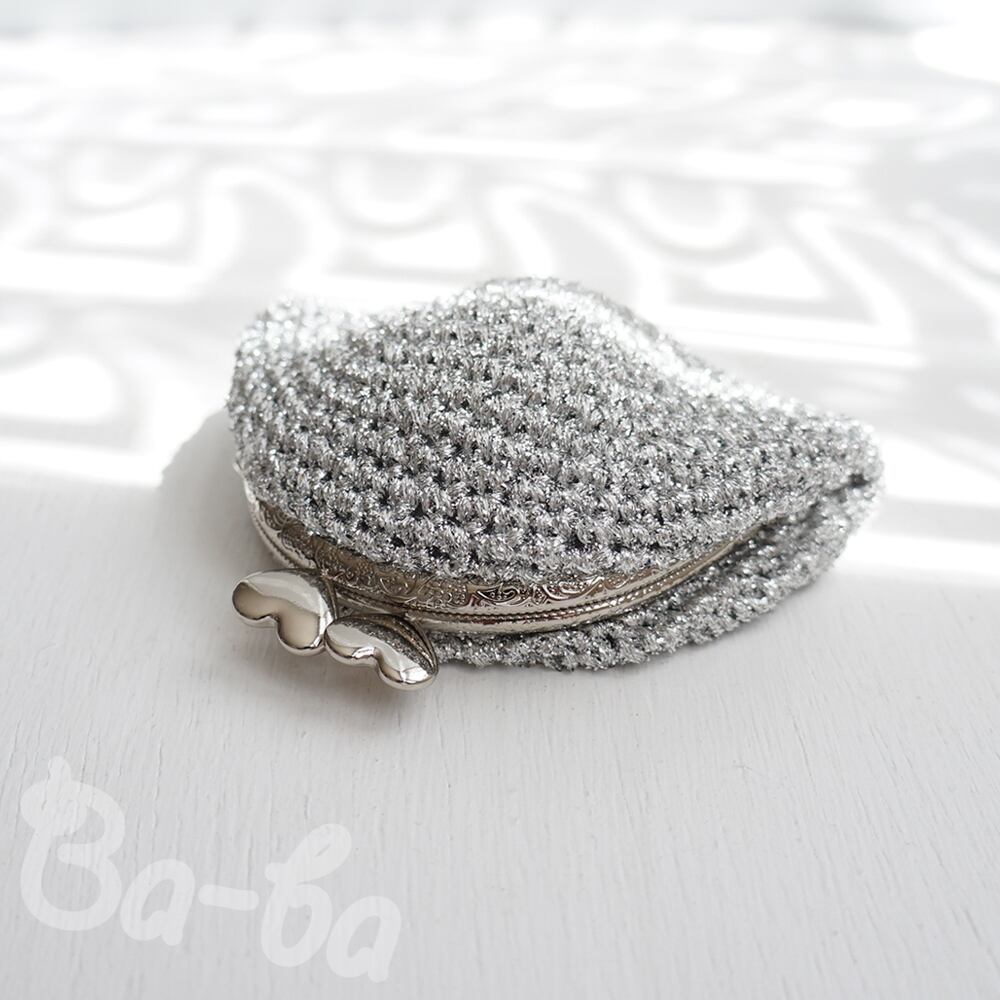シルバーのフランス製糸の編み地に同じくシルバーの口金合わせた、キラキラのがま口です。