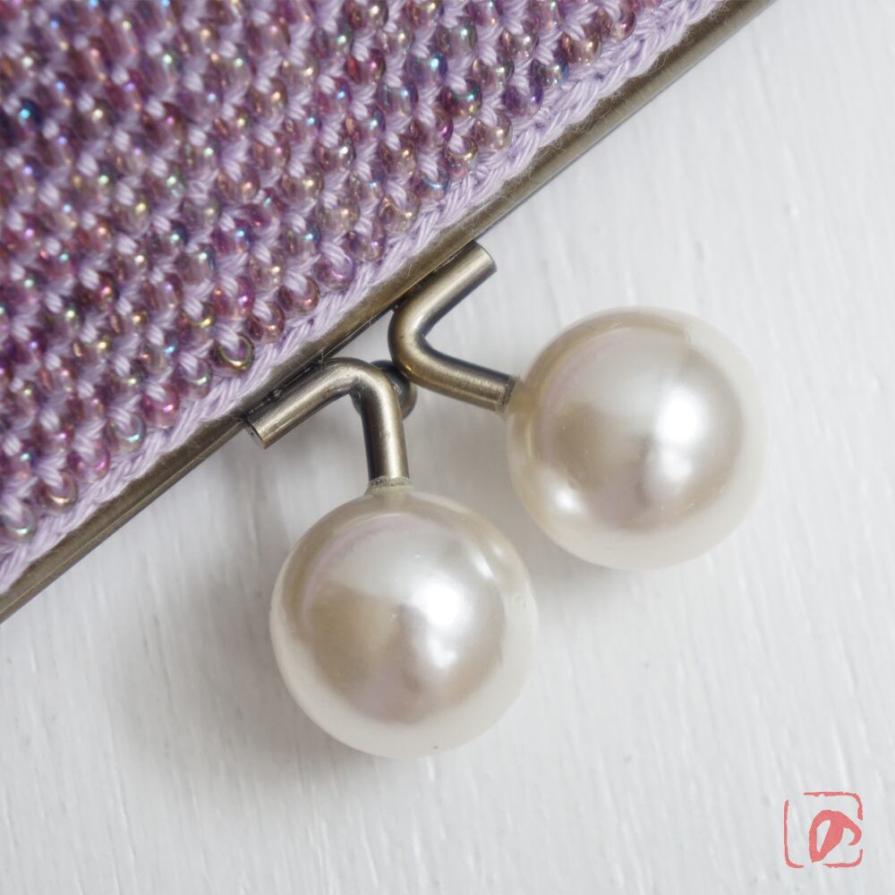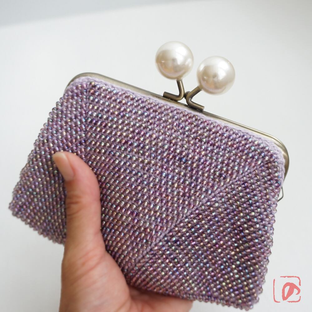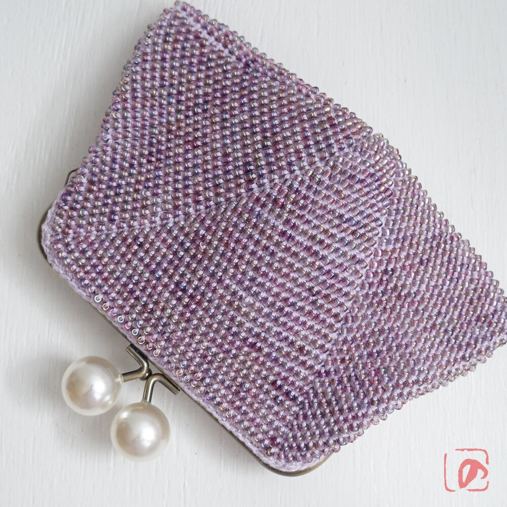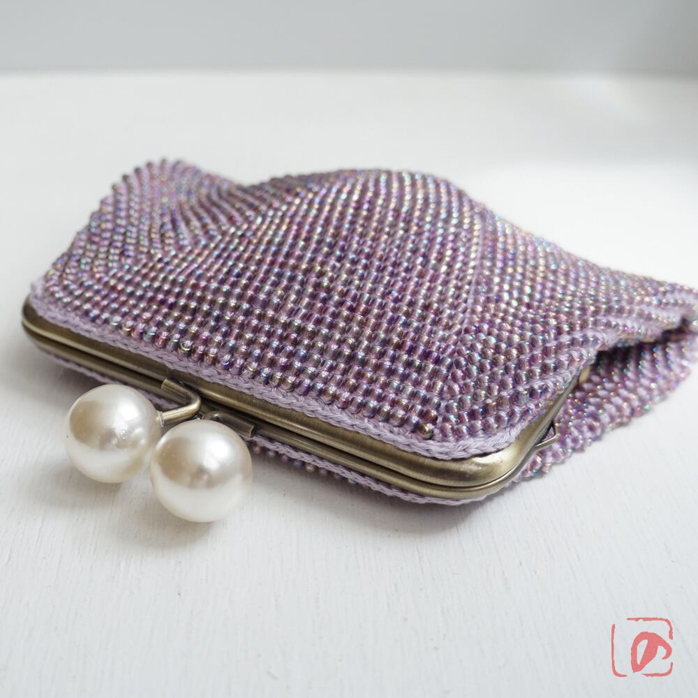 薄い紫の糸の色にビーズが調和し、美しい編み地になりました。