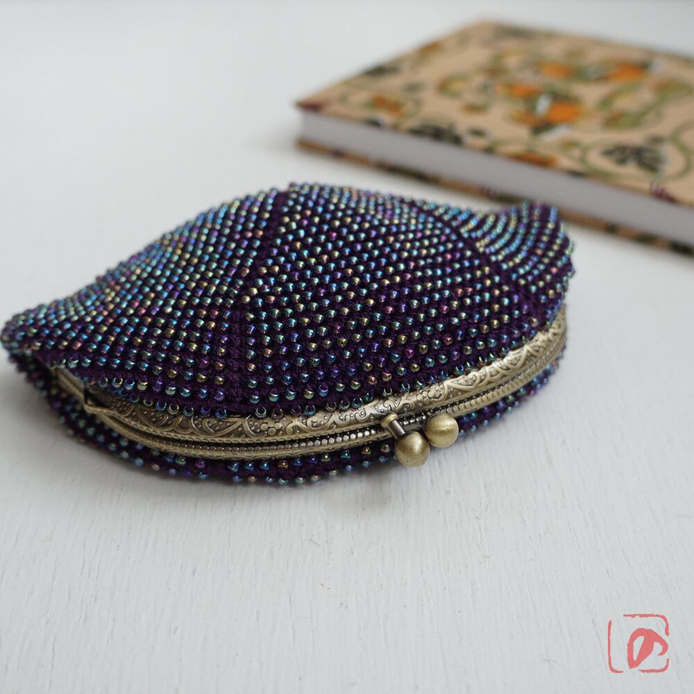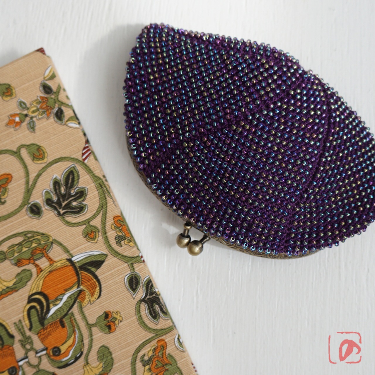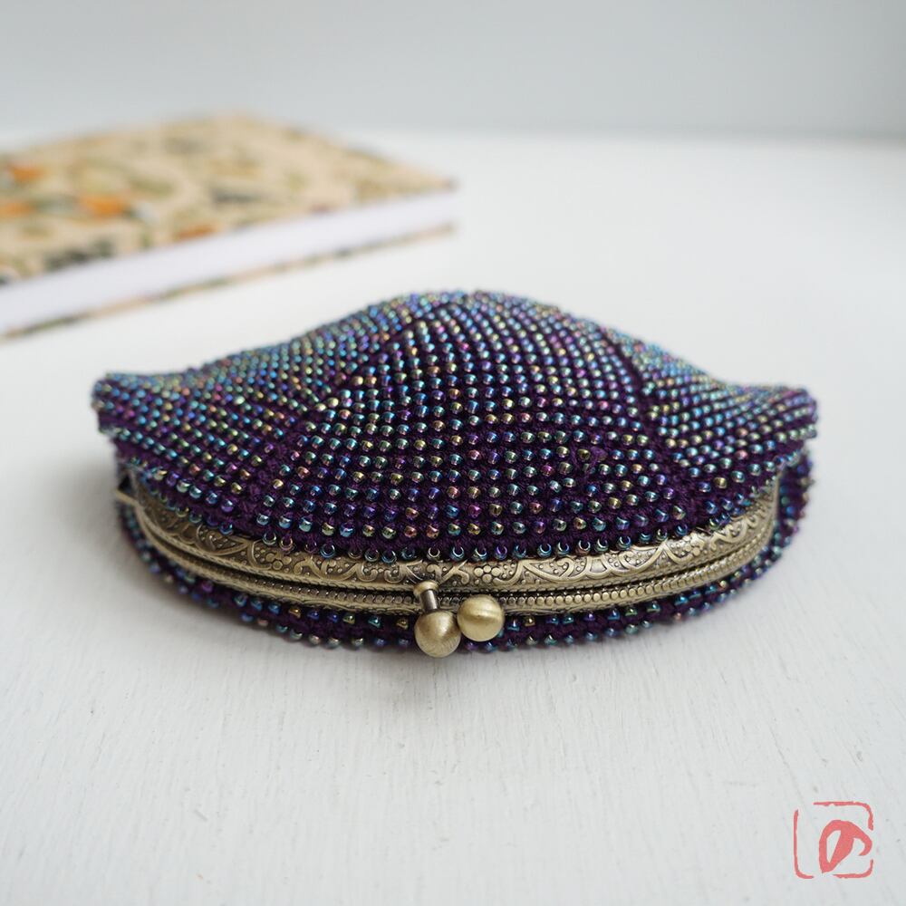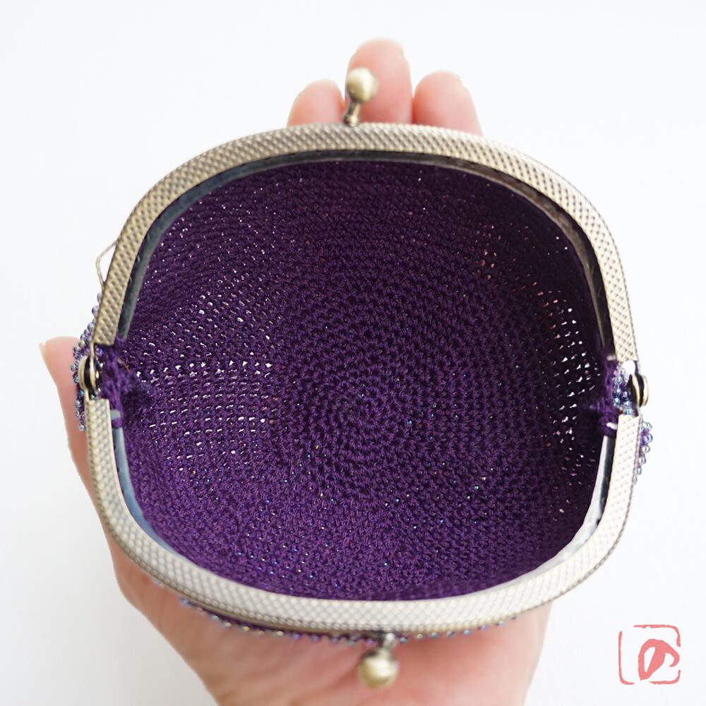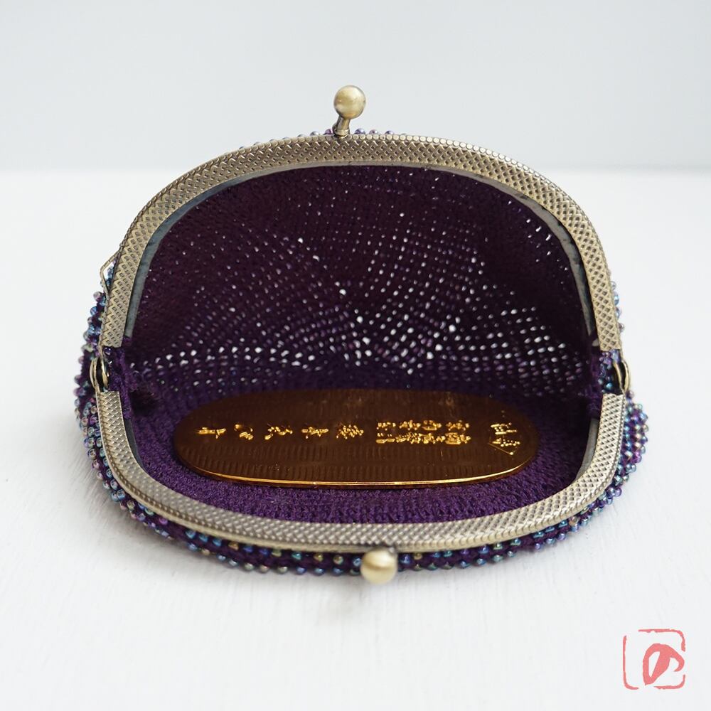 ばあば作☆シードビーズの大きめがま口(紫玉・1740)