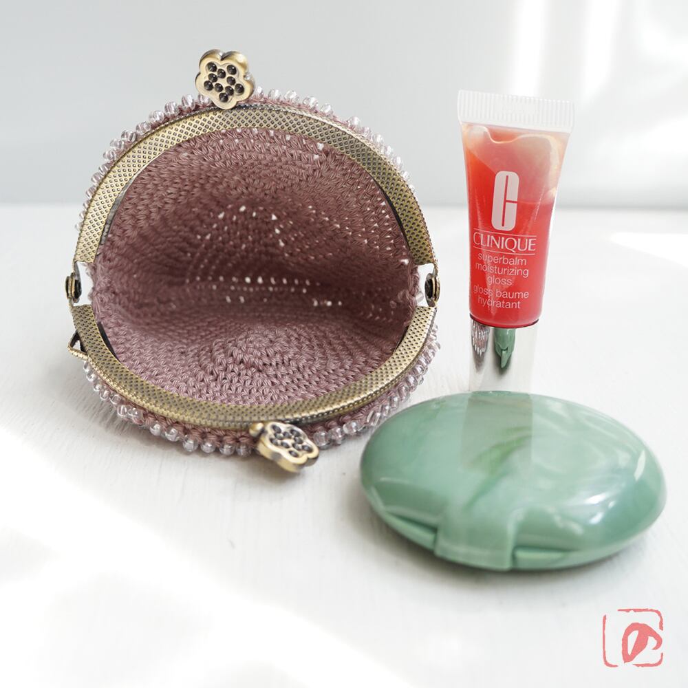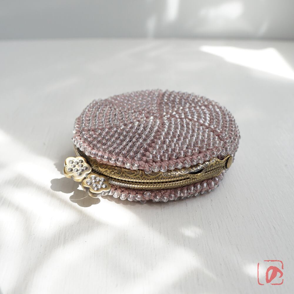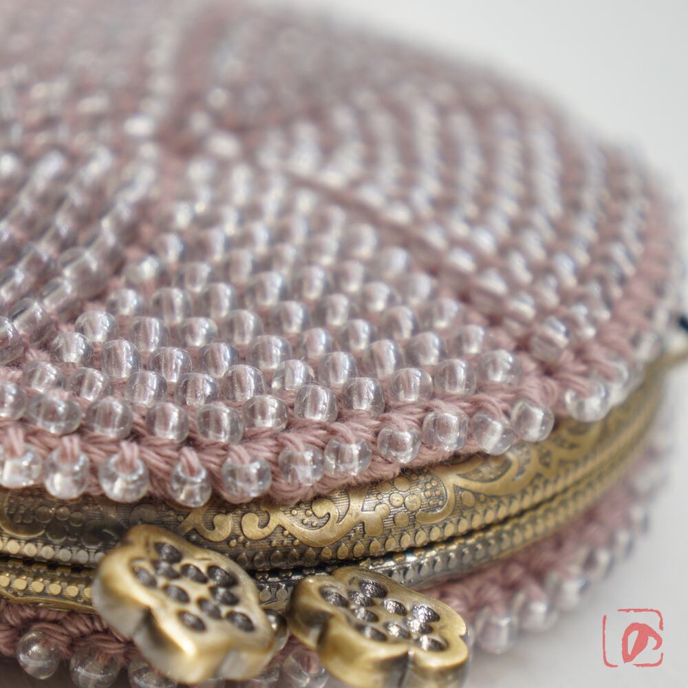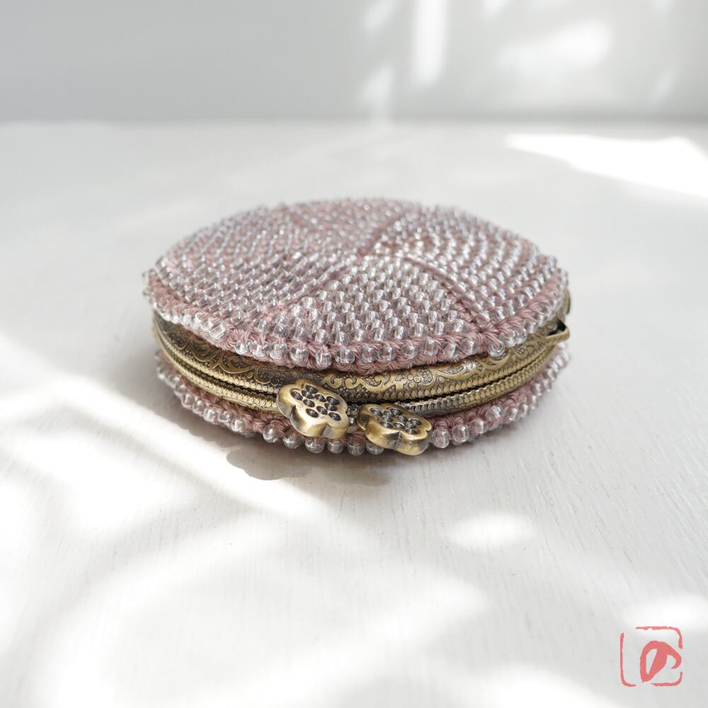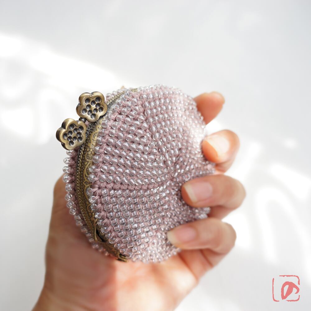ばあば作 ♡ ガラスビーズのまんまるがま口 (latté pink・1768)