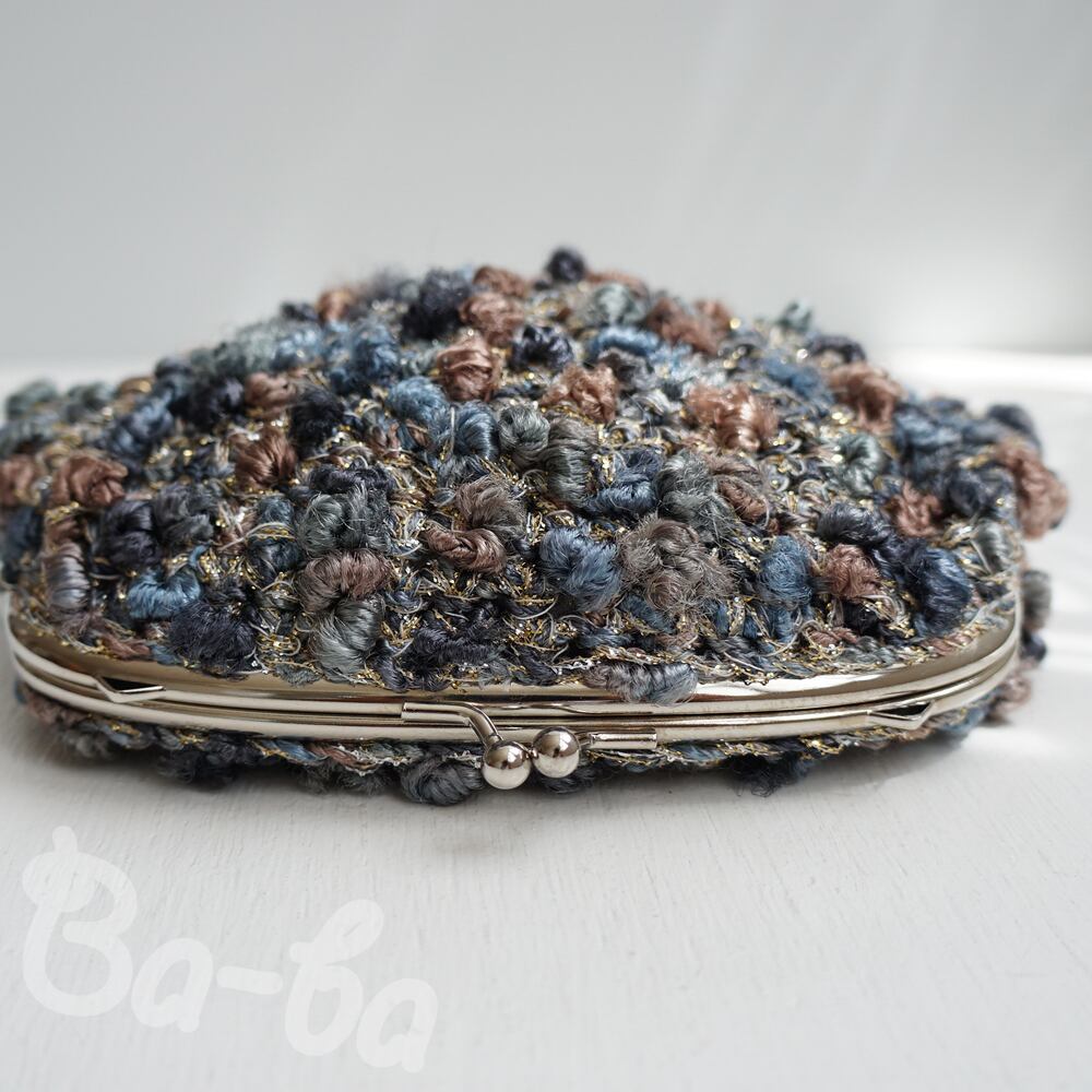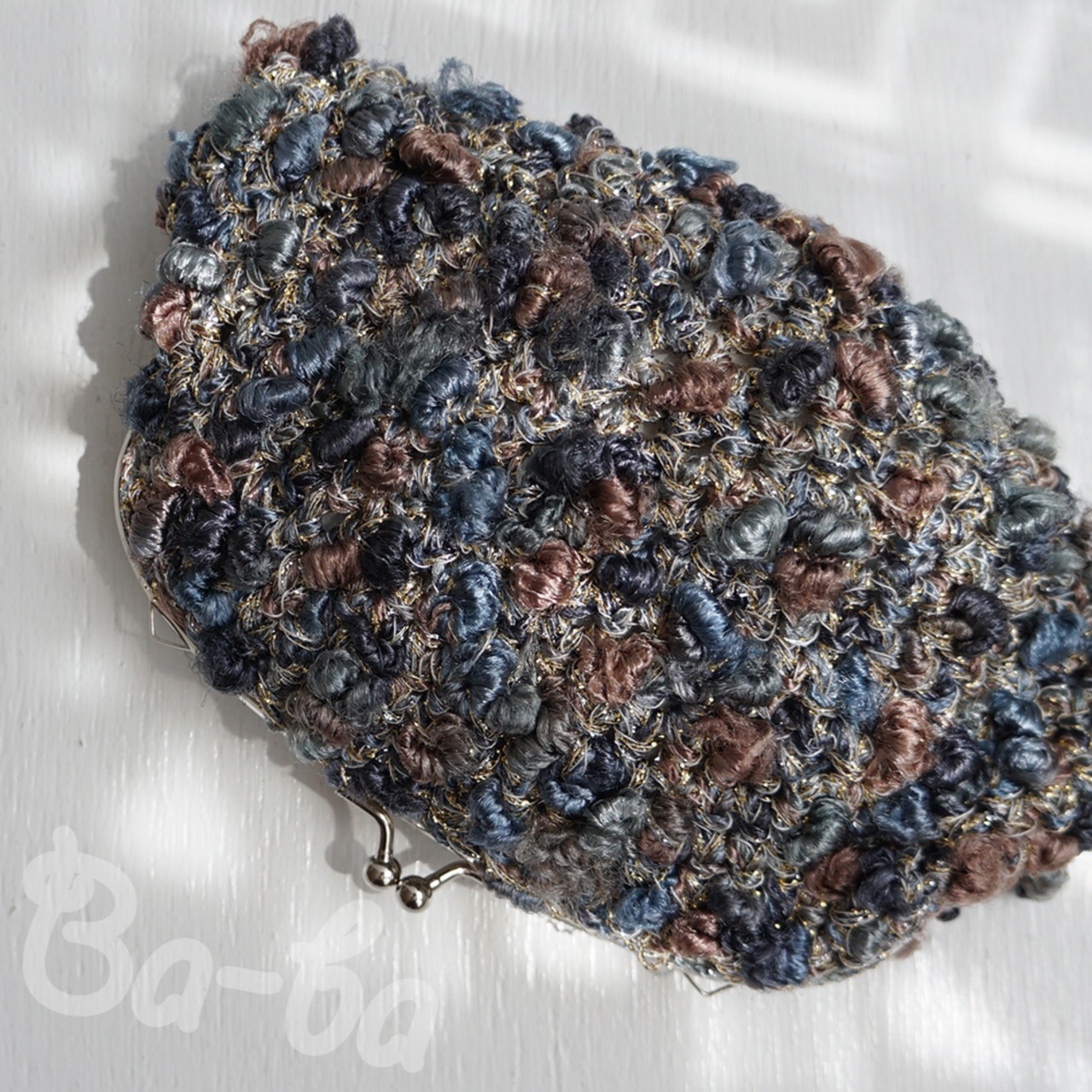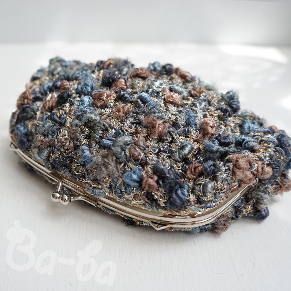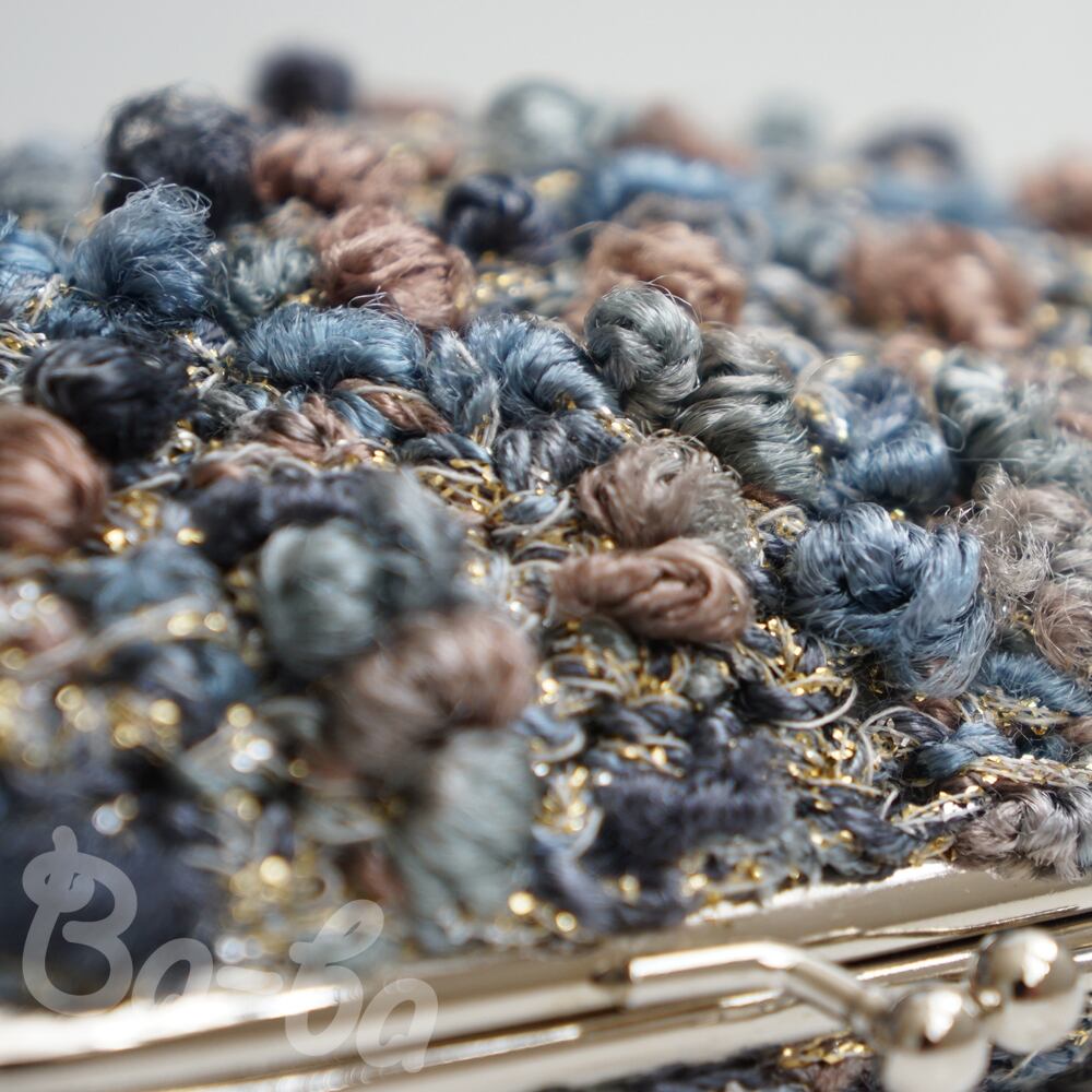 糸 : フランス製混紡毛糸(茶、青系ネップ及び金銀ラメ)