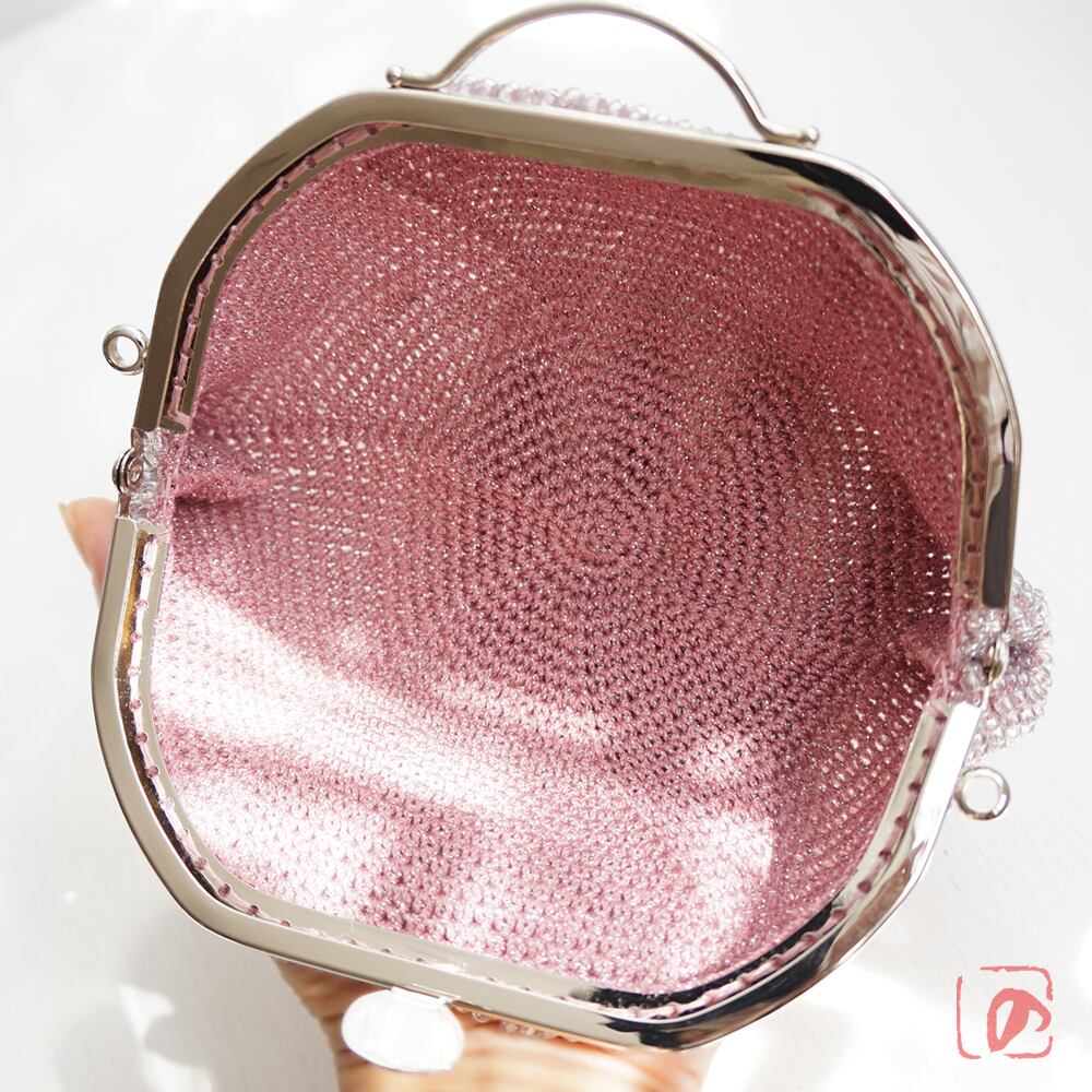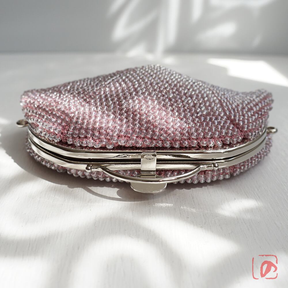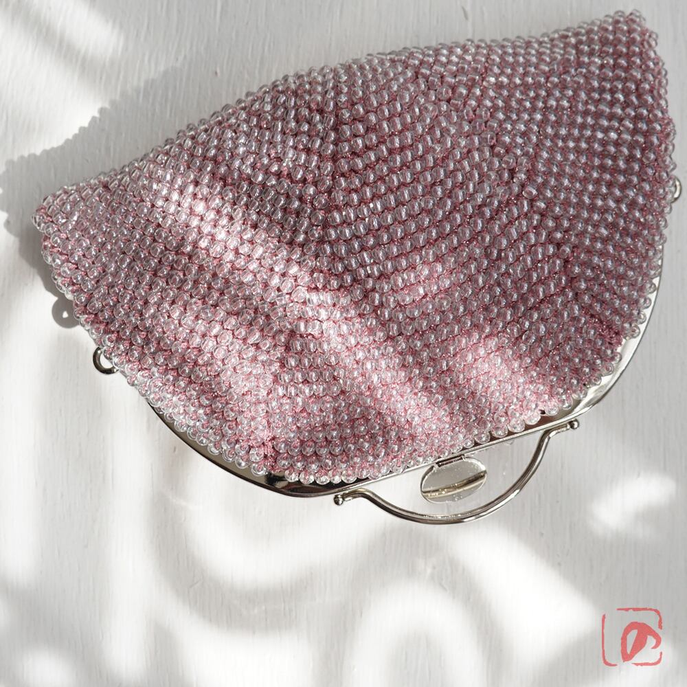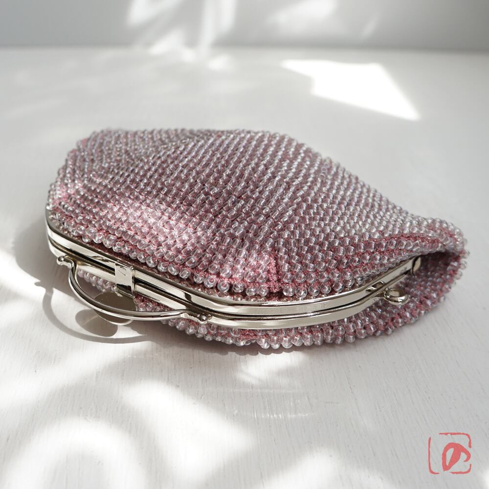 ばあば作☆ガラスビーズのレトロポーチ(glitzer rosa・1766)