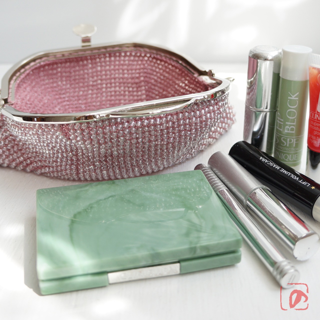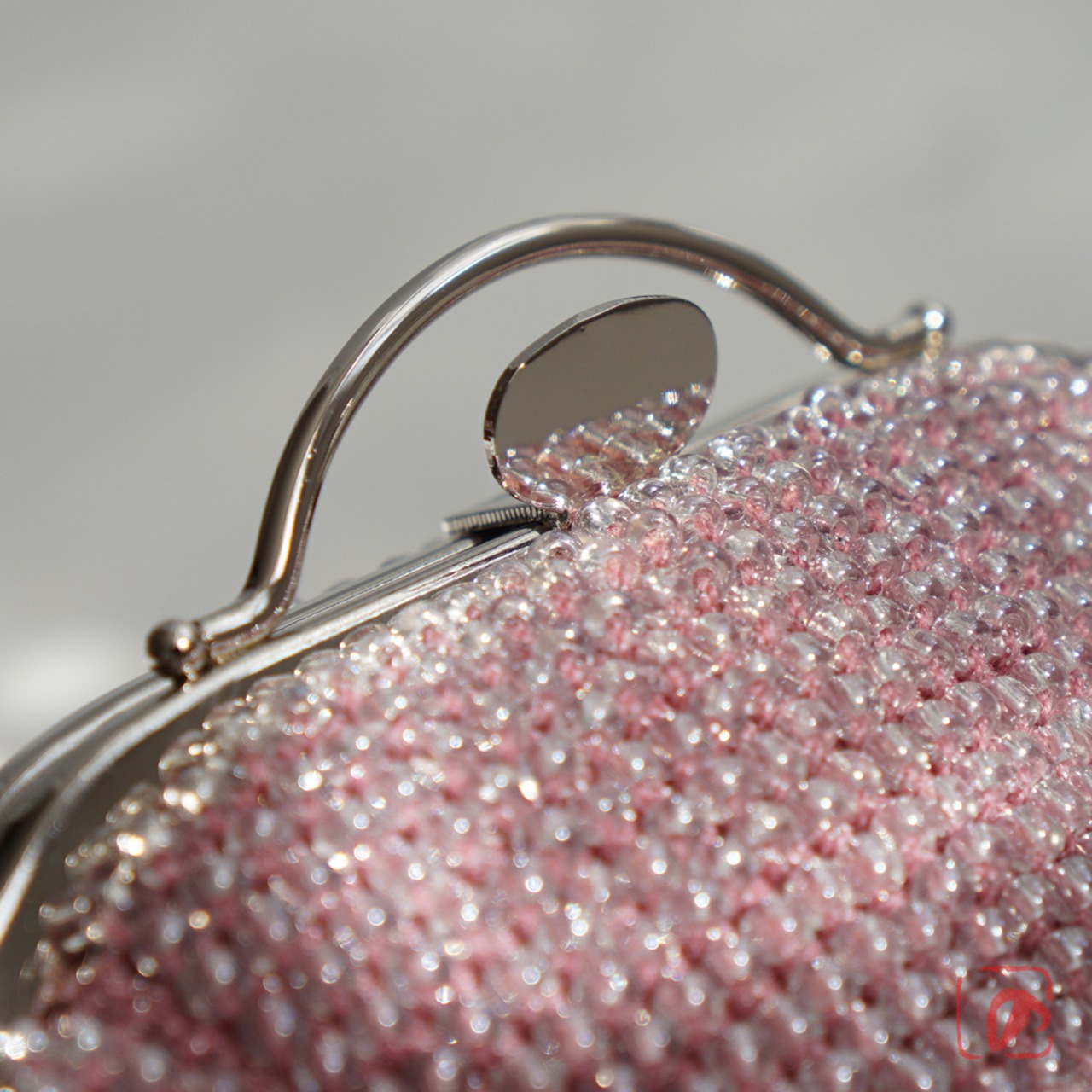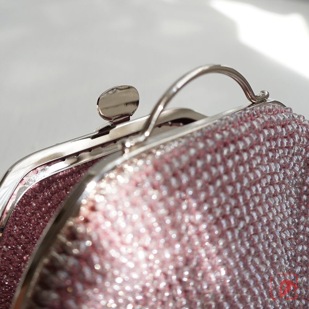 ばあば作☆ガラスビーズのレトロポーチ(glitzer rosa・1766)