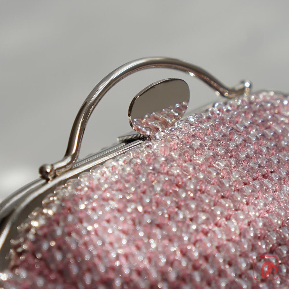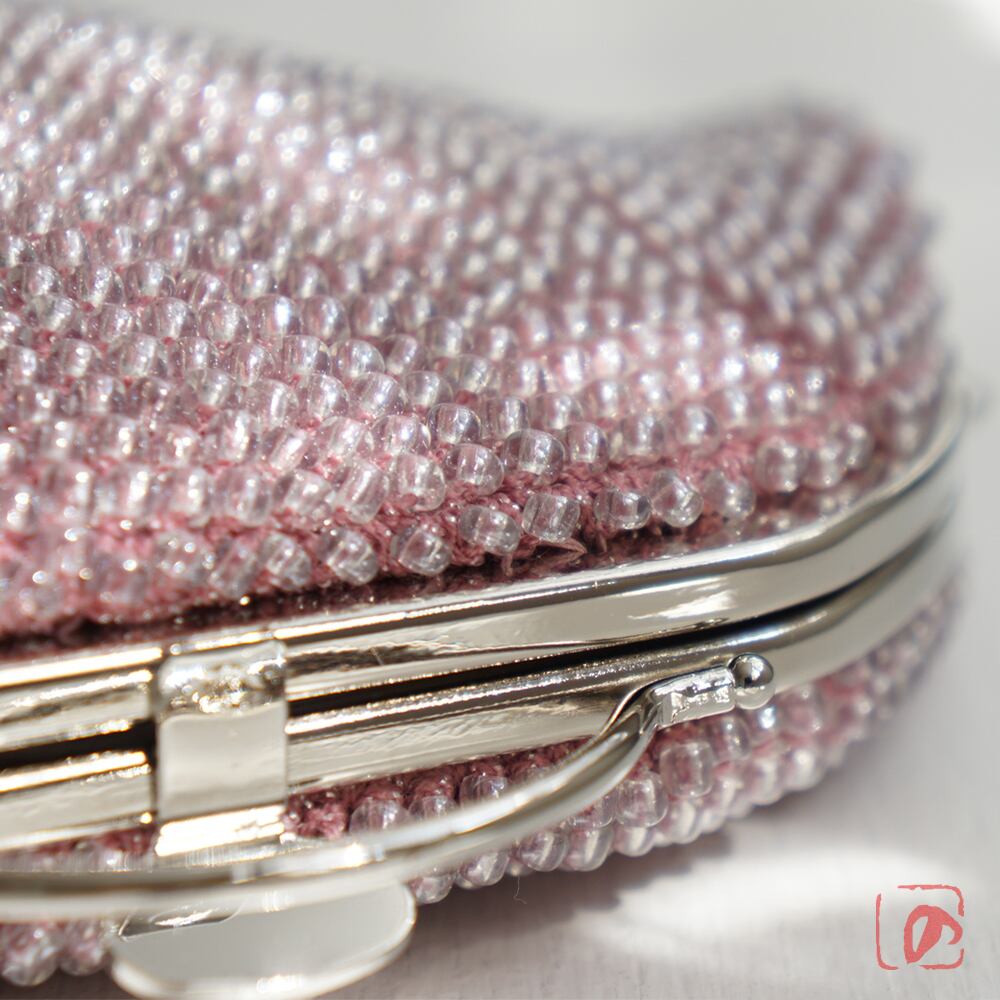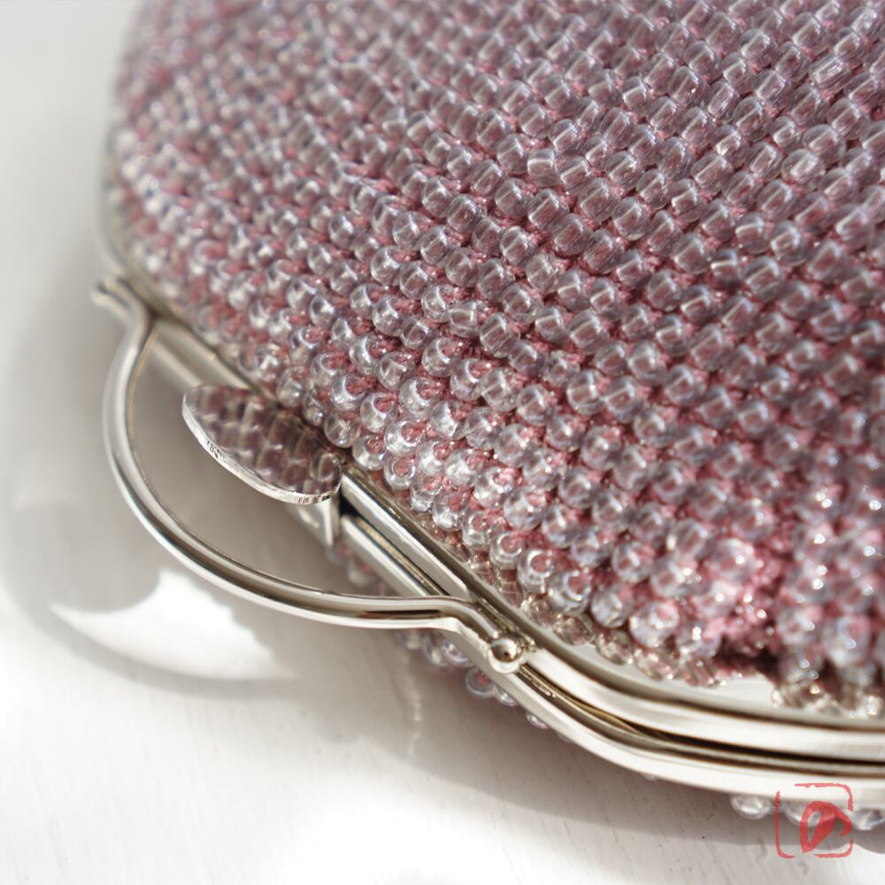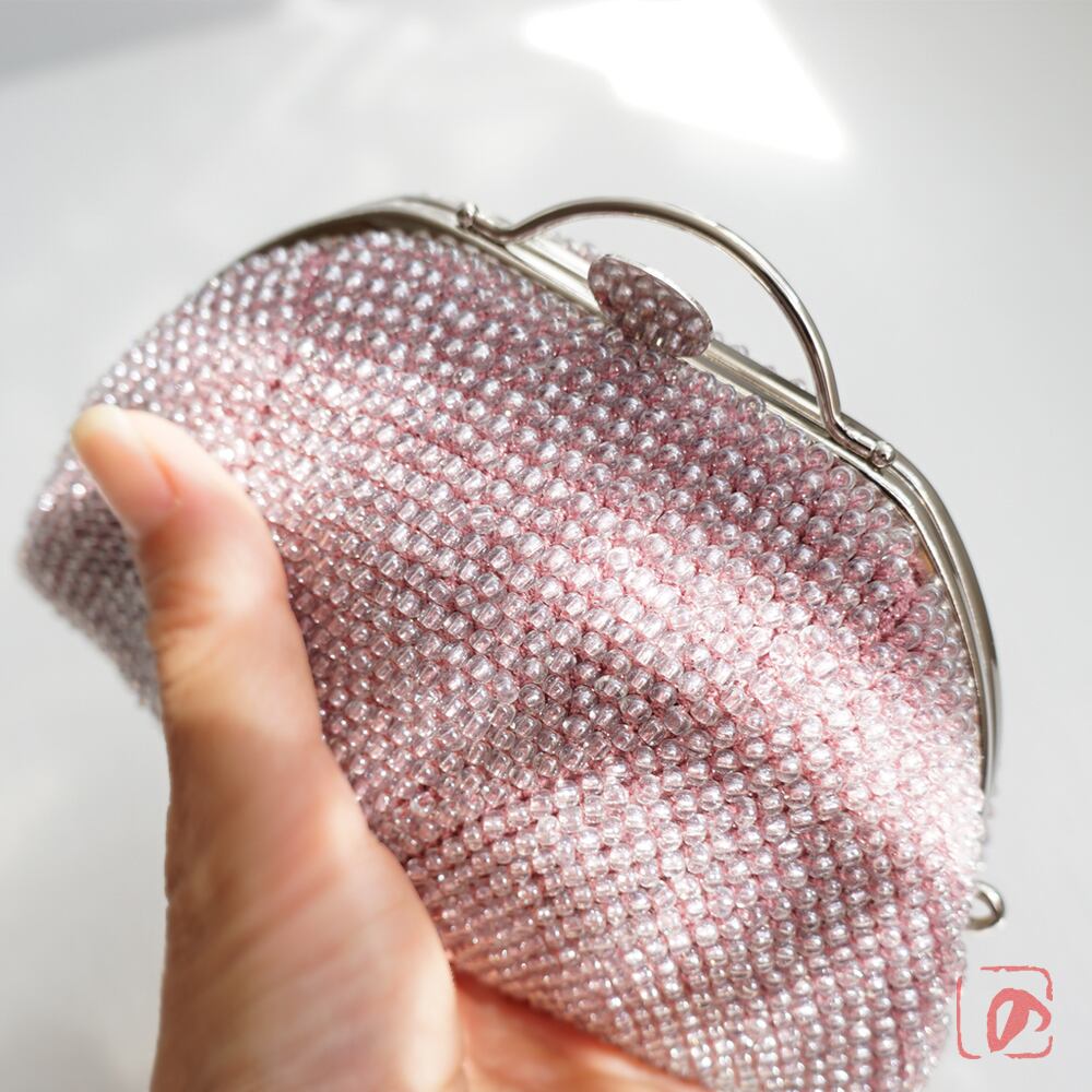 3mmのガラスビーズをひとつぶづつ、全面に編み込んでポーチに仕上げました。