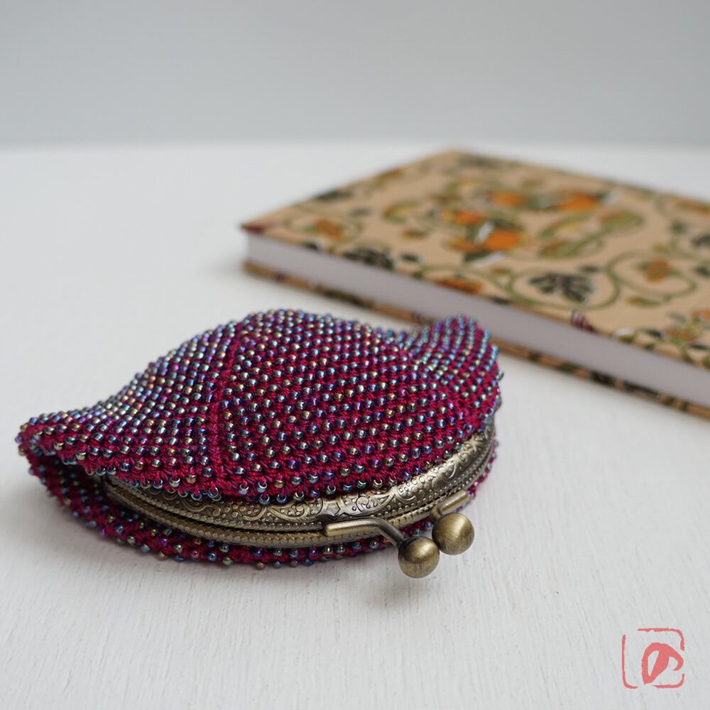 ばあば作♡シードビーズのがま口(花蘇芳・1773)