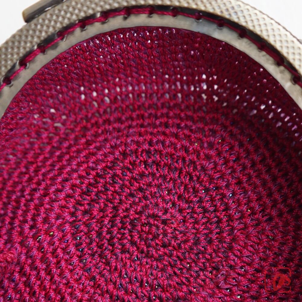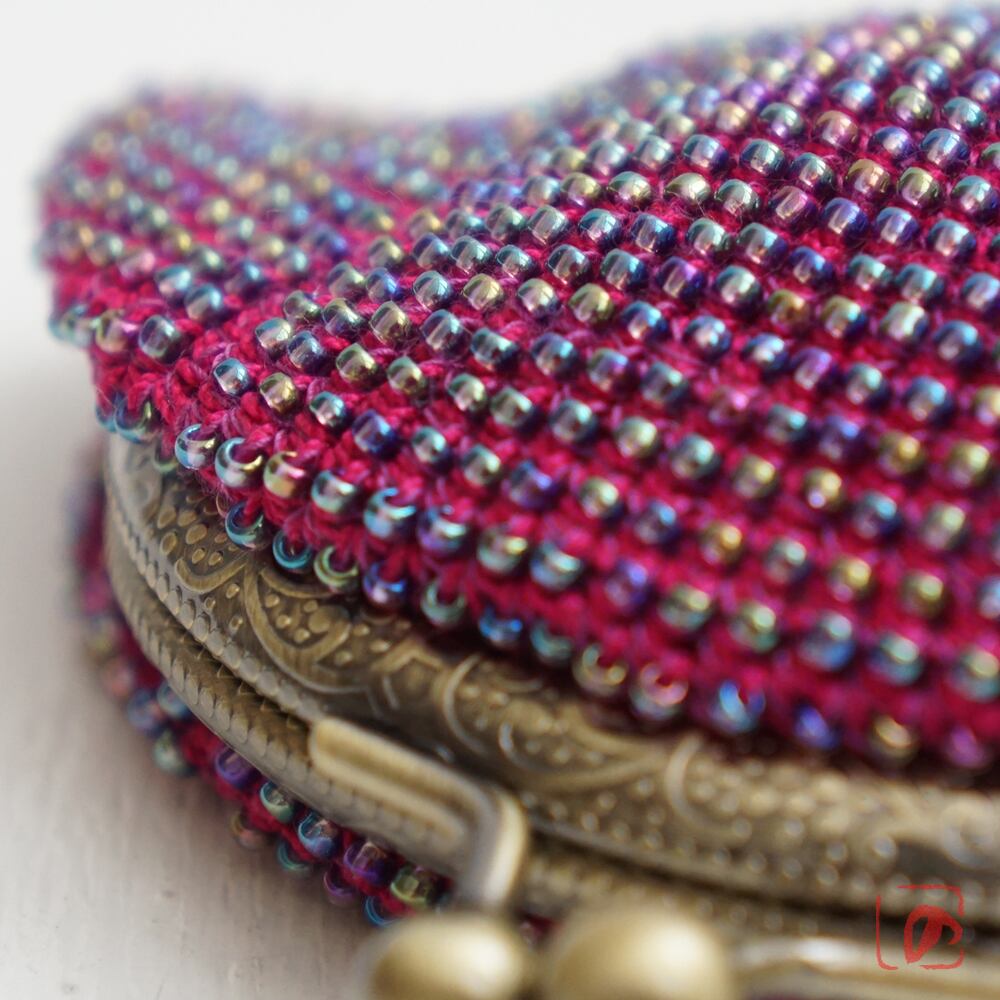 濃いベリー色の糸に、多色に輝くビーズを組み合わせました。